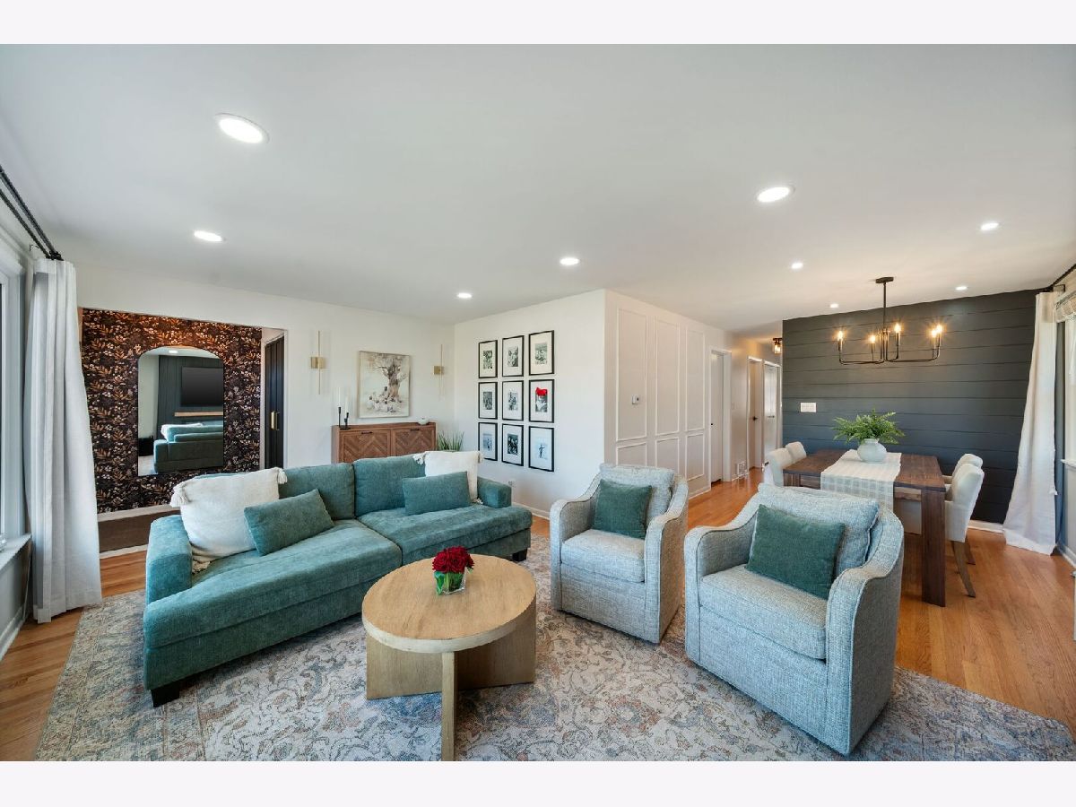 On a quiet Edgebrook block, atop a hard-to-find 38 x 136 lot, this fully updated 3 bed, 2.1 bath raised ranch gives you what most Chicago homes can't: space, privacy, and a home that is already finished. This is the neighborhood people move to when they want trees, breathing room, and day-to-day convenience without giving up access to the city. Inside is clean and intentional. Upon entry you'll notice new tile underfoot, new closet doors, and a feature wall that sets the tone perfectly. The main level opens into a bright living room designed for cozy evenings at home, anchored by fresh paint, wainscoting, a new custom built-in with electric fireplace and mantle, and upgraded lighting. The dining area enjoys space that feels right for weeknight dinners or weekends entertaining family and friends, with fresh paint and updated lighting. Hardwood floors run through the living areas and bedrooms, and the layout works wonderfully: all three bedrooms are on the same level, including a primary with warm, elevated fresh paint and wallpaper and TWO separate closets. The modern kitchen is crisp and functional with refreshed paint and new contrasted backsplash, plus a pantry and a built-in mudroom alcove that keeps things contained; coats, bags, and shoes stay organized and out of the main living areas. Downstairs expands into whatever your life needs next. The basement has high ceilings and a wide open footprint that can shift with you over time. Set up a big family room, gym, movie zone, work from home setup, or a guest hangout; the dry bar again makes hosting effortless. A full bath, a huge laundry room with a laundry chute, two additional storage closets, and serious storage round out the lower level so it functions like a second living area, not an afterthought. Additional electrical updates include new outlets for TVs so cords stay hidden, plus an added outlet in the linen closet for a vacuum charger. Behind-the-scenes upgrades are already handled for you: updated electrical and copper plumbing throughout, plus major system improvements including a 2021 furnace, 2016 roof, 2021 windows, 2021 tuckpointing, a 2023 ejector pump, and a 2025 sump pump. Outside, the oversized lot gives you what most city homes cannot; real space to grill, garden, run around, entertain, or simply exhale. All of this in Edgebrook, close to award winning schools, parks, restaurants, shops and easy public transportation, and walking distance to the local preschool and elementary school.
