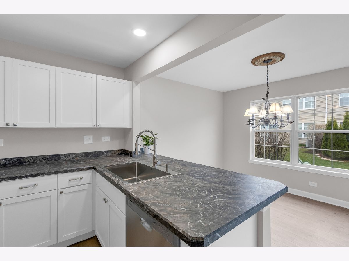 GORGEOUS REMODEL ready to move-in and better than new!! Renovations all in last 6 months inc: Brand new kitchen, w/new cabinets, ctops, lighting, SS appliances inc. high-end Krause deep sink. Convenient pantry & breakfast bar seating. New Vinyl flooring t/o, New lighting t/o inc. recessed can lights. New trim & 6panel doors t/o inc. new hardware. Two tone fresh wood railings. No shortcuts!! Each of the 3 baths are COMPLETE remodels inc. Marble Euro-shower master bath w/Skylight & cathedral ceilings in Primary Bedroom is a great source of natural light. Each BR has new gorgeous ceiling fans. New outlets t/o along w/new electrical panel. New Furnace, water heater, & AC along w/some new ductwork. LR stone fireplace is like new w/black marble slab decor. New smart thermostat, smoke& carbon-monoxide detectors t/o. New wireless garage door opener. All windows double pane & have decorative valences. Association to replace Roof, Gutters, & siding in 2026- no special assessment. Driveway is 9 months old. Basement is ready for finishing w, framing & insulation installed. Painted floor & ceilings make it inviting with high bright lighting. So close to 2 Metra stations ( Pingree Rd & downtown Crystal Lake). Short ride to all downtown amenities! This unit as close to buying New construction w/quality attention to details. Come and see it in person today and make it yours!