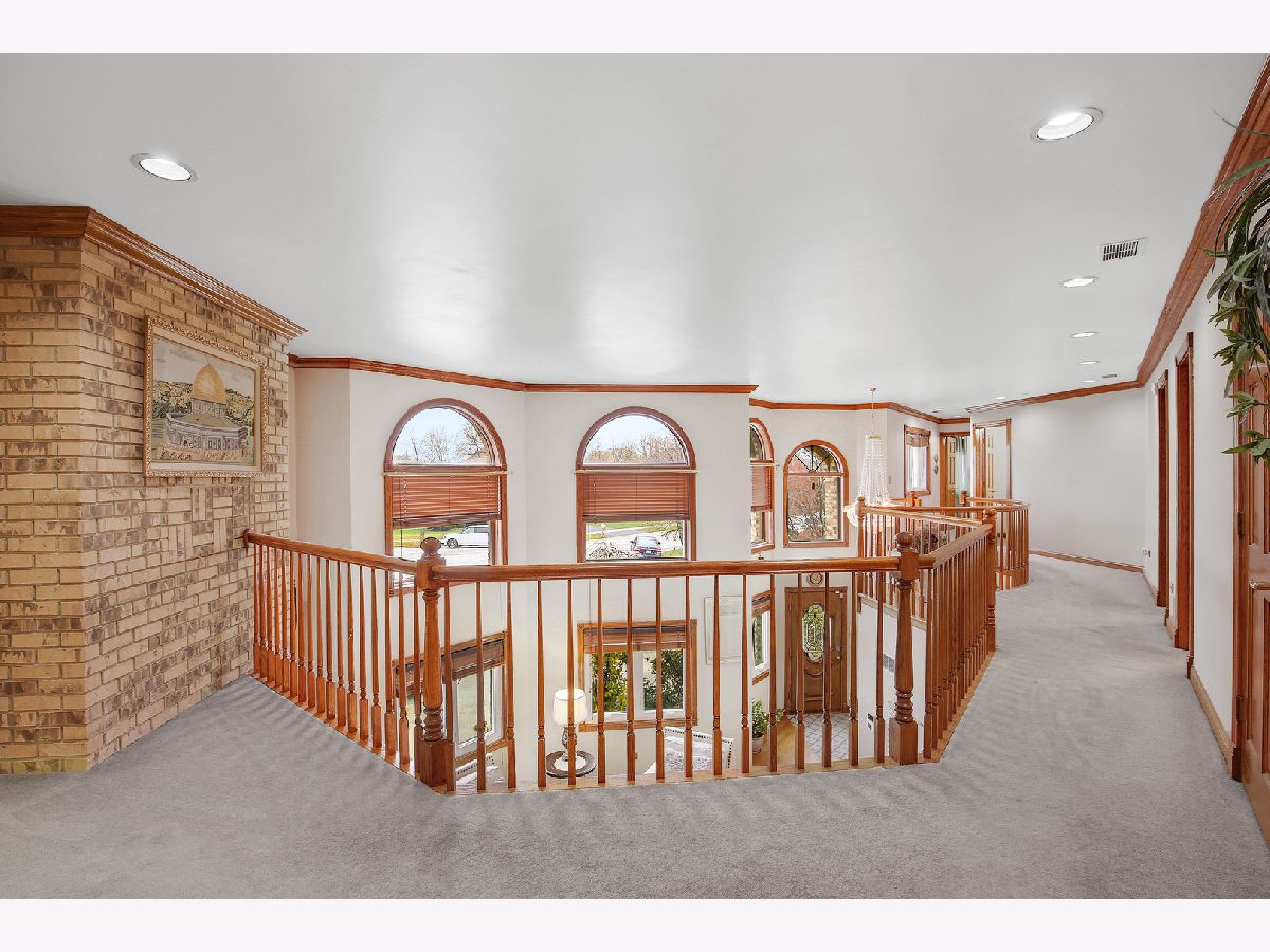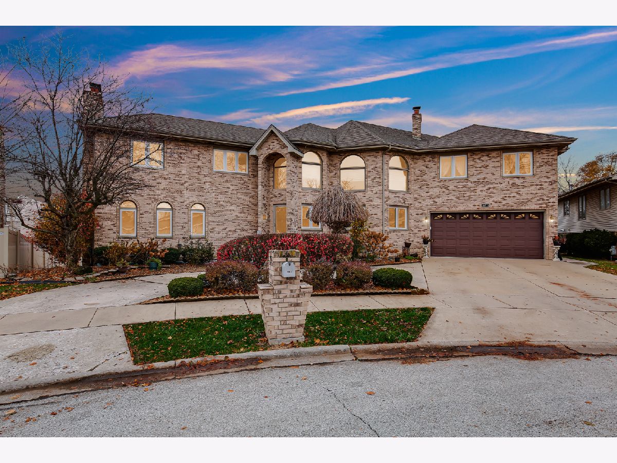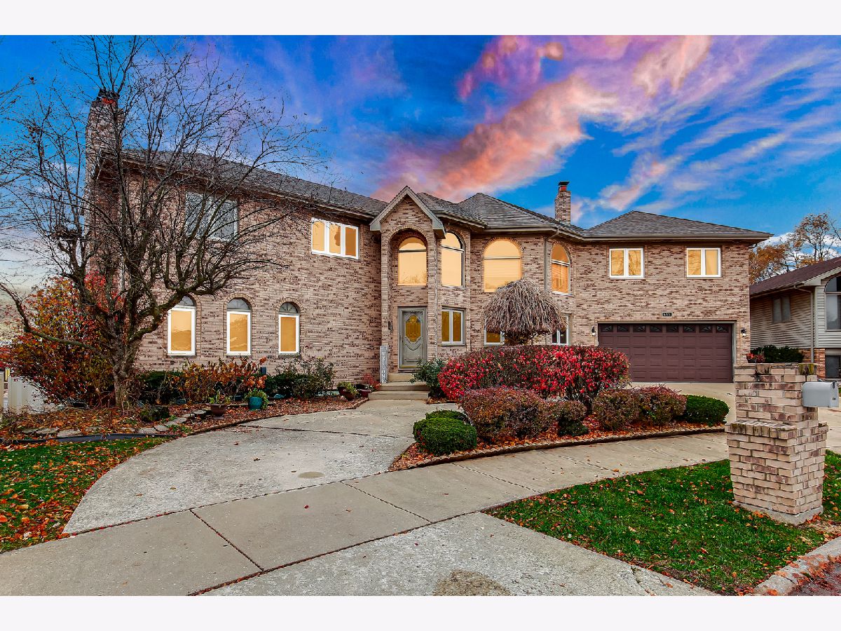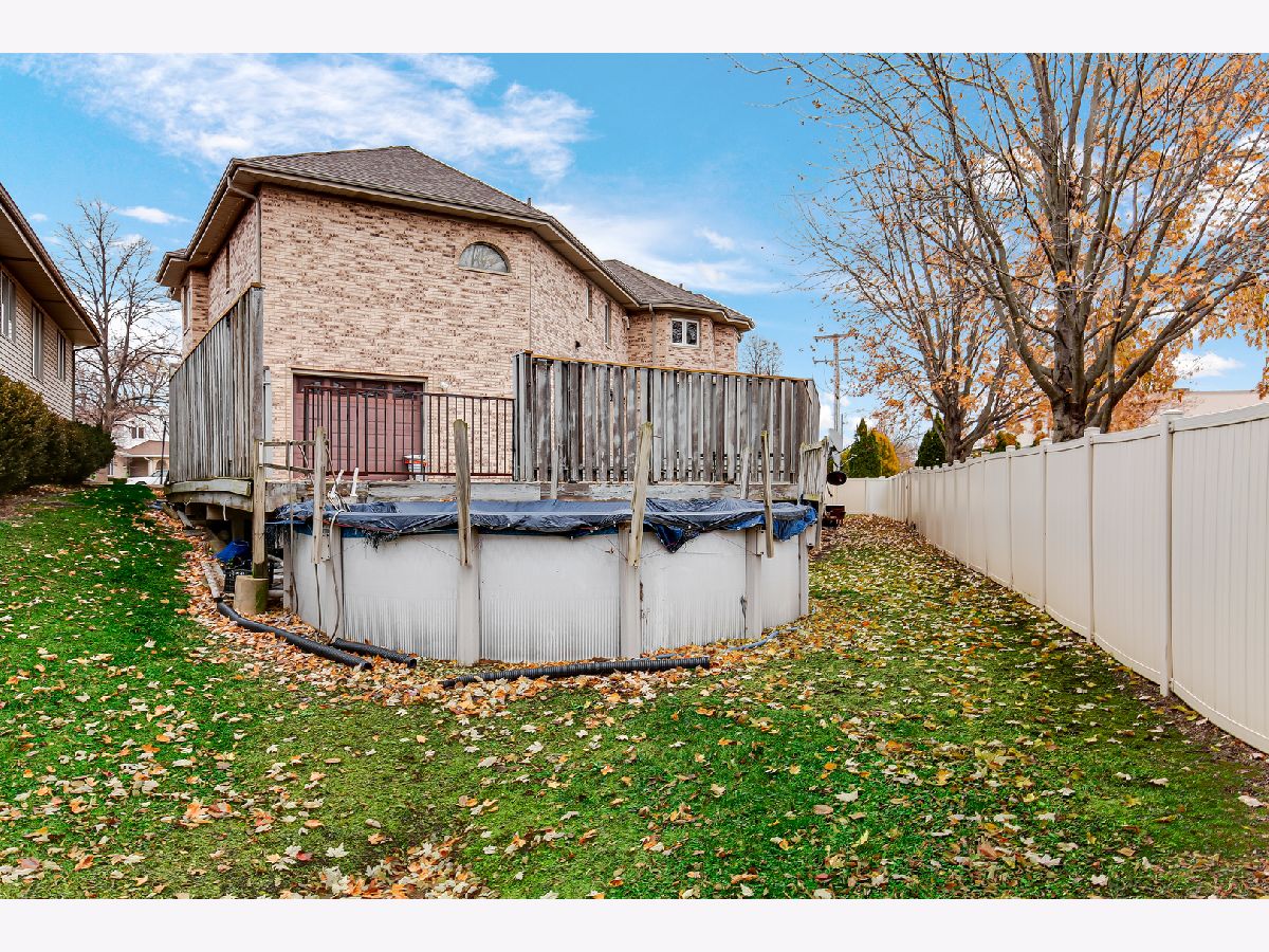 Welcome to this stunning custom-built, all-brick home situated on a quiet cul-de-sac in desirable Tinley Park. Offering over 5,000 square feet of living space, this well-maintained residence combines timeless design with thoughtful updates throughout. The maintenance-free exterior showcases classic brick construction, a circular driveway, and a fully fenced yard with a white vinyl fence. Enjoy outdoor living with a spacious wrap-around deck and above-ground pool-perfect for relaxing or entertaining. Inside, you'll find a grand two-story foyer, soaring ceilings, and abundant natural light. The updated kitchen (2025) features granite countertops, ample cabinetry, and opens to a generous family room with a fireplace. Formal living and dining rooms provide additional space for gatherings, while crown molding and solid oak 6-panel doors add warmth and character throughout the home. This home offers 4-5 spacious bedrooms, including a primary suite with a private bath and walk-in closet. The finished look-out basement provides additional living space with a bar area, recreation room, and flexible rooms for a variety of uses. Additional updates include roof replacement (2017), windows (2016), and one furnace replaced in 2017, offering added peace of mind. Completing the home is a rare 4-car tandem garage, providing ample storage and parking. Conveniently located near schools, parks, shopping, dining, and major commuter routes. Motivated seller-bring your offers!