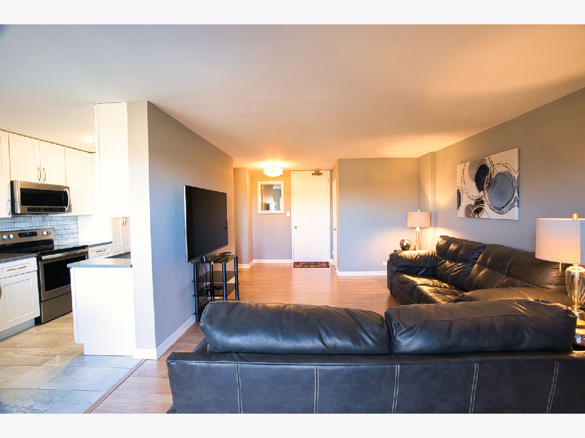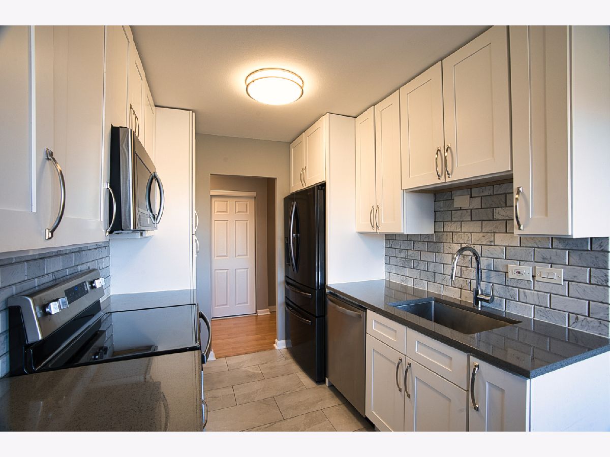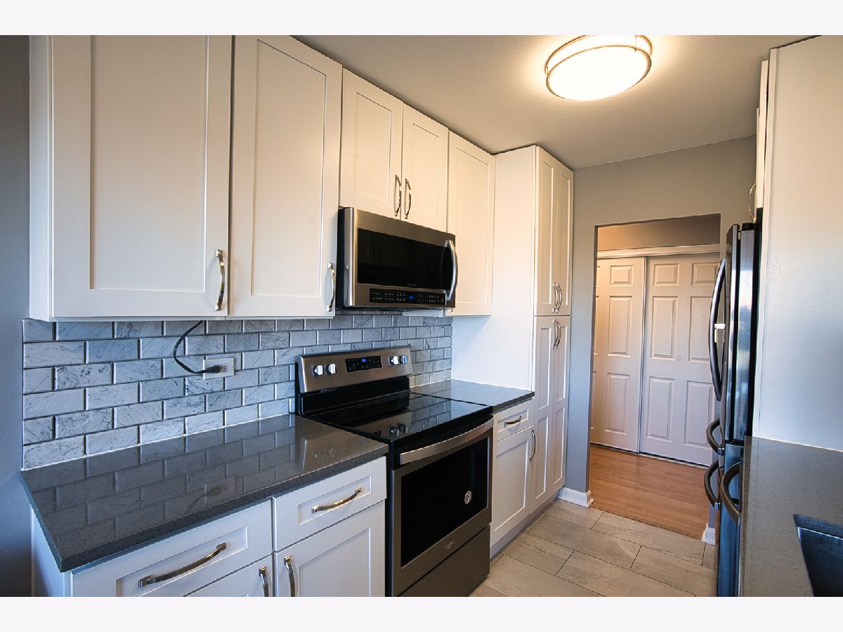 Outstanding elegant West Rogers Park unit in the prestigious Winston Towers complex has been completely updated to the T's, painted and move in ready. Light & bright extra-large 1 bed 1 bath unit features a luxurious kitchen with white shaker cabinets, quartz countertop, 3D Carrera natural marble back splash and Carrera natural marble tile floor. Unit features click lock waterproof luxury vinyl flooring through-out the extra-large living room, bedroom and hall. The extra large living room is flooded with light and opens to a large east facing unobstructed view balcony. Every floor has a laundry room. Building features a party room, outdoor pool, bike room and a fabulous fitness center Great location close to schools, shopping and transportation. Plenty of guest parking, leased heated garage parking for $40 a month and exterior for $20 per car. Very clean and well maintained building with great reserves. Great value! All you have to do is move in, unpack and enjoy your new home.
