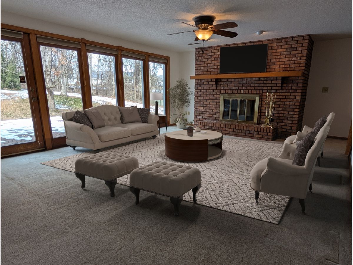 Discover a rare combination of privacy, nature, and convenience on this beautifully wooded 1.5+ acre situated on cul-de-sac lot in Freeport. Designed for main-floor living with more than 2,000 square feet on the main level, this home offers expansive windows, skylights, and serene views that make you feel like you are living in your own private park. A privacy-fenced backyard adds an additional layer of comfort for outdoor living. The spacious kitchen with eating area opens directly into a bright sunroom with access to the multi-level deck and a new 2025 hot tub, perfect for entertaining or relaxing in the tree-top setting. The dramatic living room features a wall of windows, built-in bookcases, fireplace and a vaulted ceiling with additional skylights. The main floor primary suite includes a walk-in closet and a private full bath. Storage is abundant throughout the home. The walkout daylight lower level is ideal for multigenerational living, guests, or an in-law arrangement. It includes a kitchenette, game area, family room with fireplace, second living room with fireplace, bedroom, office, and full bath-providing exceptional flexibility. This home has been very well maintained with significant updates, including: roof and skylights (2012), professional landscaping (2015), high-efficiency furnace and central air (2017), water heater (2022), driveway sealed (2025), and hot tub (2025). If you're seeking space, nature, and a layout that adapts to every lifestyle need, this property delivers it all.