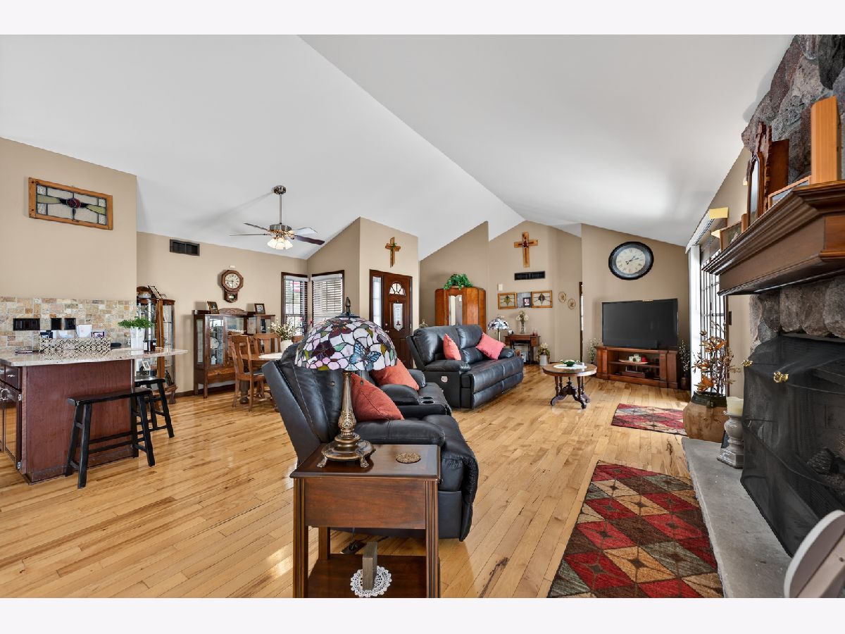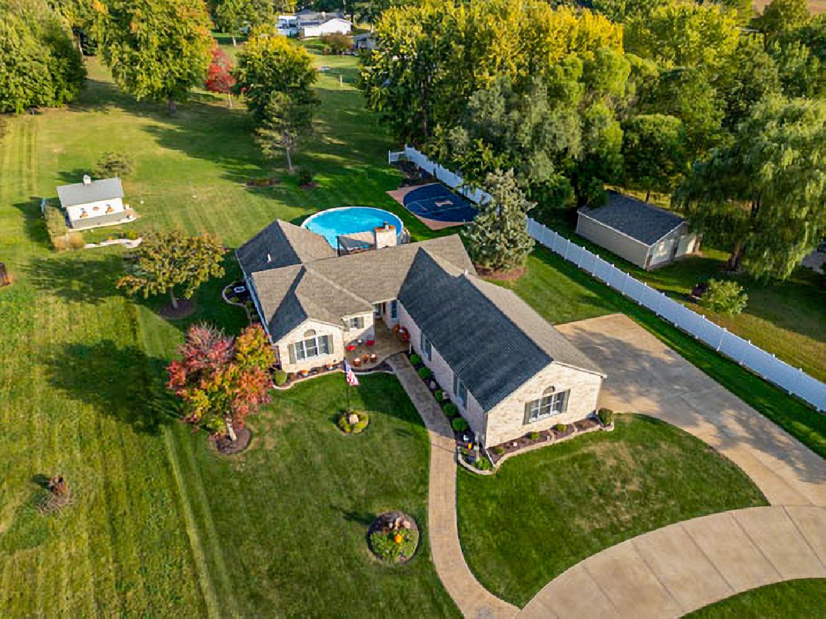 Pride of ownership shines in this one-owner home that has been meticulously maintained from top to bottom. This gorgeous 3 bedroom, 3 bath home with a potential 4th bedroom features a spacious 3-car garage and a full walk-out basement ideal for an in-law suite, offering the perfect blend of warmth, space, and functionality. Step inside to a bright, open-concept main living area featuring vaulted ceilings, rich hardwood floors, and abundant natural light. The spacious living room is anchored by a stunning floor-to-ceiling stone fireplace, creating a cozy yet impressive focal point. The beautifully updated kitchen showcases granite countertops, stainless steel appliances, and a stone backsplash, with seamless flow into the dining and living spaces, perfect for both everyday living and entertaining. All bathrooms throughout the home have also been tastefully updated, adding to the move-in ready appeal. The primary suite is a true retreat, featuring a vaulted ceiling, generous space, a walk-in closet, and a private en-suite bathroom designed for comfort and convenience. The full finished walk-out basement offers incredible flexibility and space, featuring a large rec room, wood-burning stove, over-sized laundry room, storage area, and an all-concrete safe room. A 4th bedroom is already framed and ready to be finished, giving you the opportunity to easily add value and additional living space. The lower level also includes a full bathroom with a relaxing Jacuzzi tub, making it ideal for guests or extended living. With direct garage access from both the upper and lower levels, this home is designed for convenience and versatility. Step outside and enjoy your own private oasis with a large deck, above-ground pool, and a beautifully maintained yard spanning over half an acre. Additional outdoor highlights include a half-court basketball area, storage shed, circle driveway, and stamped concrete walkway that enhances the home's curb appeal. This home truly checks all the boxes with space, updates, character, flexibility, and pride of ownership throughout.