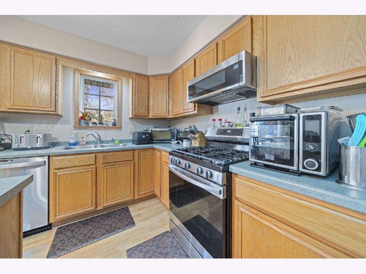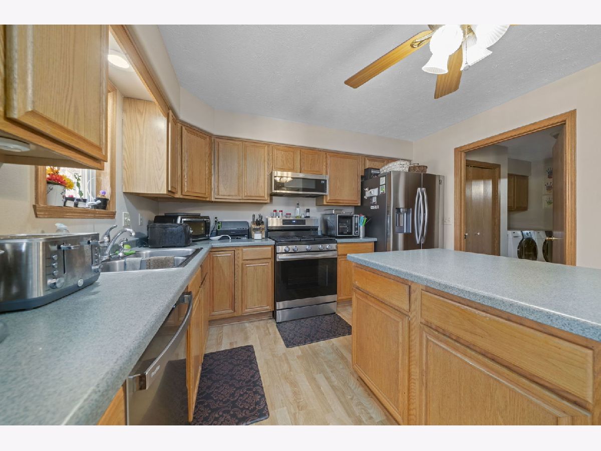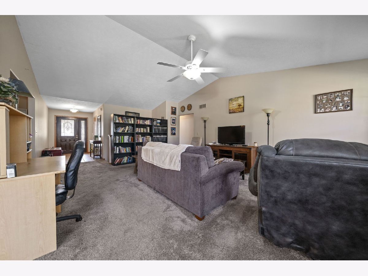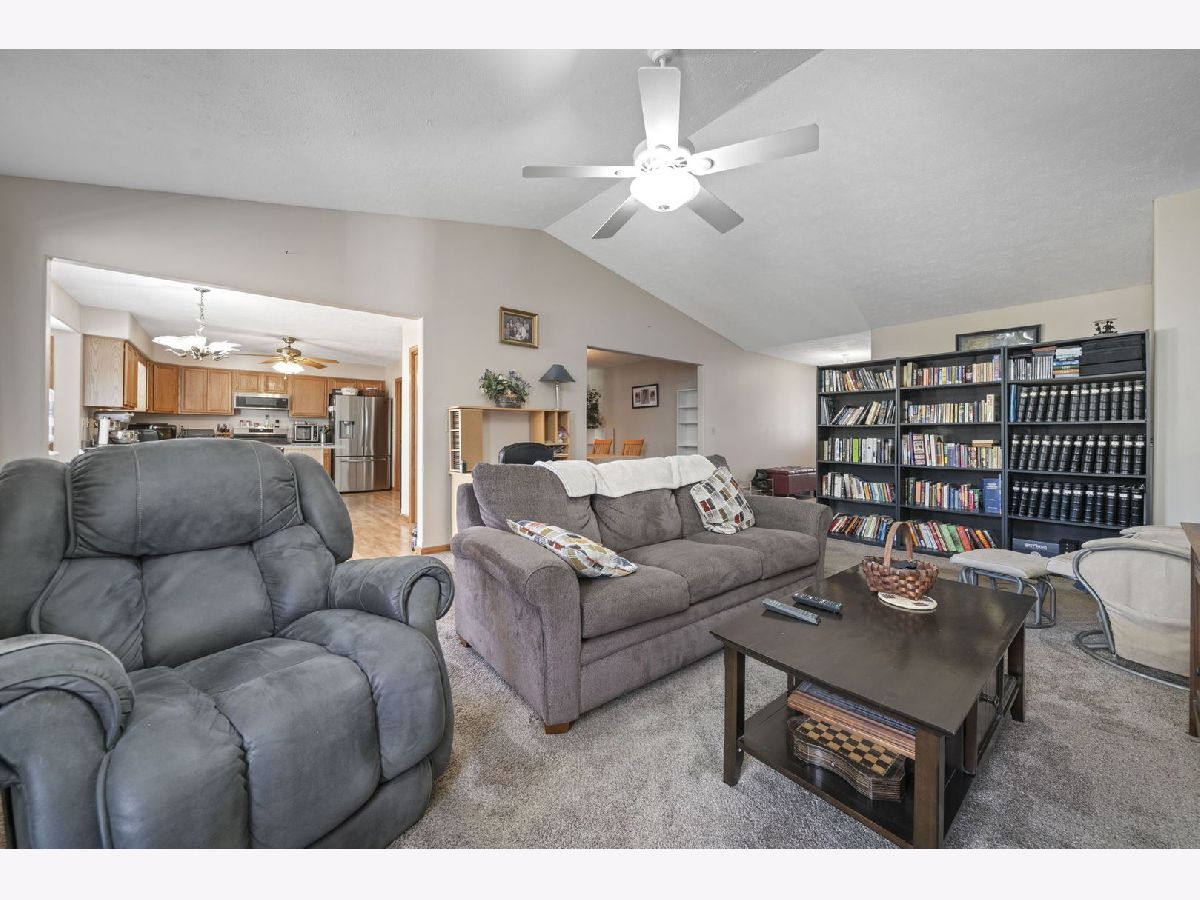 Designed for comfort and convenience, this 4-bedroom, 3-bath home offers thoughtful features throughout. The main level includes first-floor laundry and a spacious living room with vaulted ceilings and a wood-burning fireplace framed by two windows for great natural light. The kitchen is well-equipped with stainless appliances including a gas stove, microwave, and quiet dishwasher. An island with seating, a large pantry, and space for a generously sized table make it ideal for daily living and gatherings. Doors lead directly to the deck and backyard, while a formal dining room provides additional entertaining space. The primary suite features double sinks, a separate shower, walk-in closet, linen closet, and convenient attic access through the closet. A second bath includes a walk-in tub. The lower level expands your living space with a finished area offering a 4th bedroom, full bathroom, office, and additional living space with waterproof walls and flooring. Remaining unfinished space provides excellent storage. Additional updates include an owned water softener, furnace (2018), A/C (9/3/25), one new electrical panel with one original panel remaining, sump pump with a second pit in place, and new gutters installed in 2024. A 3-car attached garage completes the home.