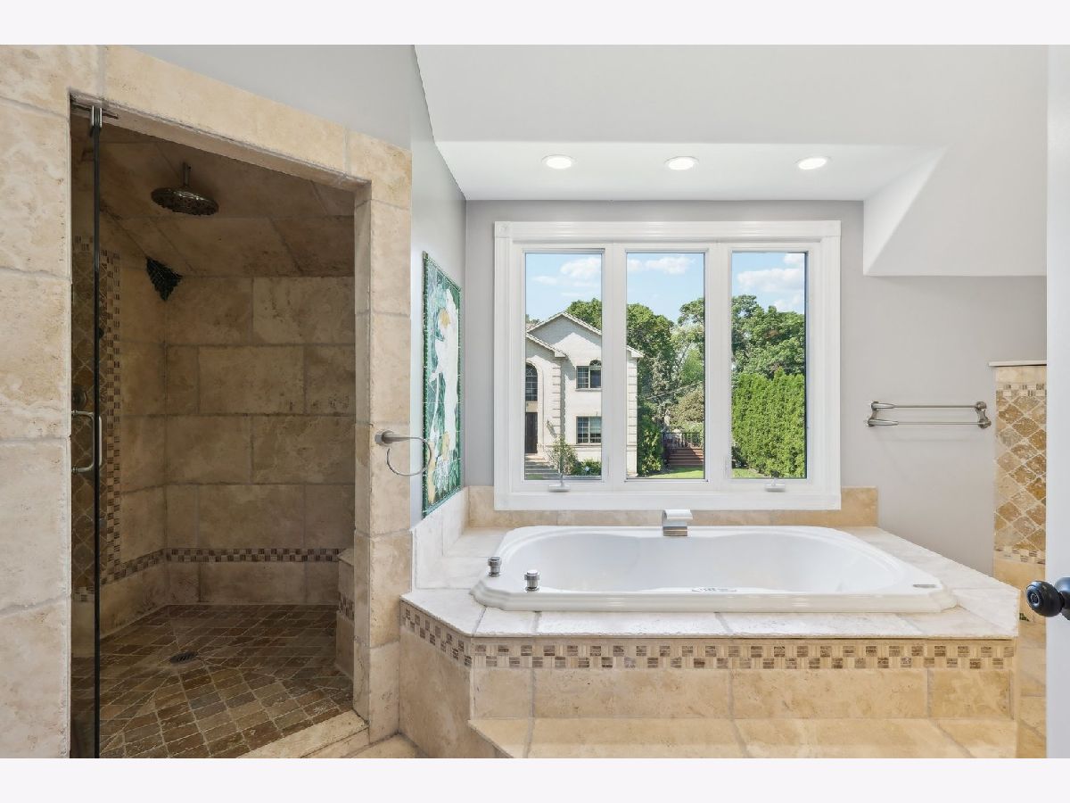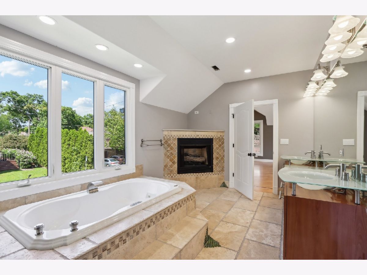 Welcome to Prestigious Knox Avenue - A Distinctive Residence of Style and Sophistication. Set on one of the most desirable streets in the neighborhood, this exquisite stone estate stands as a true architectural statement. Thoughtfully reimagined from top to bottom, this 4-bedroom, 3.5-bathroom home offers over 3,300 sq ft of refined living space above grade, designed for today's discerning Chicagoland buyer. From the moment you arrive, the home captivates with its impressive curb appeal - a full stone facade, detailed hardscaping, and a paver driveway set the tone for the quality found within. Inside, rich etched hardwood floors flow seamlessly through freshly painted interiors, complemented by designer lighting including recessed can lighting and elegant chandeliers. The heart of the home is the beautifully remodeled kitchen featuring cherry shaker cabinetry, sleek quartz countertops, and high-end finishes. Just off the kitchen is a charming deck with a hot tub perfect for relaxation. Adjacent is a stylishly updated powder room with a modern tiled accent wall and a versatile main floor bedroom - ideal for guests or an office. The inviting main living area boasts a gas-burning fireplace and ample natural light, while the finished lower level adds another dimension of space - perfect for a media room, play area, home gym, or guest suite - complete with a luxurious full bath featuring a full-body steam shower and exquisite tilework. Upstairs, four spacious bedrooms include a spectacular primary suite, offering a serene retreat with a gas fireplace, expansive windows, and a spa-caliber ensuite showcasing intricate mural tilework, a double vanity, steam shower, and a third fireplace for added ambiance. A charming loft area provides a perfect spot for a reading nook or home office. Located just minutes from downtown Chicago, and within close reach of award-winning schools, premier shopping, parks, and dining, this exceptional residence truly offers the best of suburban tranquility and urban convenience. A rare opportunity to own a timeless, fully renovated home in an unbeatable location.