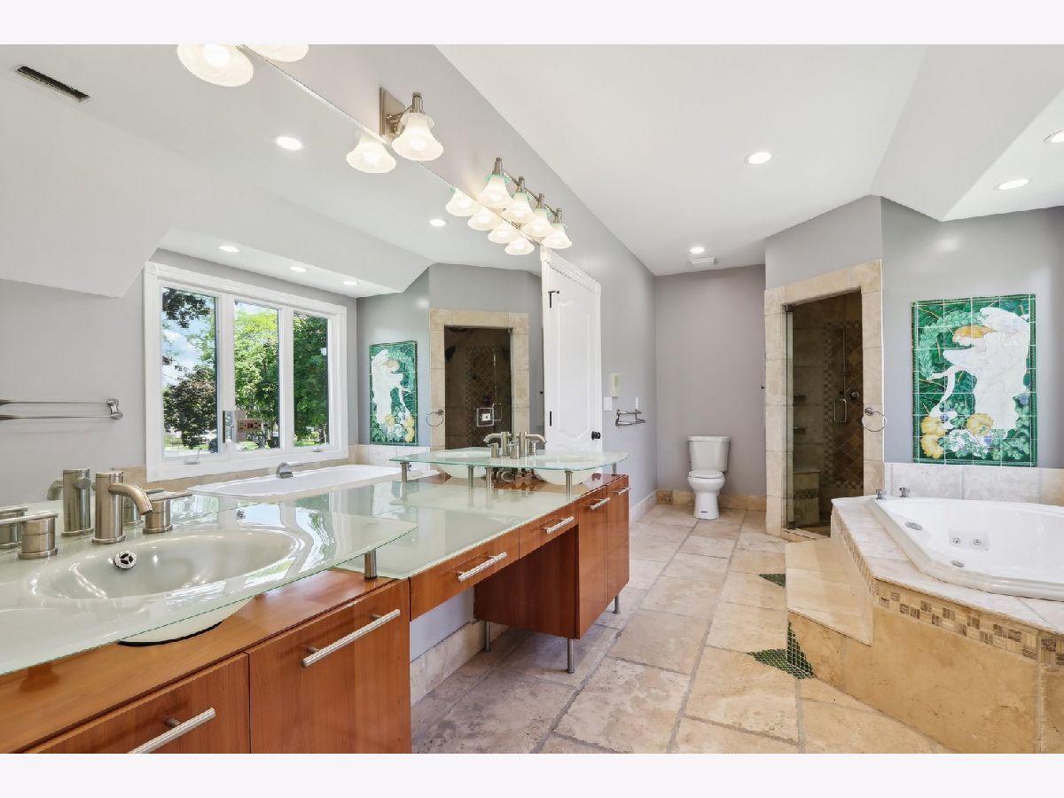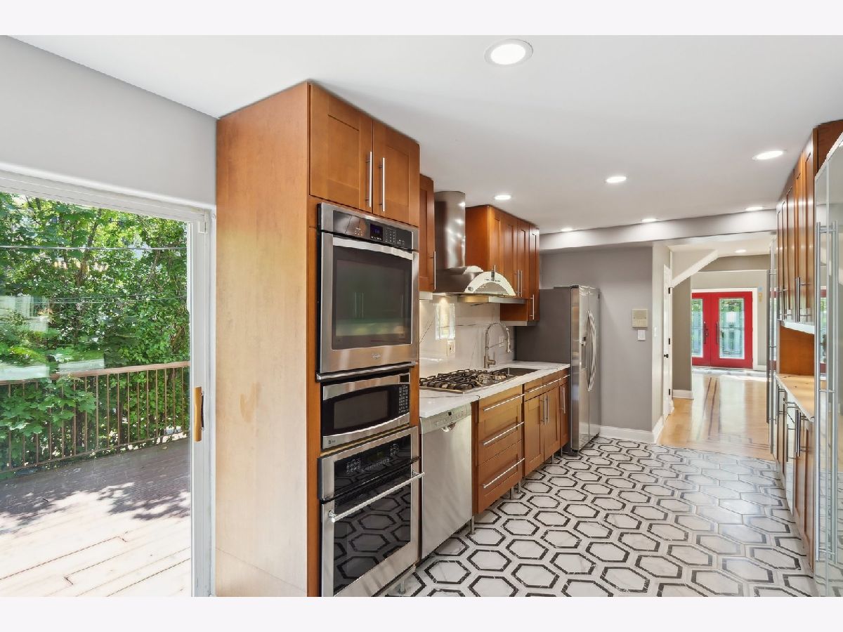 Welcome to Prestigious Knox Avenue - A Distinctive Residence of Style and Sophistication. Set on one of the most desirable streets in the neighborhood, this exquisite stone estate stands as a true architectural statement. Thoughtfully reimagined from top to bottom, this 4-bedroom, 3.5-bathroom home offers over 3,300 sq ft of refined living space above grade, designed for today's discerning Chicagoland buyer. From the moment you arrive, the home captivates with its impressive curb appeal - a full stone facade, detailed hardscaping, and a paver driveway set the tone for the quality found within. Inside, rich etched hardwood floors flow seamlessly through freshly painted interiors, complemented by designer lighting including recessed can lighting and elegant chandeliers. The heart of the home is the beautifully remodeled kitchen featuring cherry shaker cabinetry, sleek quartz countertops, and high-end finishes. Just off the kitchen is a charming deck with a hot tub perfect for relaxation. Adjacent is a stylishly updated powder room with a modern tiled accent wall and a versatile main floor bedroom - ideal for guests or an office. The inviting main living area boasts a gas-burning fireplace and ample natural light, while the finished lower level adds another dimension of space - perfect for a media room, play area, home gym, or guest suite - complete with a luxurious full bath featuring a full-body steam shower and exquisite tilework. Upstairs, four spacious bedrooms include a spectacular primary suite, offering a serene retreat with a gas fireplace, expansive windows, and a spa-caliber ensuite showcasing intricate mural tilework, a double vanity, steam shower, and a third fireplace for added ambiance. A charming loft area provides a perfect spot for a reading nook or home office. Located just minutes from downtown Chicago, and within close reach of award-winning schools, premier shopping, parks, and dining, this exceptional residence truly offers the best of suburban tranquility and urban convenience. A rare opportunity to own a timeless, fully renovated home in an unbeatable location.