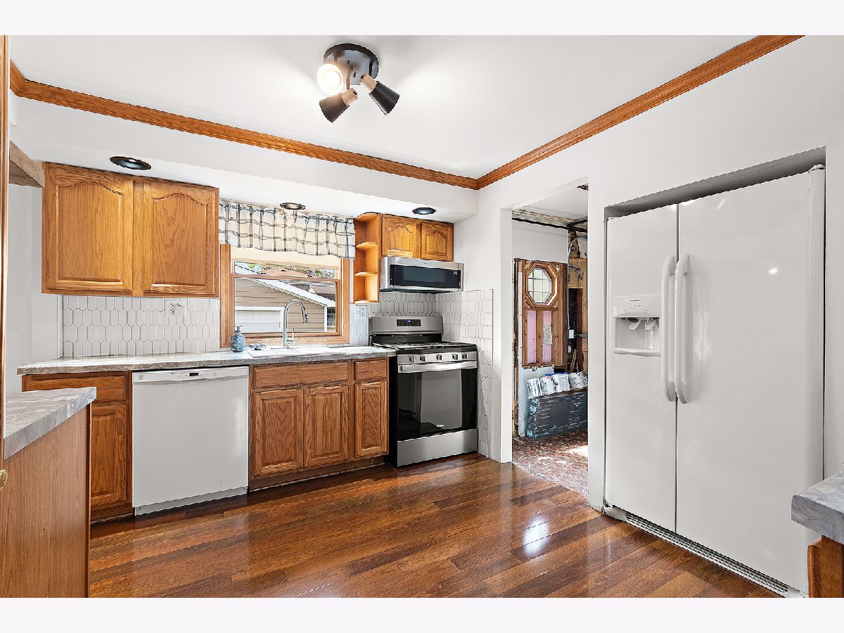 Charming and well-maintained 3-bedroom, 1-bath ranch offering comfort, convenience, and classic appeal! This home features beautiful hardwood floors and an updated kitchen with modern finishes, providing a perfect blend of style and functionality. Enjoy easy one-level living with a bright and inviting layout, ideal for both everyday living and entertaining. The oversized 2.5-car detached garage offers ample space for parking, storage, or a workshop. Roof replaced in 2014; Windows replaced in 2012; Furnace replaced in 2020; tankless hot water heater replaced in 2019; patio installed in 2023; new gutters & soffits replaced in 2024. Ideally located near downtown Tinley Park, with close proximity to shopping, restaurants, and Metra access-making commuting and daily errands a breeze. A great opportunity to own a move-in ready home in a highly convenient location!