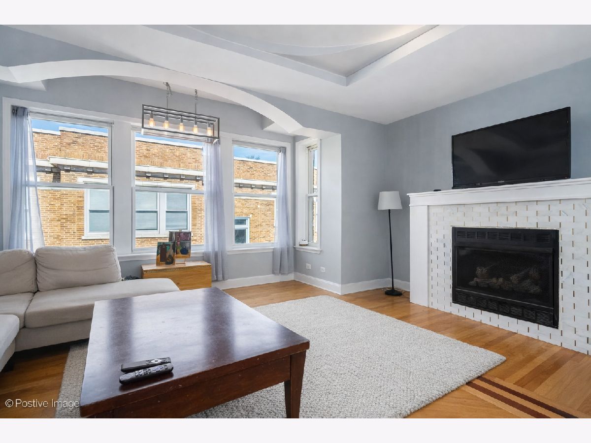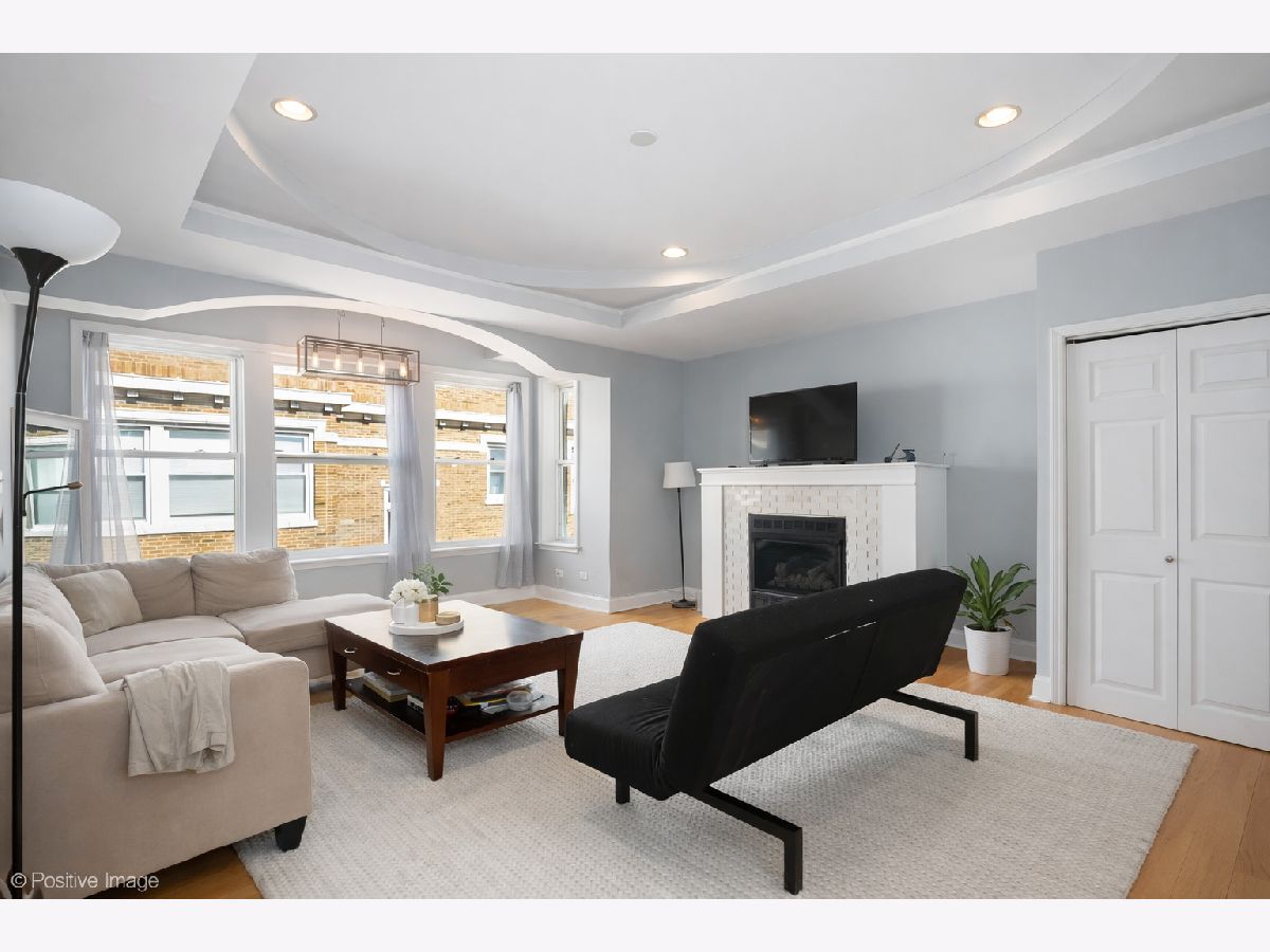 WELCOME HOME to this beautiful top-floor 2 bed / 2 bath condo in one of Rogers Park's most desirable locations. This stylish unit blends modern updates with vintage charm and features hardwood floors, tray ceilings, recessed lighting, and a cozy gas fireplace. The updated kitchen offers quartz countertops and backsplash, stainless steel appliances, ample cabinet space, and room for a kitchen table. The bright open living/dining area is filled with natural light, making it perfect for everyday living and entertaining. The spacious primary bedroom includes a renovated en-suite bath with jet tub and elegant tilework, creating a spa-like retreat. A second generously sized bedroom near the foyer works well as a guest room, office, or additional living space. The home also features in-unit laundry for added convenience. Additional amenities include extra storage and a bike room in the basement. Pet-friendly building allowing cats and dogs up to 50 lbs. (max 2). Located in a charming vintage courtyard building with a fountain on Lakewood Ave, just 2 blocks from the lake and close to shops, restaurants, grocery stores, and transit. Easy access to Sheridan Rd buses and the CTA Red Line at Morse (about 1.5 blocks away). Enjoy everything Rogers Park has to offer including the Glenwood Arts District, seasonal markets, festivals, public art, and beautiful lakefront parks and beaches.
