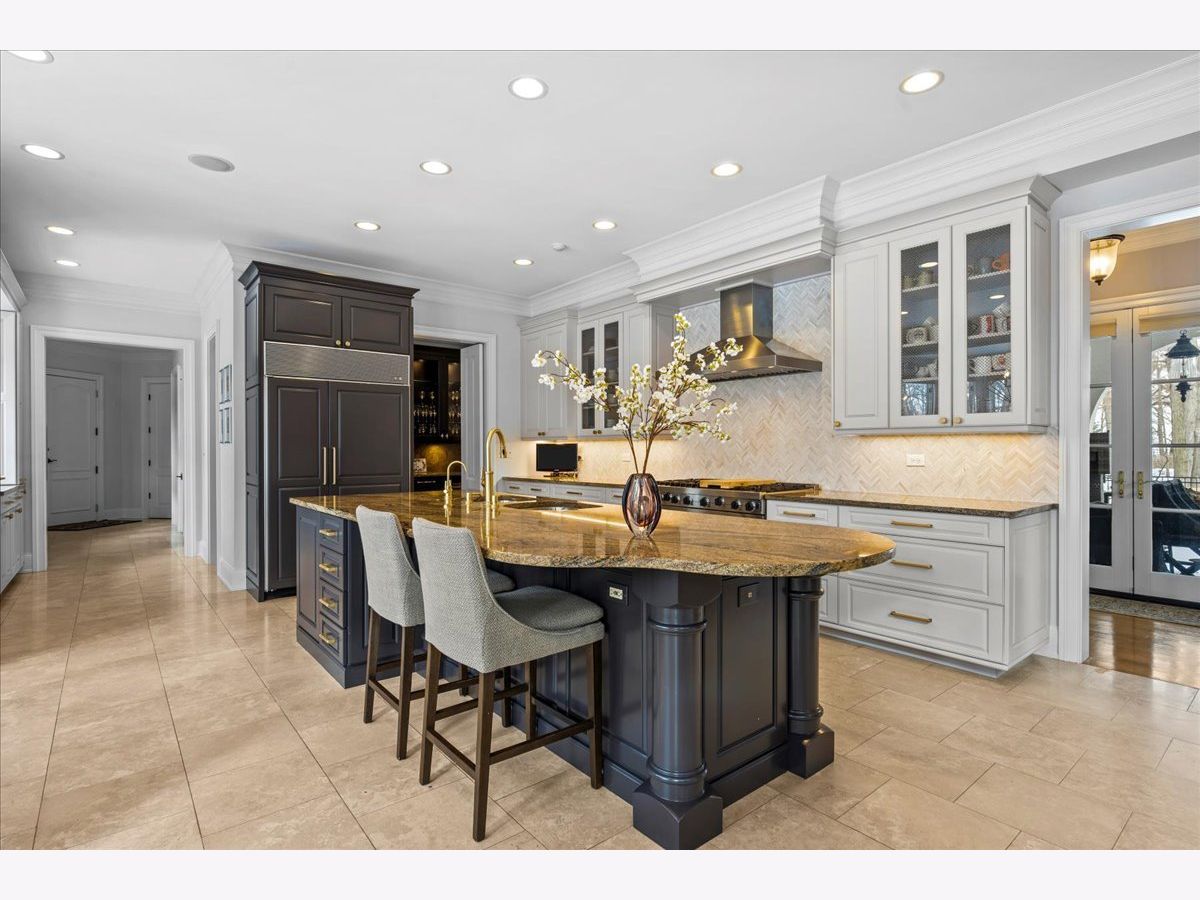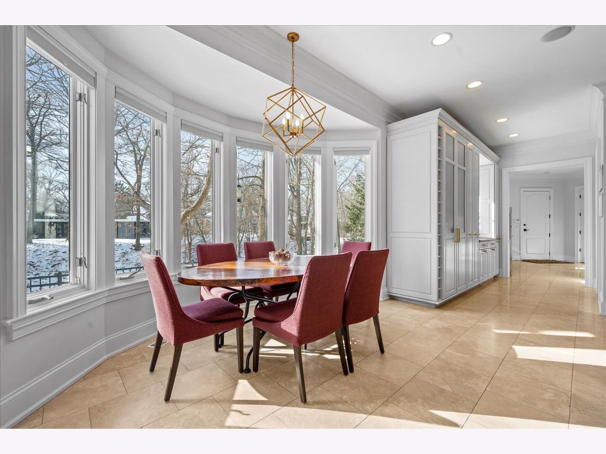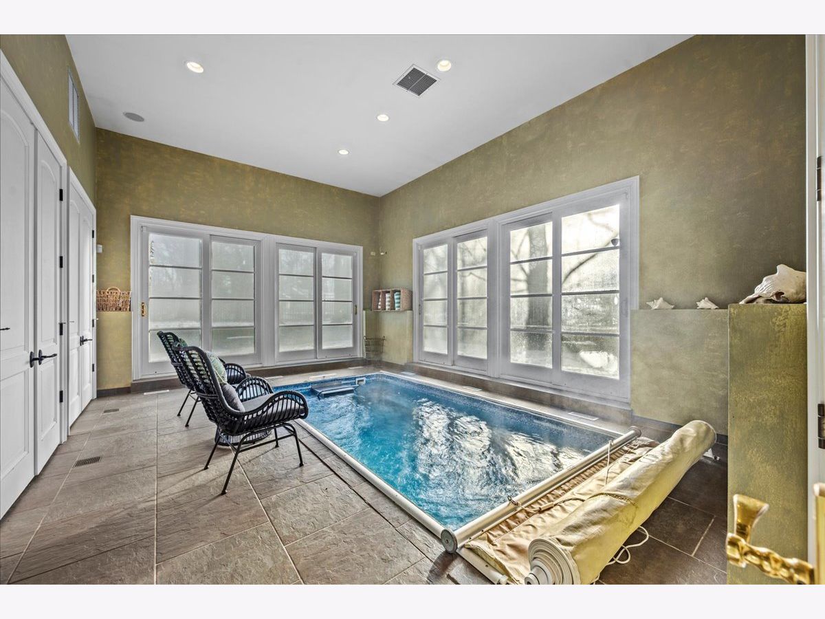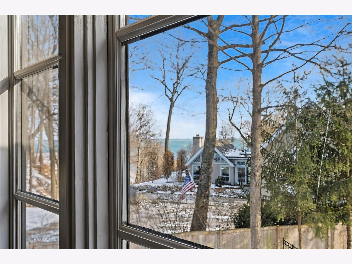 Nestled in East Lake Bluff on a beautiful ravine with seasonal Lake Michigan views, this exceptional home offers the rare luxury of a private beach. A dramatic two-story foyer with a curved staircase sets the tone for timeless elegance. At the front of the home, the library features a fireplace, warm wood-paneled walls, and a coffered ceiling. The living room with fireplace flows into the dining room, where expansive windows capture ravine and lake views. A well-appointed butler's pantry includes a sink, beverage refrigerator, Viking warming drawer, and generous cabinetry. The light-filled kitchen with high-end appliances including two dishwashers is ideal for daily living and entertaining. The adjoining mudroom features an additional refrigerator, sink, and storage. The two-story family room is filled with natural light and centered around a custom limestone fireplace. Two staircases and an elevator lead to the upper level, featuring three ensuite bedrooms and a luxurious Primary Suite with spa-like bath, private office, and scenic lake views. A cozy workspace and a second-floor laundry room add convenience. The back staircase leads to a heated sunroom with a resistance pool that also functions as a spa, plus a second washer and dryer. The basement, also accessible by the elevator, includes a recreation room, wet bar, exercise room, and ample storage. A three-car heated garage with dog bath completes this extraordinary property, offering elegance, comfort and close to all Lake Bluff has to offer.