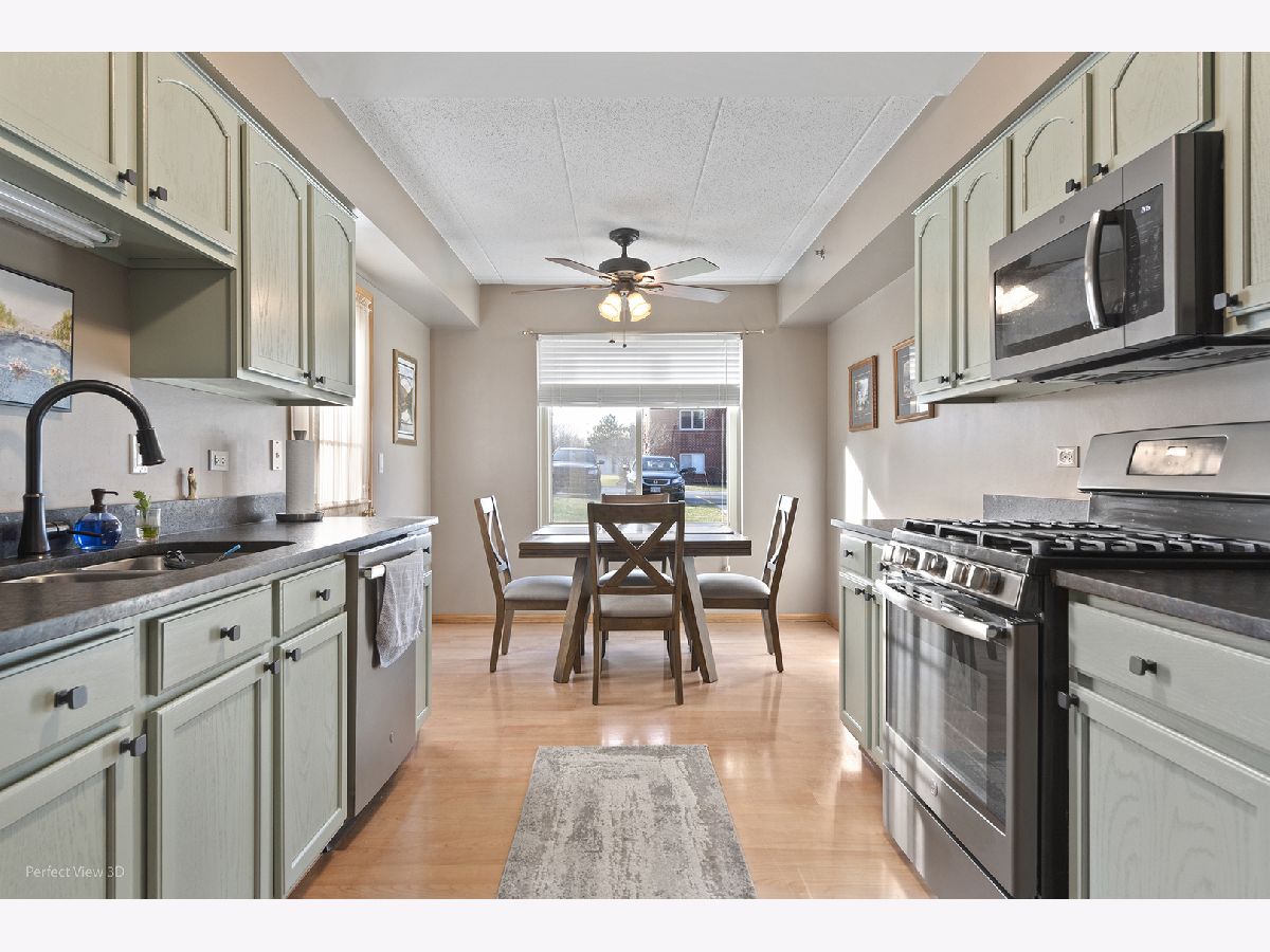 FIRST FLOOR ORLAND PARK CONDO AVAILABLE. QUALITY ALL BRICK BUILDING OFFERING A 2 BEDROOM 2 BATH ALONG WITH A 1 CAR GARAGE. FLEXICORE CONSTRUCTION SPACIOUS UNIT HAS RECENTLY REPLACED WINDOWS, NEWER ROOF, NEW PRIMARY BATHROOM AND WATER HEATER. VERY CLEAN HOME WITH NEUTRAL DECOR FEATURES AN EAT-IN KITCHEN WITH NEW GRANITE COUNTERTOPS AND GORGEOUS GE SLATE APPLIANCES. CONVENIENT IN UNIT LAUNDRY HAS A WASHER, DRYER, UTILITY SINK AND CABINETS. SLIDING DOOR OFF THE LIVING ROOM LEADS TO A MAIN LEVEL BALCONY. LOCATED IN A TOP RATED SCHOOL DISTRICT INCLUDING ANDREW HIGH SCHOOL. WATER IS INCLUDED IN ASSESSMENTS AND A HOME WARRANTY IS OFFERED.