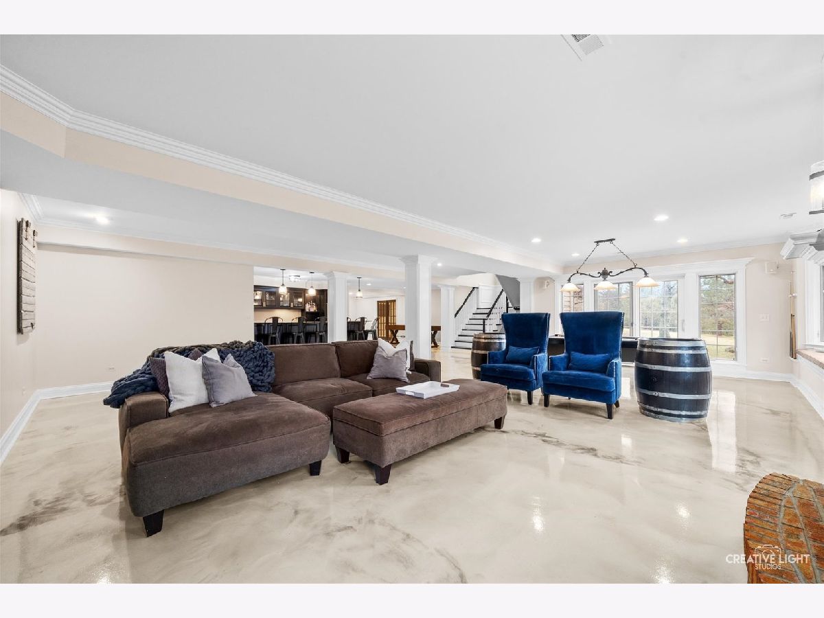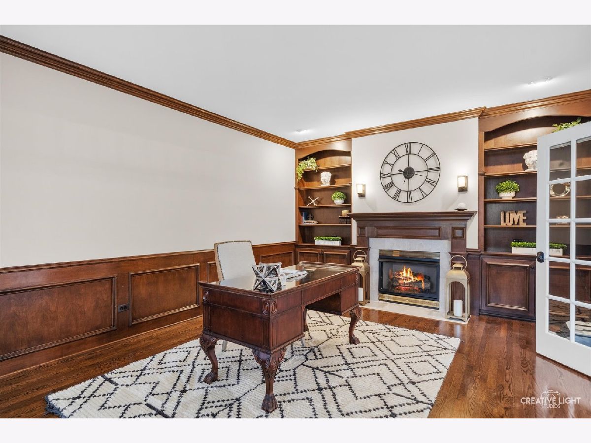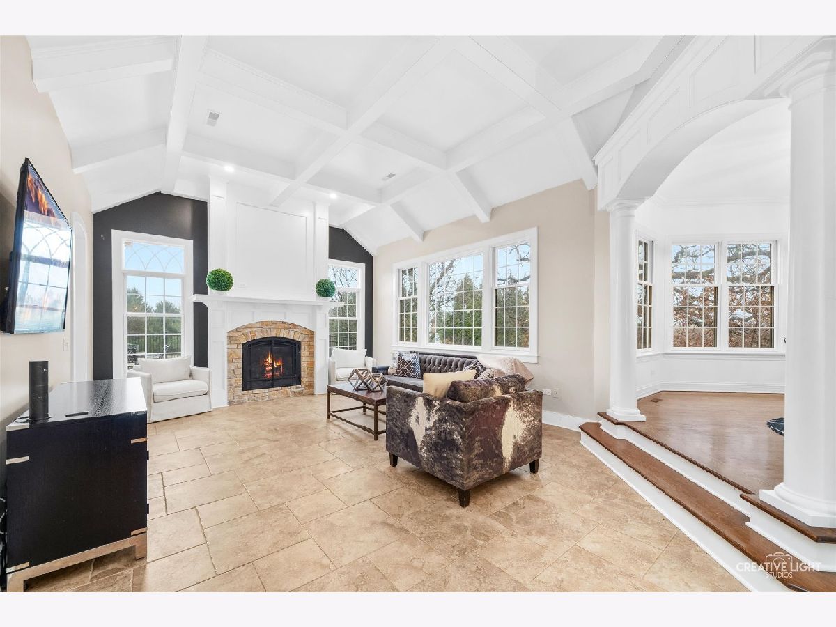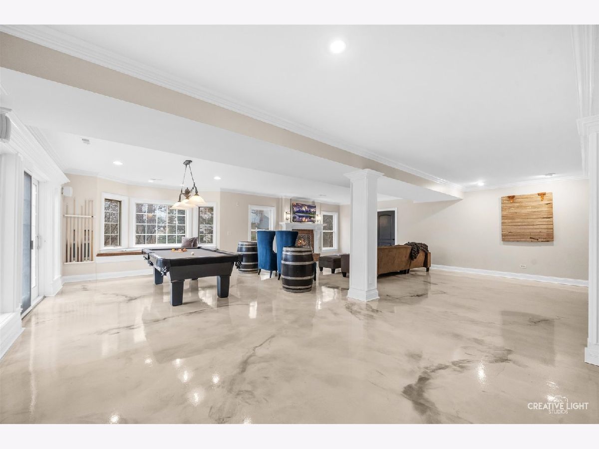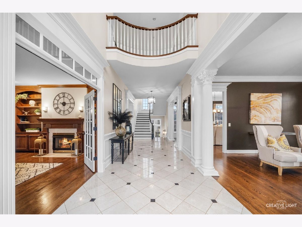 Resort-style living meets timeless elegance in this extraordinary custom estate, surrounded by mature trees and beautifully redesigned landscaping. A dramatic two-story foyer with marble flooring, architectural columns, and soaring ceilings creates a stunning first impression, while expansive windows throughout the home fill the interior with natural light and peaceful views of the surrounding grounds. The thoughtfully designed layout showcases rich hardwood flooring, detailed millwork, and expansive living spaces ideal for both everyday living and entertaining. The impressive great room features soaring coffered ceilings and a striking stone fireplace, flowing seamlessly into the chef's kitchen with granite countertops, custom cabinetry, stainless steel appliances, an oversized island with wine storage, and a sun-filled breakfast area framed by windows. A distinguished executive office with a fireplace and custom built-ins offers the perfect work-from-home retreat, while the desirable first-floor owner's suite provides a private sanctuary with a spa-inspired bath featuring dual vanities, a whirlpool tub, and an oversized walk-in shower. The well-appointed laundry room adds convenience and functionality with a dedicated pet bath, perfect for keeping four-legged family members clean after outdoor adventures. The expansive finished lower level is designed for recreation and entertaining, complete with a custom wet bar, generous gathering spaces, a fitness room, guest bedroom, and full bath. Step outside to your private backyard oasis featuring a luxury in-ground pool (2021), expansive patio, and an inviting outdoor fireplace-perfect for relaxing evenings or entertaining under the stars. Professionally redesigned landscaping surrounds the space, creating a peaceful wooded retreat. Ideally located near shopping, dining, parks, golf courses, and highly rated schools, this exceptional residence offers the perfect balance of privacy, elegance, and convenience.
