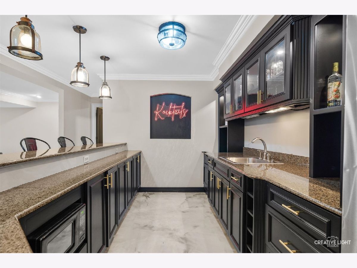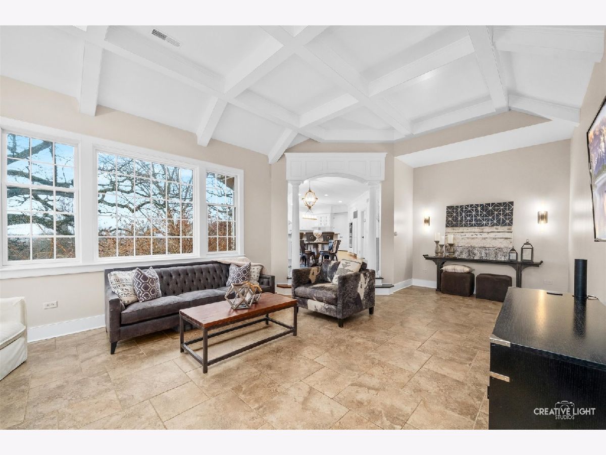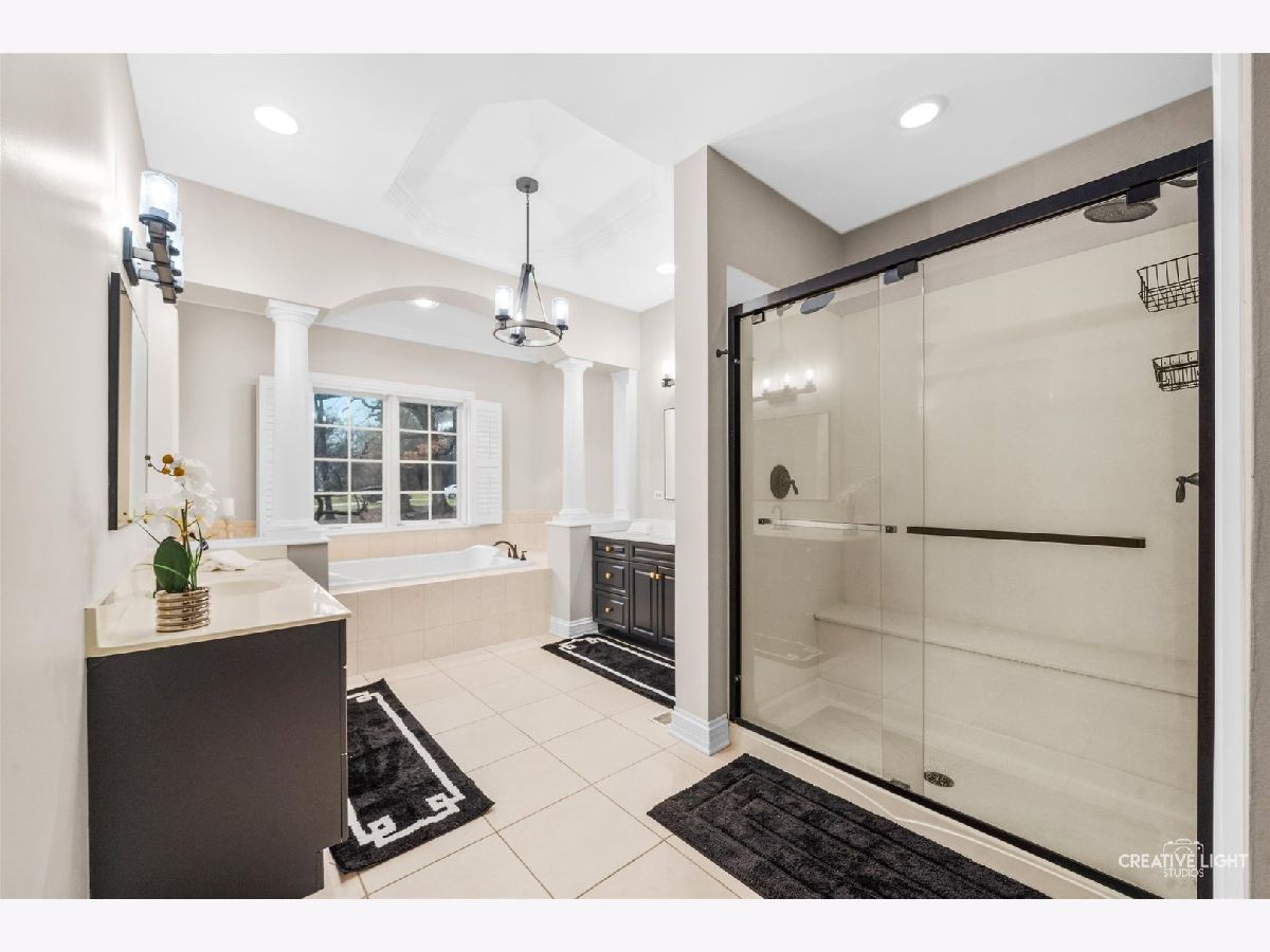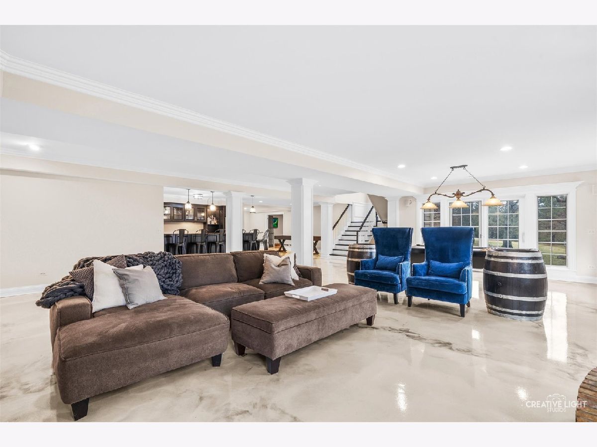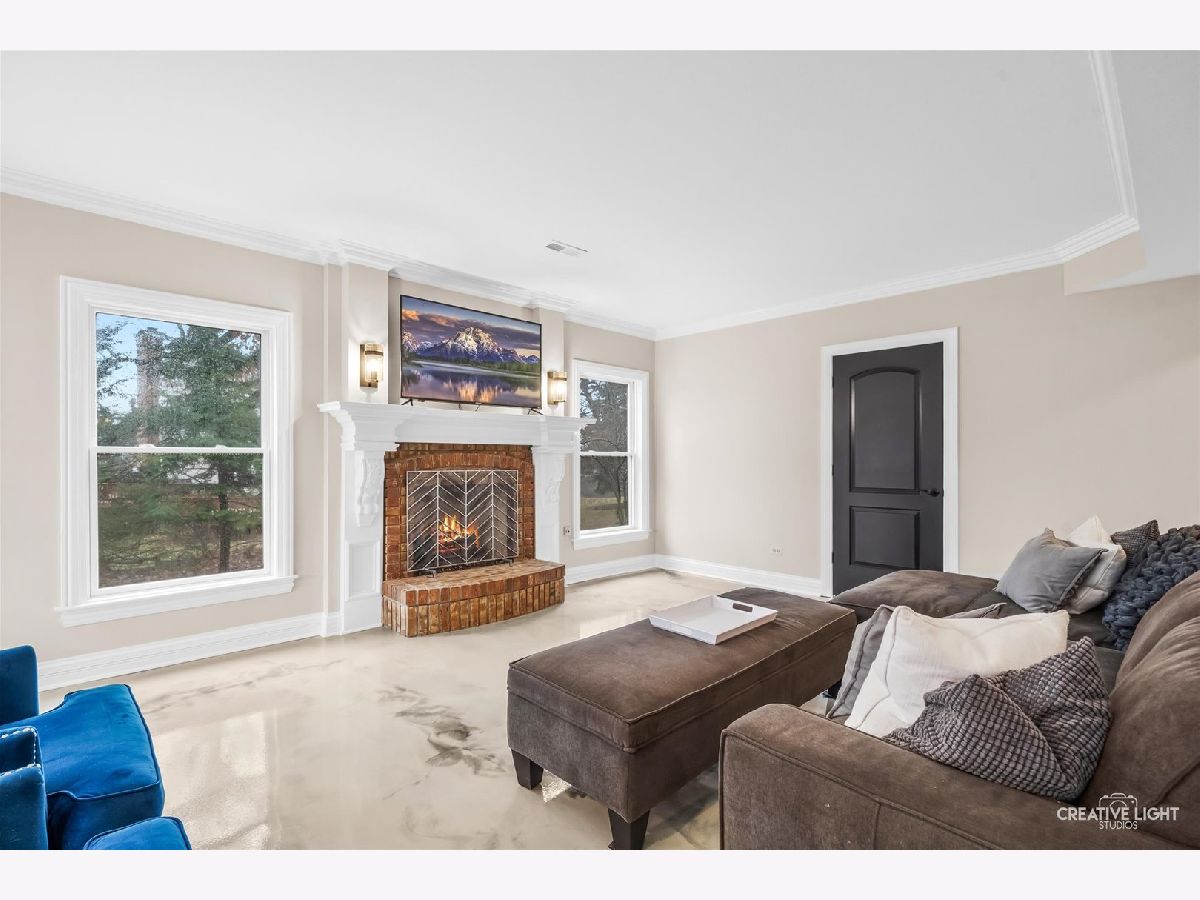 Resort-style living meets timeless elegance in this extraordinary custom estate, surrounded by mature trees and beautifully redesigned landscaping. A dramatic two-story foyer with marble flooring, architectural columns, and soaring ceilings creates a stunning first impression, while expansive windows throughout the home fill the interior with natural light and peaceful views of the surrounding grounds. The thoughtfully designed layout showcases rich hardwood flooring, detailed millwork, and expansive living spaces ideal for both everyday living and entertaining. The impressive great room features soaring coffered ceilings and a striking stone fireplace, flowing seamlessly into the chef's kitchen with granite countertops, custom cabinetry, stainless steel appliances, an oversized island with wine storage, and a sun-filled breakfast area framed by windows. A distinguished executive office with a fireplace and custom built-ins offers the perfect work-from-home retreat, while the desirable first-floor owner's suite provides a private sanctuary with a spa-inspired bath featuring dual vanities, a whirlpool tub, and an oversized walk-in shower. The well-appointed laundry room adds convenience and functionality with a dedicated pet bath, perfect for keeping four-legged family members clean after outdoor adventures. The expansive finished lower level is designed for recreation and entertaining, complete with a custom wet bar, generous gathering spaces, a fitness room, guest bedroom, and full bath. Step outside to your private backyard oasis featuring a luxury in-ground pool (2021), expansive patio, and an inviting outdoor fireplace-perfect for relaxing evenings or entertaining under the stars. Professionally redesigned landscaping surrounds the space, creating a peaceful wooded retreat. Ideally located near shopping, dining, parks, golf courses, and highly rated schools, this exceptional residence offers the perfect balance of privacy, elegance, and convenience.