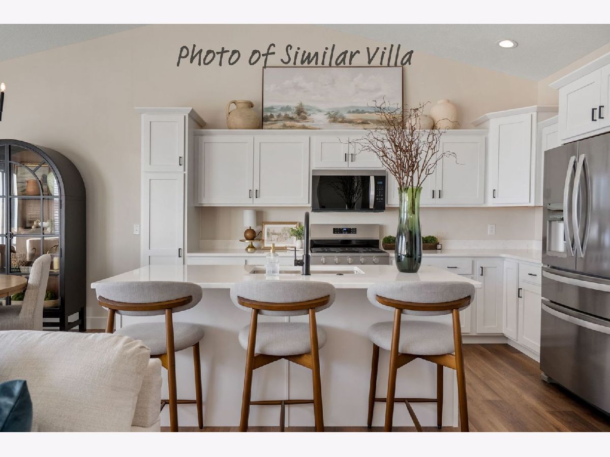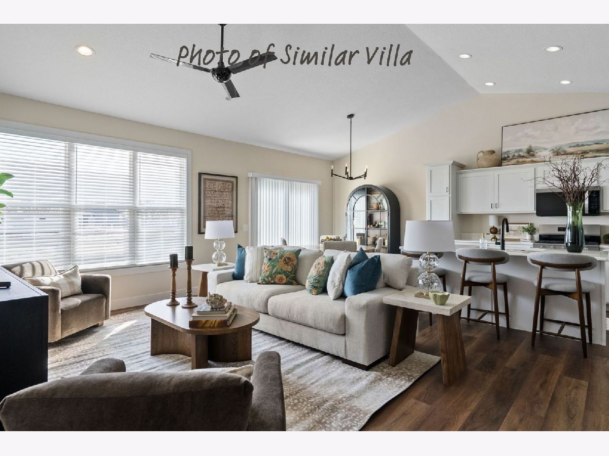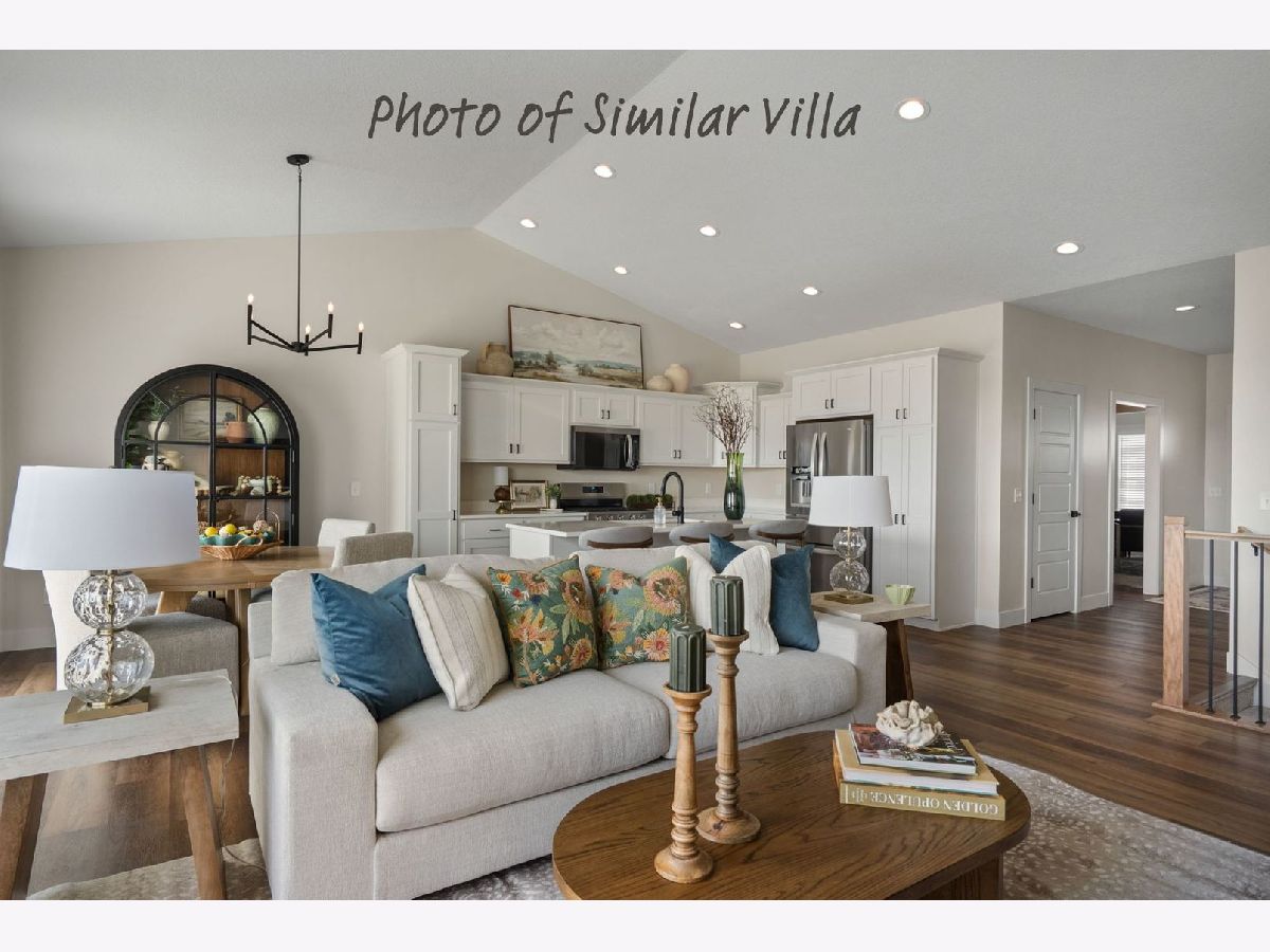 Johnson Farm Estates & Villas located in Pleasant Valley School District is now owned & managed by Windmiller Development. Aspen Homes brings their award-winning Villa floor plan to LeClaire Iowa. This beautiful blend of tradition and modern finishes features 2 bedrooms, 2 full baths, 9' ceilings and luxury plank flooring. You'll love the open concept, desirable kitchen that includes quartz counter, stainless appliances. You'll appreciate the 20x24 Zero Entry 2-car garage leading to the spacious rear entry, bench with coat hangers. Standard Pella windows throughout. LeClaire has much to offer with nearby walking trails, parks, YMCA 2026 and convenient grocery store. The downtown area full of shopping, events, restaurants from fast food to fine dining and endless charm. HOA includes lawncare maintenance & snow removal. Pets allowed with some restrictions. This END unit is a SLAB at grade with additional 4-SEASON room. Projected completion late May 12, 2026.