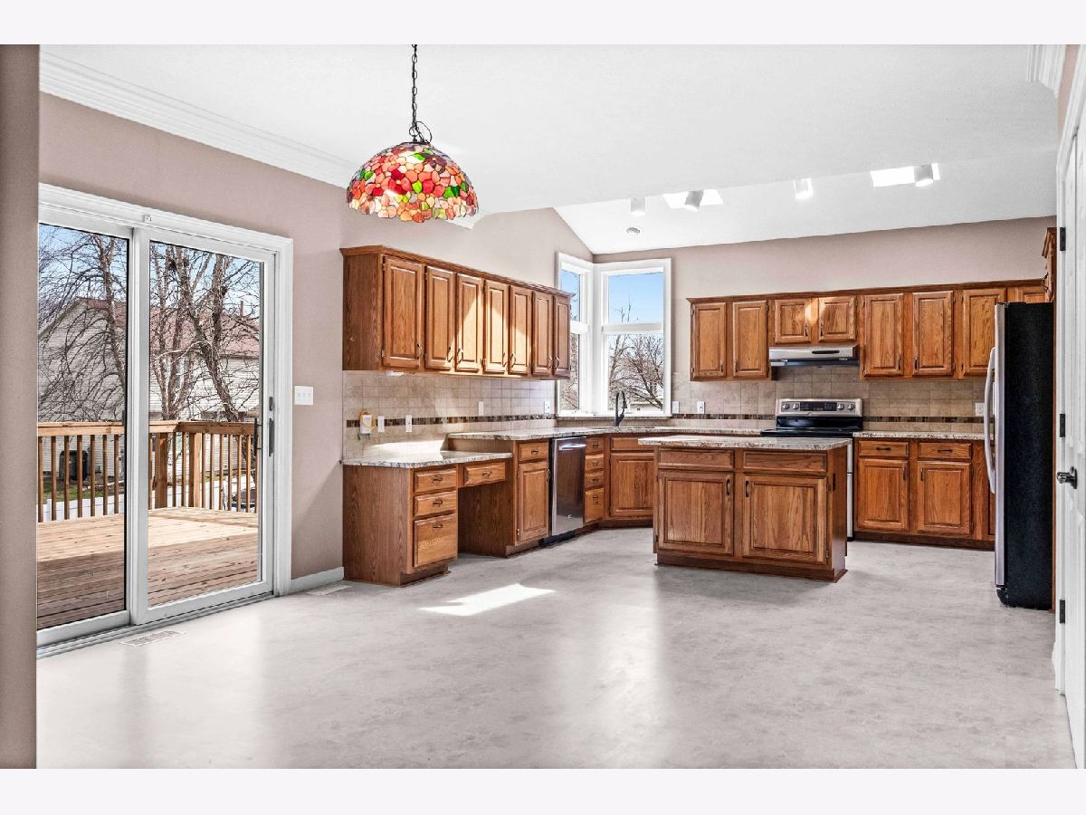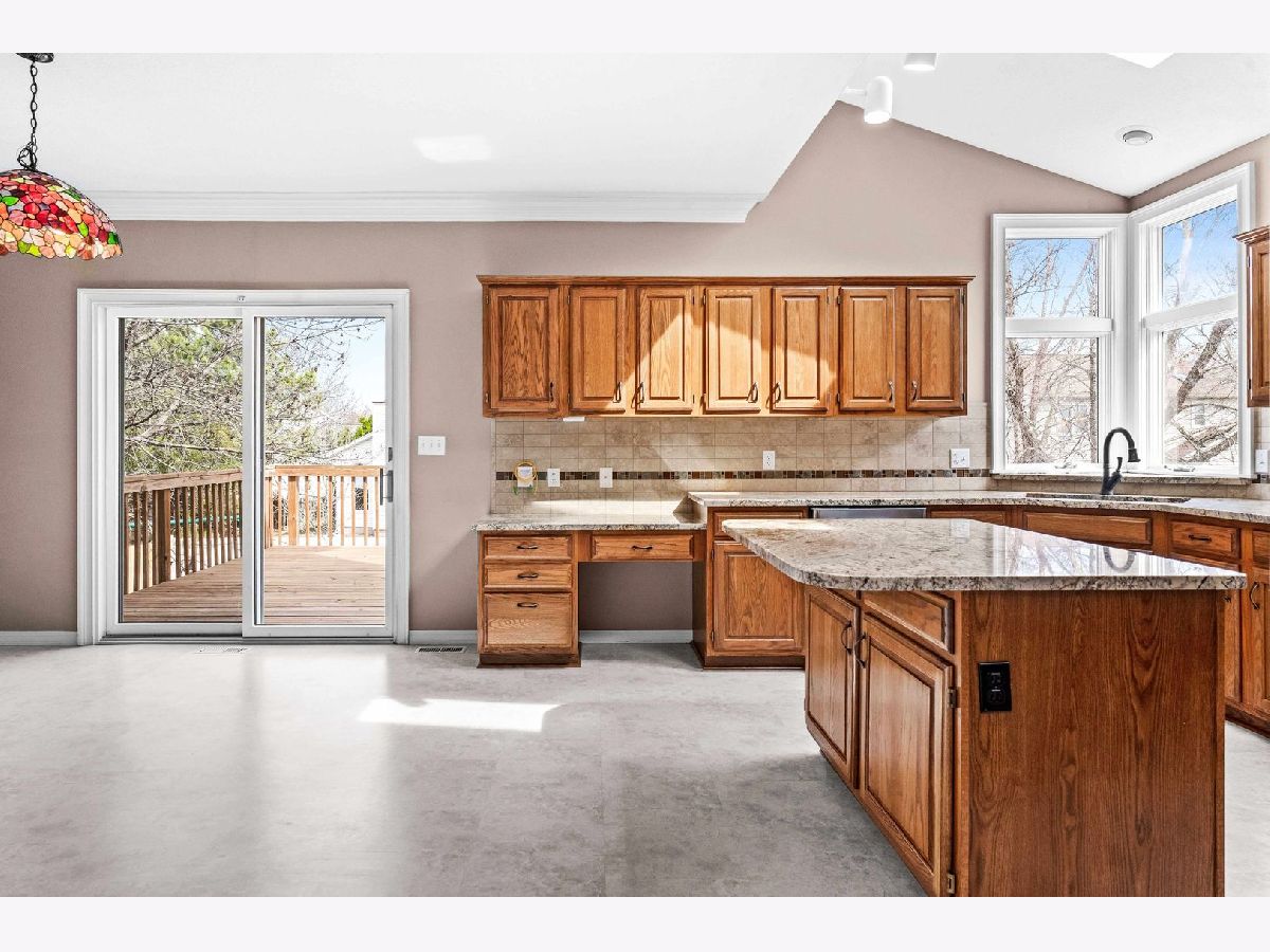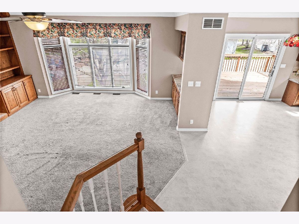 Warm and inviting 2-story on desirable Eagle Ridge cul-de-sac in the Northpoint Elementary Unit 5 school district. Accented by natural daylight on each floor, this popular Kaisner plan features vaulted ceilings, crown molding, generous rooms, and a full finished walk-out basement, creating an airy, spacious feel. An updated open kitchen-with granite counters, a breakfast bar island, a corner sink surrounded by wraparound windows, stainless steel appliances, and a pass-thru service bar flows seamlessly into the family room, ideal for everyday living and entertaining. Upstairs, the sunlit primary bedroom features a bay-window wall, his-and-hers closets, and a garden tub with a separate shower. Outdoor living shines with a 12x16 deck off the kitchen, covering the ground-level patio below. Home features and improvements include durable WilsonArt flooring in the kitchen, a smartly positioned laundry/mud room off the garage, a lower-level 8 x 12 finished closet/storage, and a spare office/play or hobby room, which adjoins the 42 x 20 recreation room in the walk-out basement. An additional 500 sq ft of unfinished storage completes the space. Roof (2009), Trane HVAC (2009) w/humidifier (2016), carpeting (2016/2019), Fence and deck (2022). Northpoint Elementary, Kingsley JH and NCHS.