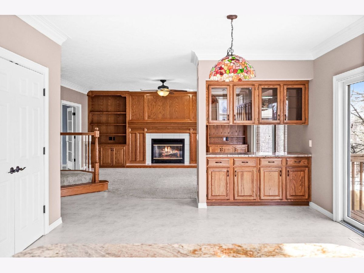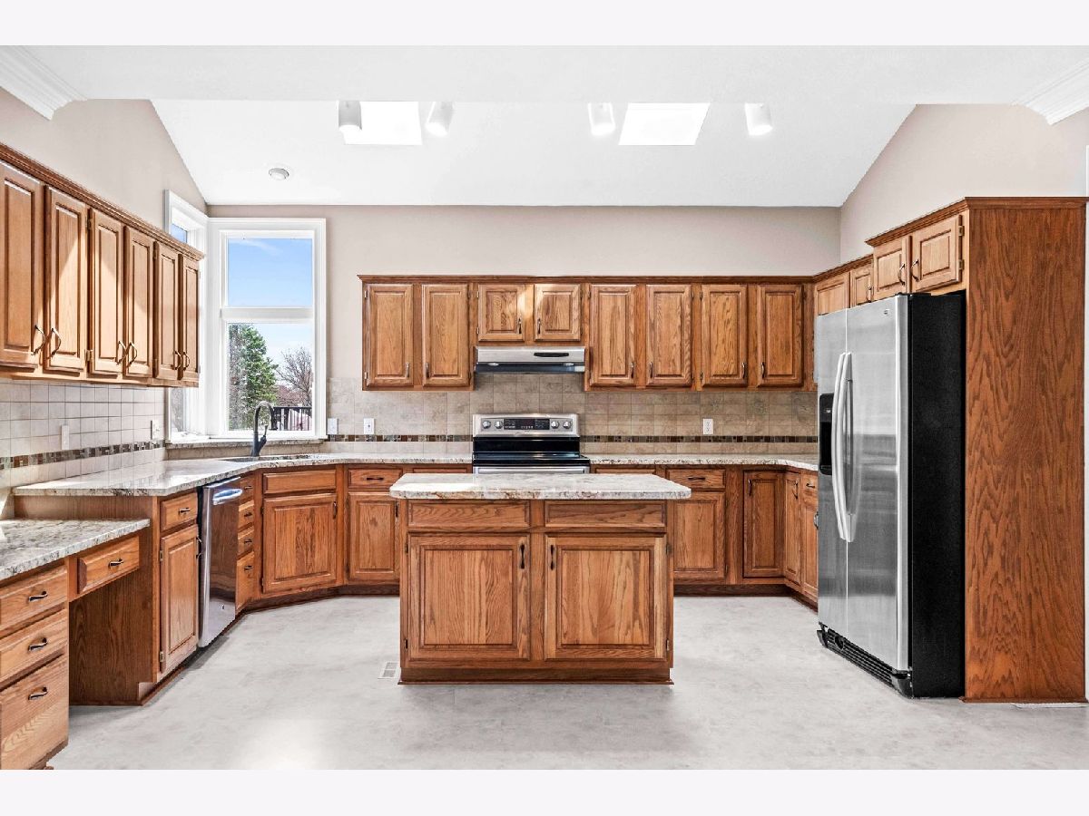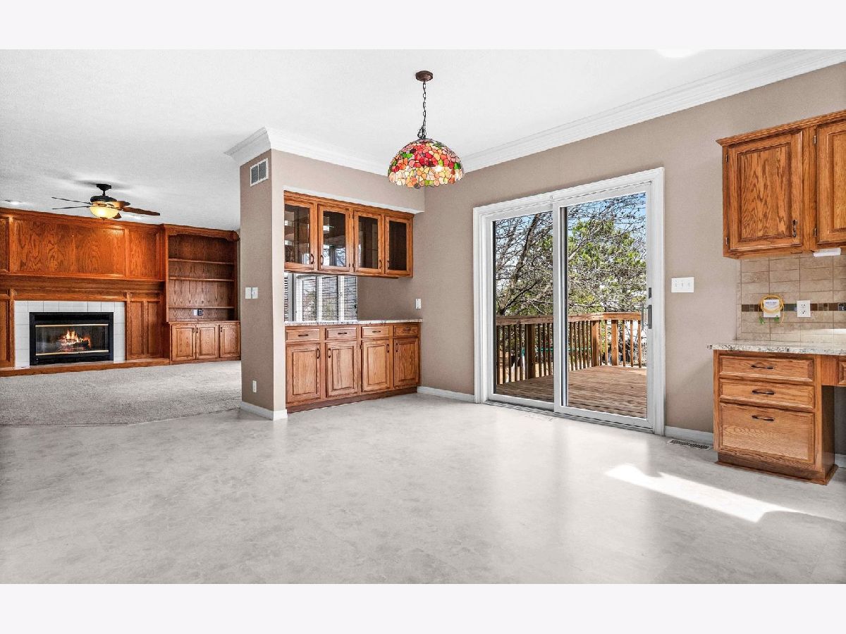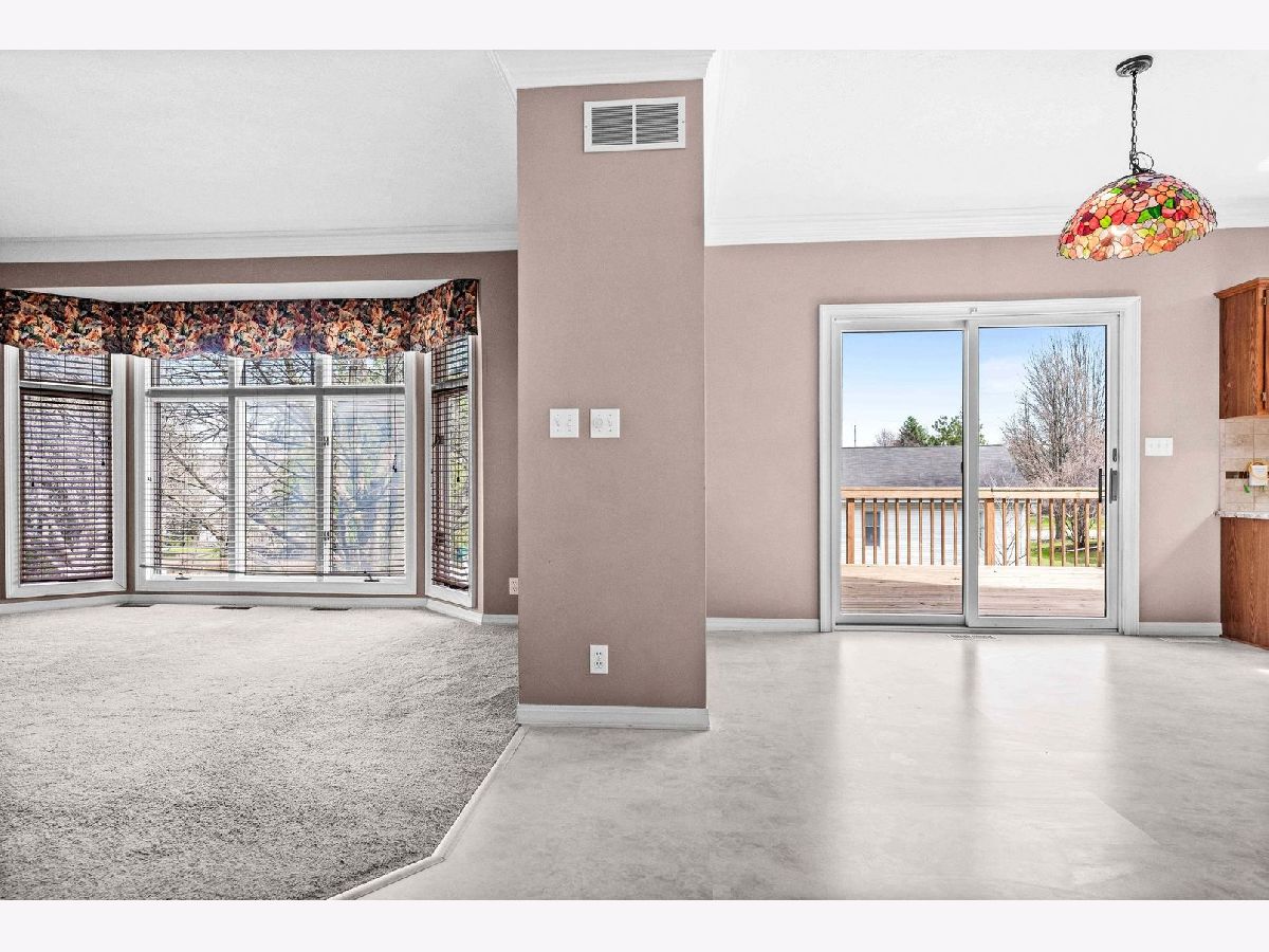 Warm and inviting 2-story on desirable Eagle Ridge cul-de-sac in the Northpoint Elementary Unit 5 school district. Accented by natural daylight on each floor, this popular Kaisner plan features vaulted ceilings, crown molding, generous rooms, and a full finished walk-out basement, creating an airy, spacious feel. An updated open kitchen-with granite counters, a breakfast bar island, a corner sink surrounded by wraparound windows, stainless steel appliances, and a pass-thru service bar flows seamlessly into the family room, ideal for everyday living and entertaining. Upstairs, the sunlit primary bedroom features a bay-window wall, his-and-hers closets, and a garden tub with a separate shower. Outdoor living shines with a 12x16 deck off the kitchen, covering the ground-level patio below. Home features and improvements include durable WilsonArt flooring in the kitchen, a smartly positioned laundry/mud room off the garage, a lower-level 8 x 12 finished closet/storage, and a spare office/play or hobby room, which adjoins the 42 x 20 recreation room in the walk-out basement. An additional 500 sq ft of unfinished storage completes the space. Roof (2009), Trane HVAC (2009) w/humidifier (2016), carpeting (2016/2019), Fence and deck (2022). Northpoint Elementary, Kingsley JH and NCHS.