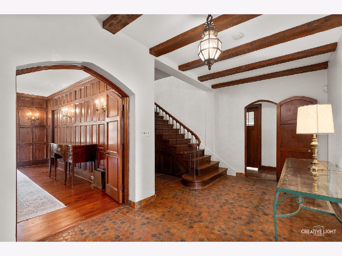Timeless Elegance Meets Craftsmanship: A 1929 Masterpiece in Aurora's Coveted West Side Discover the pinnacle of historic charm and artisan craftsmanship in this extraordinary 1929-built estate, nestled on a picturesque corner lot in one of Aurora's most esteemed neighborhoods. Upon arrival, you are welcomed into a charming screen porch, leading you through sturdy, well-crafted all-wood doors that set the tone for the elegance that lies within. Inside, the grand living room greets you with a stunning 12-foot ceiling, bathed in natural light and anchored by a stately fireplace. Graceful archways lead to a cozy den or TV room-ideal for relaxation. The heart of this home, the kitchen, is a beautiful homage to its era, featuring original metal cabinetry, an authentic stove and ovens, and a delightful bar kitchen complete with an original coffee grinder. The formal dining room, adorned with exquisite all-wood paneling, is a space designed for memorable gatherings and elegant dinners. The second floor offers five spacious bedrooms, including a luxurious master suite with its own private office, a full bathroom featuring a standing shower and soaking tub, dual closets (a walk-in and shirt closet), and its own fireplace. Three full bathrooms, including a Jack-and-Jill bath, serve the second-floor bedrooms, ensuring convenience and comfort for all. For those who love to entertain, the third floor boasts a fully finished attic with wood flooring, perfect for transforming into a game room or expansive party space. Meanwhile, the freshly painted basement provides additional room for storage or creative use. Every corner of this home tells a story, from the custom stone exterior, crafted on-site, to the enduring beauty of the slate roof and copper gutters. Original iron chandeliers add a touch of vintage elegance, illuminating the meticulous details that make this property truly one-of-a-kind. This residence is a rare opportunity to own a home rich in character and history, with the perfect blend of modern function and timeless beauty. If you've been searching for a property that stands out for its charm, craftsmanship, and location-this is it.