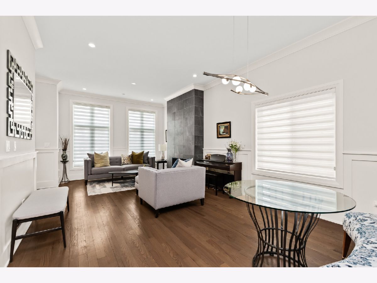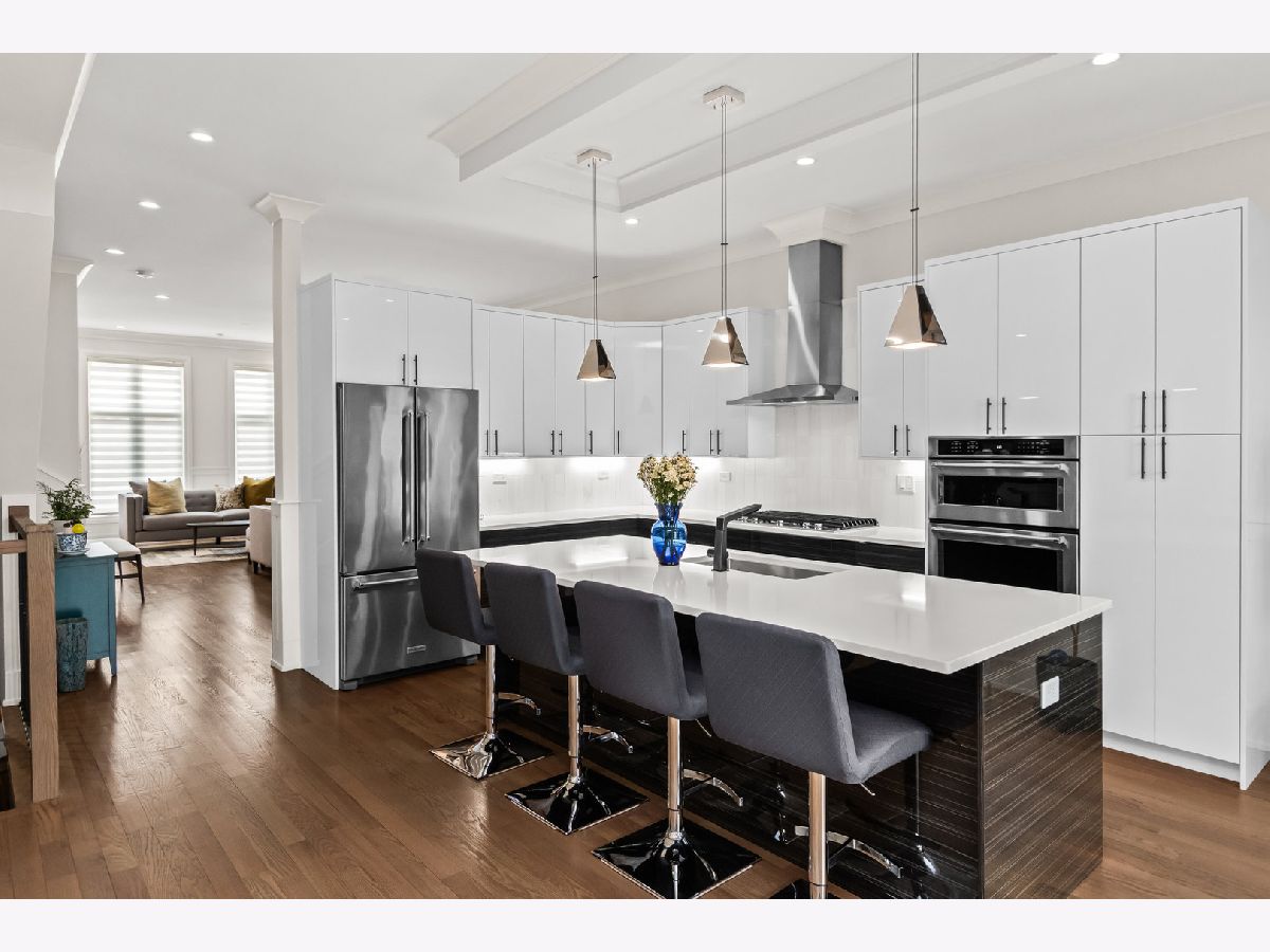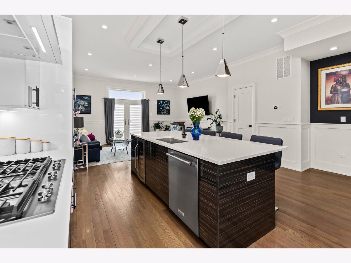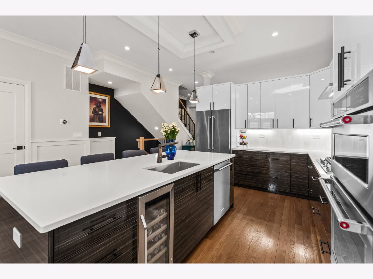 Welcome home to this contemporary new construction single-family home in a heart of Bronzeville neighborhood. This beautifully designed home has gracious room sizes, dramatic high ceilings, and custom wainscoting throughout. Thoughtfully maintained and extensively upgraded, this residence is perfect for both everyday living and entertaining. The main level flows effortlessly from the elegant living room to the formal dining area and into the impressive island kitchen with adjoining great room. Designed with the entertainer in mind, the chef's kitchen features KitchenAid appliances, contemporary cabinetry, a striking exhaust hood, oversized island, and sleek quartz countertops. Step outside to the spacious back deck and fenced yard - a seamless extension of the home - enhanced with an automatic awning, retractable screen, and custom outdoor drapery rods.The second level offers a luxurious primary suite retreat with cathedral ceilings, walk-in closet, and a spa-like bath complete with a 6-foot soaking tub and separate shower. Two additional bedrooms share a convenient Jack-and-Jill bathroom, with generous closet space and abundant natural light.The fully finished lower level provides incredible flexibility, featuring a large recreation room, wet bar, additional bedrooms, and a second laundry area - ideal for guests, extended family, or entertaining. A full bath and sauna add to the comfort and functionality of this level.Additional highlights include custom zebra blinds, updated HVAC system with Nest thermostats, dimmer switches on all levels, updated lighting, ceiling fans, patio pavers, stained wood fencing, LeafGuard gutters, wrought iron gate, and enhanced security system with Ring doorbells and cameras.The spacious deck, private yard, and thoughtful upgrades throughout make this home an exceptional value and a perfect place to call home. Schedule your showing today!