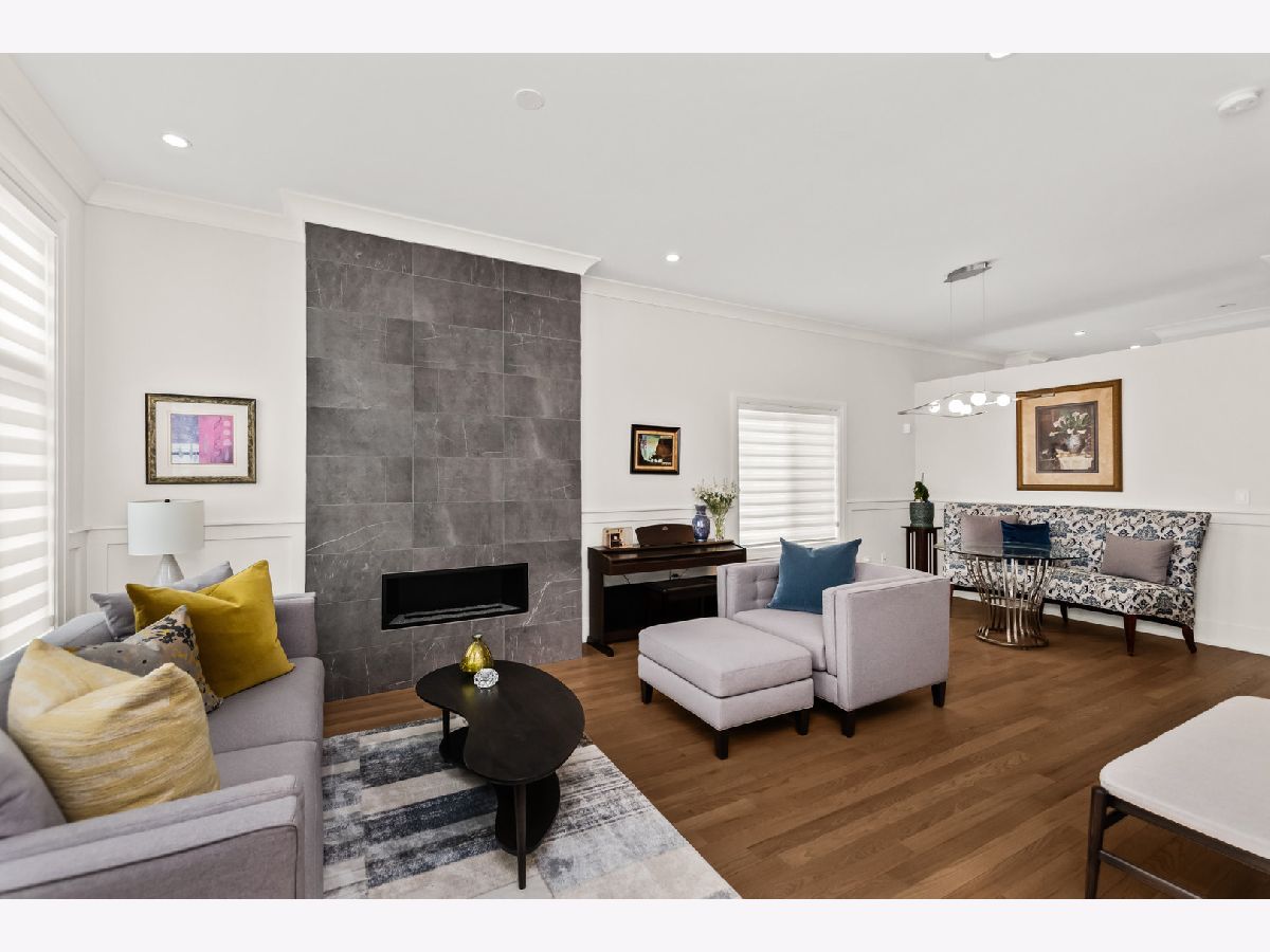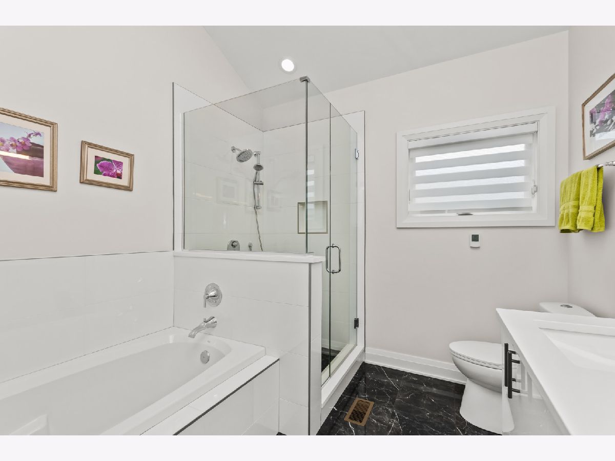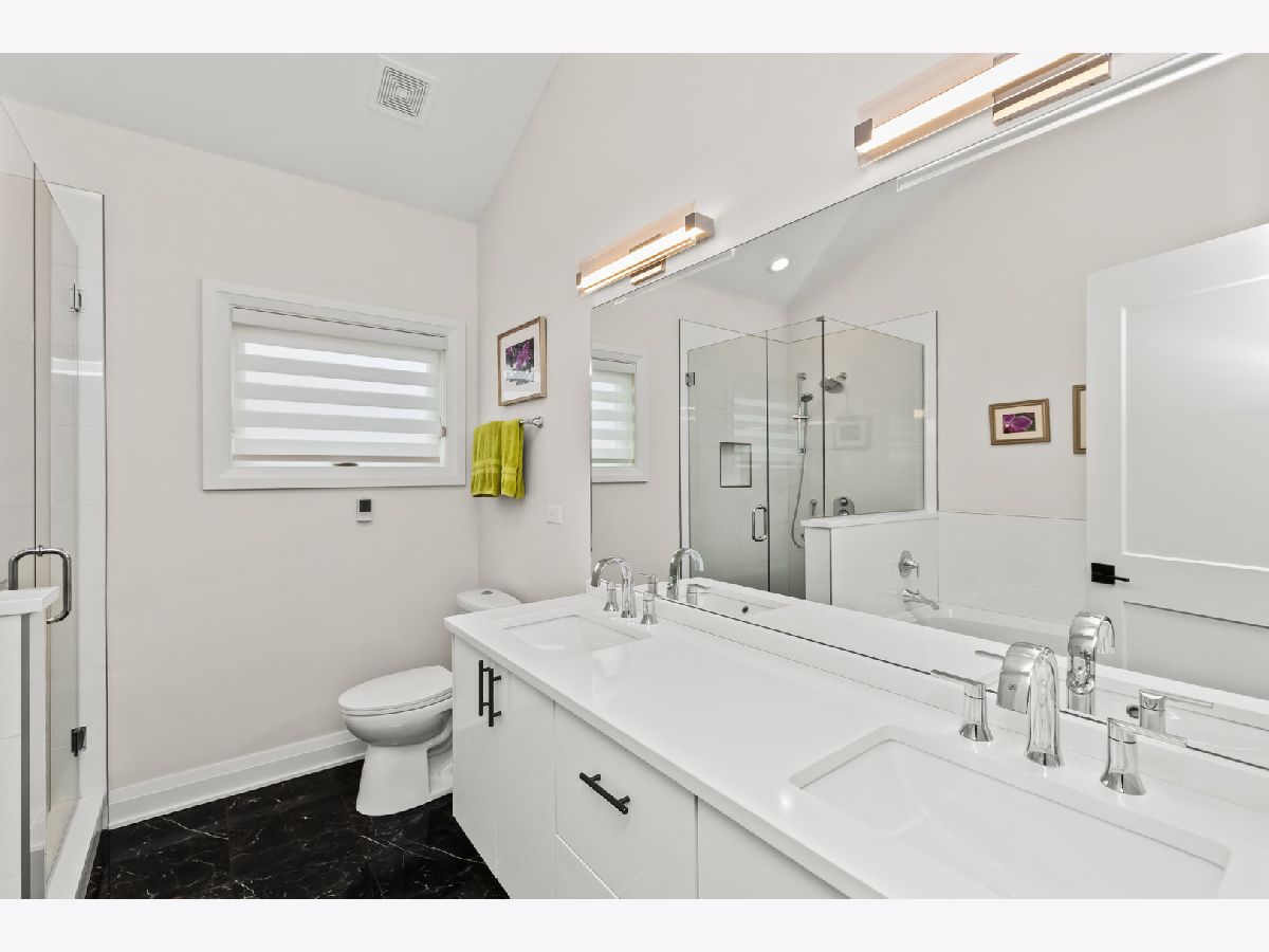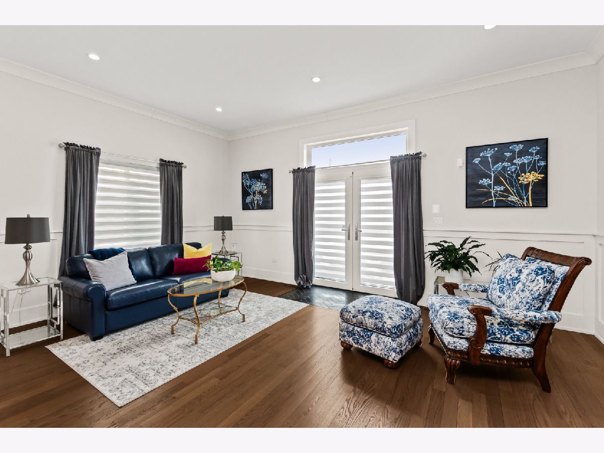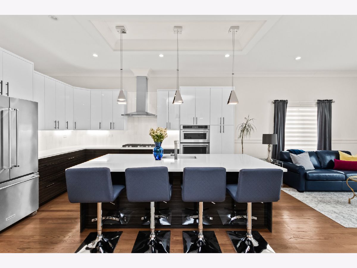 Welcome home to this contemporary new construction single-family home in a heart of Bronzeville neighborhood. This beautifully designed home has gracious room sizes, dramatic high ceilings, and custom wainscoting throughout. Thoughtfully maintained and extensively upgraded, this residence is perfect for both everyday living and entertaining. The main level flows effortlessly from the elegant living room to the formal dining area and into the impressive island kitchen with adjoining great room. Designed with the entertainer in mind, the chef's kitchen features KitchenAid appliances, contemporary cabinetry, a striking exhaust hood, oversized island, and sleek quartz countertops. Step outside to the spacious back deck and fenced yard - a seamless extension of the home - enhanced with an automatic awning, retractable screen, and custom outdoor drapery rods.The second level offers a luxurious primary suite retreat with cathedral ceilings, walk-in closet, and a spa-like bath complete with a 6-foot soaking tub and separate shower. Two additional bedrooms share a convenient Jack-and-Jill bathroom, with generous closet space and abundant natural light.The fully finished lower level provides incredible flexibility, featuring a large recreation room, wet bar, additional bedrooms, and a second laundry area - ideal for guests, extended family, or entertaining. A full bath and sauna add to the comfort and functionality of this level.Additional highlights include custom zebra blinds, updated HVAC system with Nest thermostats, dimmer switches on all levels, updated lighting, ceiling fans, patio pavers, stained wood fencing, LeafGuard gutters, wrought iron gate, and enhanced security system with Ring doorbells and cameras.The spacious deck, private yard, and thoughtful upgrades throughout make this home an exceptional value and a perfect place to call home. Schedule your showing today!