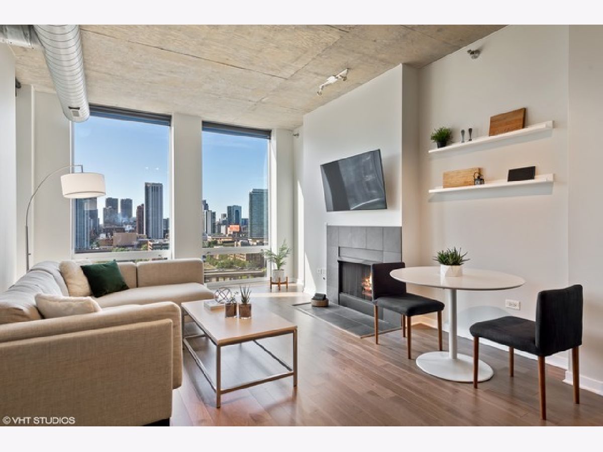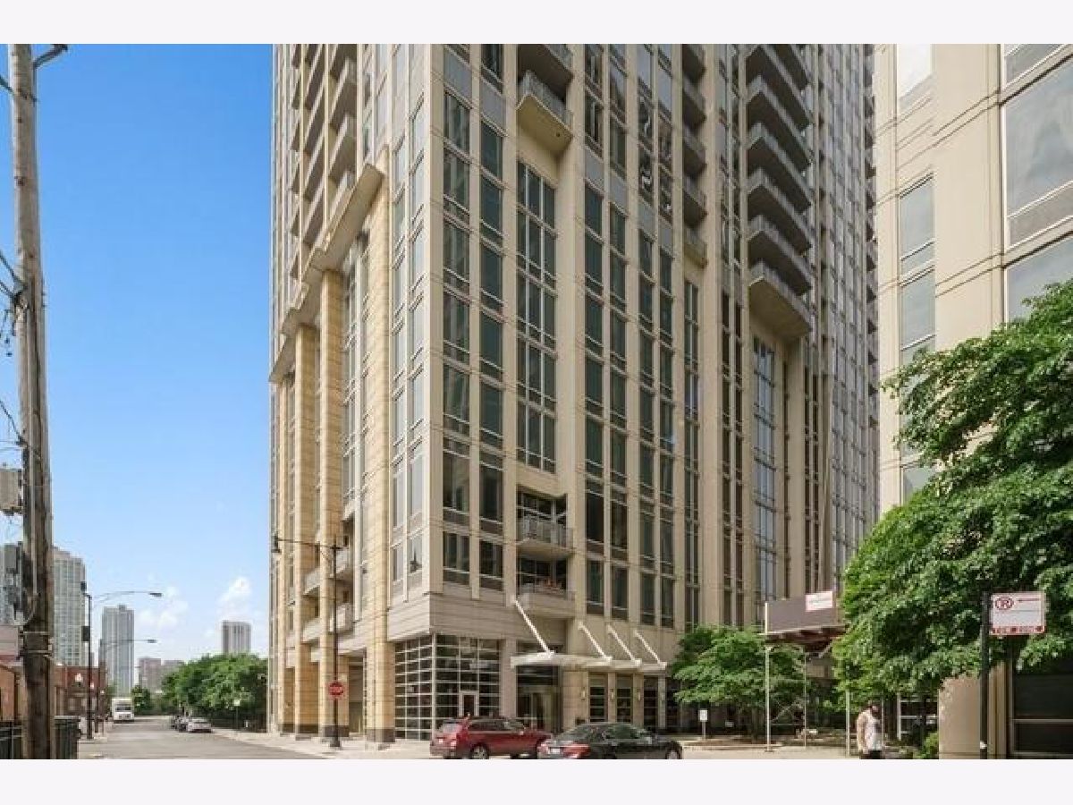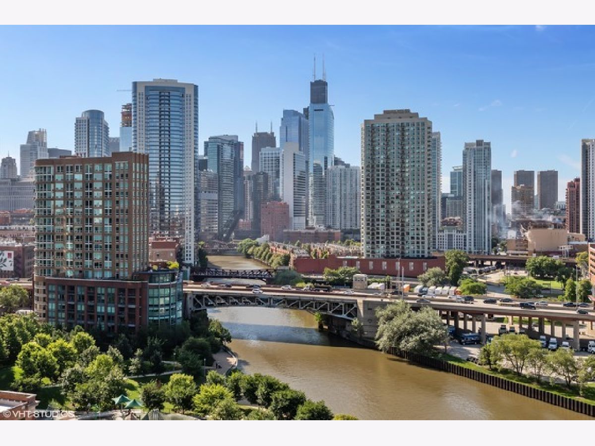 Discover this beautiful 2-bed, 2-bath condo with stunning, south-facing views of the city, river, and sunsets from your private balcony. Located along the River Walk, this home features elegant engineered hardwood floors, stainless steel appliances, kitchen island, and an in-unit washer/dryer. Spacious primary bedroom with bath featuring double bowl sink and separate shower. Ample professionally organized closets. Indoor garage parking additional to be sold with the unit. Separate storage unit included. Building offers 24 hour door staff, professional on site management and a fitness center. River Walk, Dog Park, Erie Cafe, Obelix, and Water Taxi are just steps away in vibrant River North. Enjoy easy access to I-90/94, CTA 66 and 70 buses, and a quick ten-minute walk to the Chicago Brown Line. Investor Friendly! Virtual tour available. Don't miss this gem!