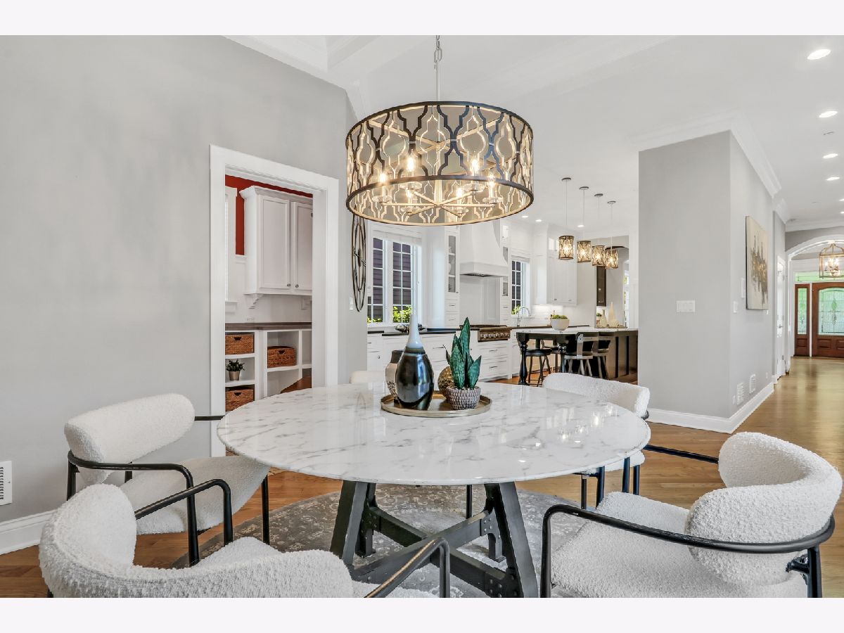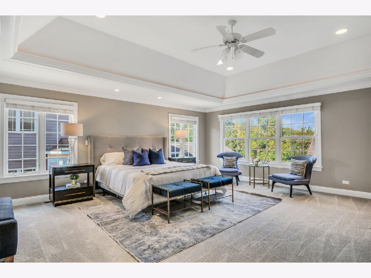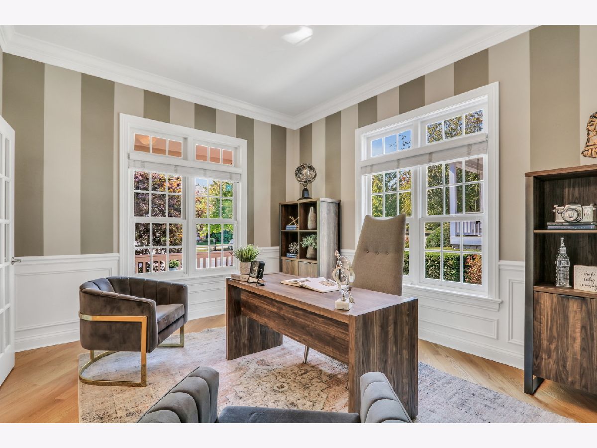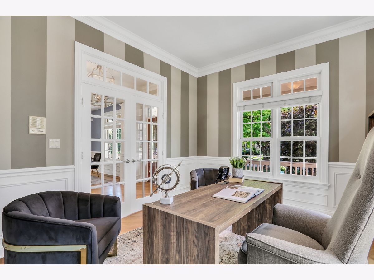 WELCOME HOME to this Coveted Libertyville 5 Bedroom, 4.1 Bath Home. Luxury Living Meets Ideal Location Get ready to fall in love with this absolutely stunning 5-bedroom, 4.1-bath home, ideally located in one of Libertyville's most desirable neighborhoods. Tucked on a picturesque, tree-lined street just moments from award-winning schools, walking trails, downtown Libertyville, and I-94 access, this home is the perfect blend of sophistication, comfort, and convenience. From the moment you arrive, the home's exceptional curb appeal sets the tone-featuring a charming front porch, freshly painted exterior (2024), and professionally landscaped grounds (2024) that create an inviting first impression. Step inside to discover over 4,000+ sq ft of thoughtfully designed living space, where custom craftsmanship, upscale finishes, and light-filled interiors define every corner. Soaring 10-foot ceilings, rich hardwood floors, intricate millwork, and arched doorways elevate the main level, while a neutral, timeless palette enhances the home's elegant feel. The heart of the home is the kitchen (fully remodeled in 2022 by Lazzaretto Design)-a true chef's dream equipped with a 6-burner Thermador range, Bosch microwave drawer, JennAir refrigerator, quartz countertops, large center island with seating for four, and updated designer lighting (2024). A stylish butler's pantry with beverage fridge adds even more prep and serving space, seamlessly connecting the kitchen to a formal dining room with tray ceiling, crown molding, and wainscoting detail-perfect for hosting elegant gatherings. The open-concept breakfast room with coffered ceiling flows beautifully into a cozy family room featuring custom built-ins, recessed lighting, and a warm gas fireplace. For those who work remotely or need a quiet retreat, a main-floor office with French doors and transom windows offers privacy and elegance. Nearby, the generous mudroom/laundry area includes built-in cubbies, cabinetry, and a newer washer/dryer (2018) to keep your everyday organized and effortless. Upstairs, you'll find four spacious bedrooms and three full baths, all thoughtfully updated and beautifully appointed. The luxurious primary suite (renovated in 2023) is a true retreat, featuring a tray ceiling with ambient uplighting, his and her walk-in closets, and a spa-like en suite bathroom. Boasting heated floors, freestanding soaking tub, double vanities and a walk-in shower with bench. Bedroom #2 is a true princess suite boasting a private en suite bath, while bedrooms #3 and #4 are connected by a Jack-and-Jill bath. The fully finished basement (2020) is a multifunctional haven, offering expansive space for entertaining, relaxation, or productivity. Enjoy movie nights by the gas fireplace, stay active in the dedicated gym (treadmill can stay!), or make use of the built-in study/homework zone. A fifth bedroom, full bath, and separate storage room complete this versatile lower level. New carpet (2025) ensures the space feels fresh and inviting. Outdoor living is just as impressive-step outside to a large brick paver patio with built-in firepit, perfect for summer evenings or fall gatherings. The deep 3-car garage includes a refrigerator and plenty of storage space. Additional upgrades throughout the home include: HVAC system (2020), sump pump with backup, ADT security wiring, and ALL TVs included. For nature lovers, the neighborhood is just steps from scenic running paths that connect to the Des Plaines River Trail. For families, the area is full of children, and schools are top-rated. For commuters and entertainers, downtown Libertyville-with its charming shops, restaurants, festivals, and Metra station-is just minutes away. This isn't just a house-it's the one you've been waiting for. An impeccably maintained, move-in-ready home in a vibrant, connected community.