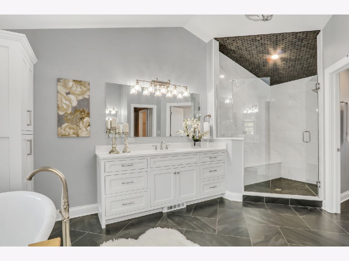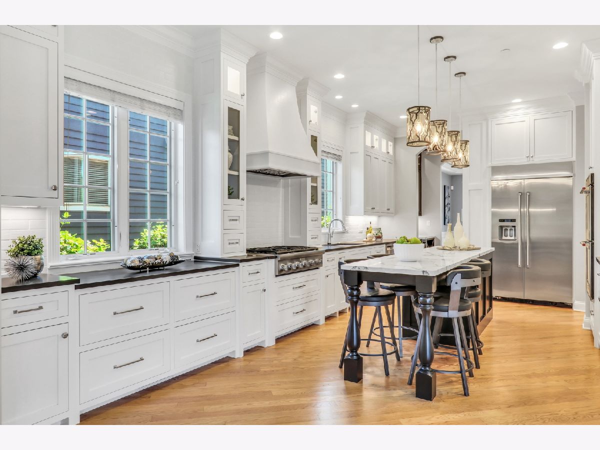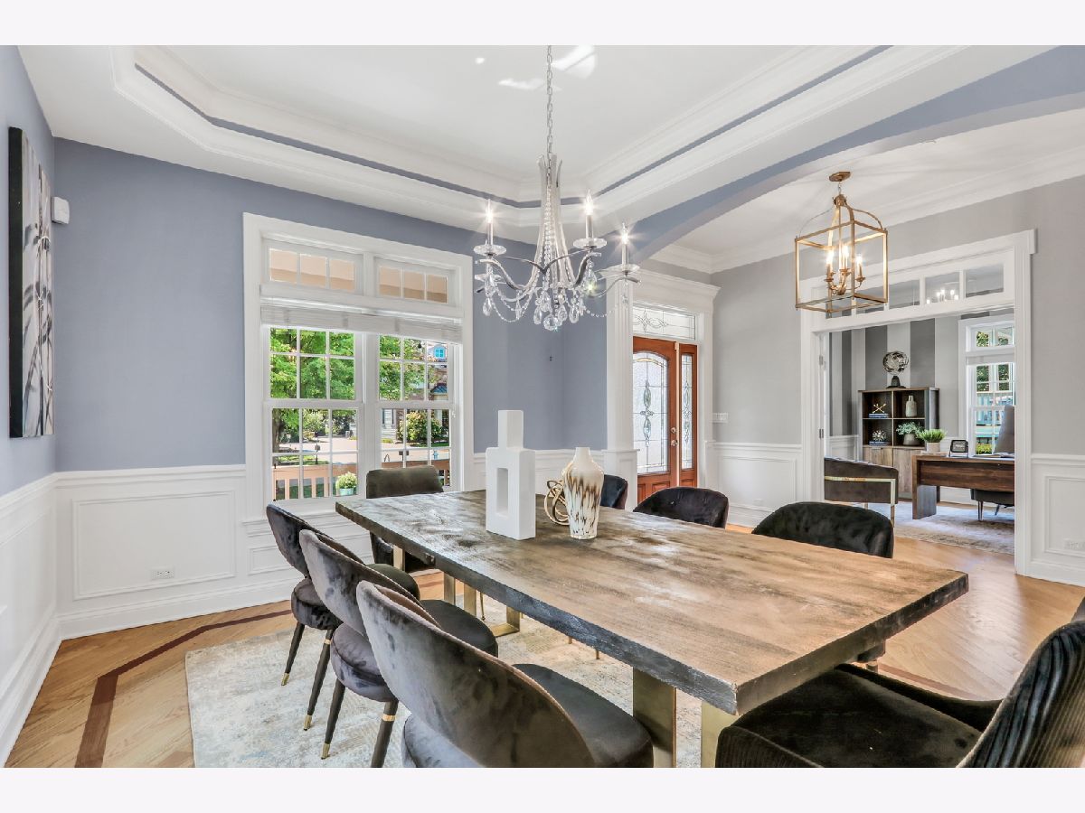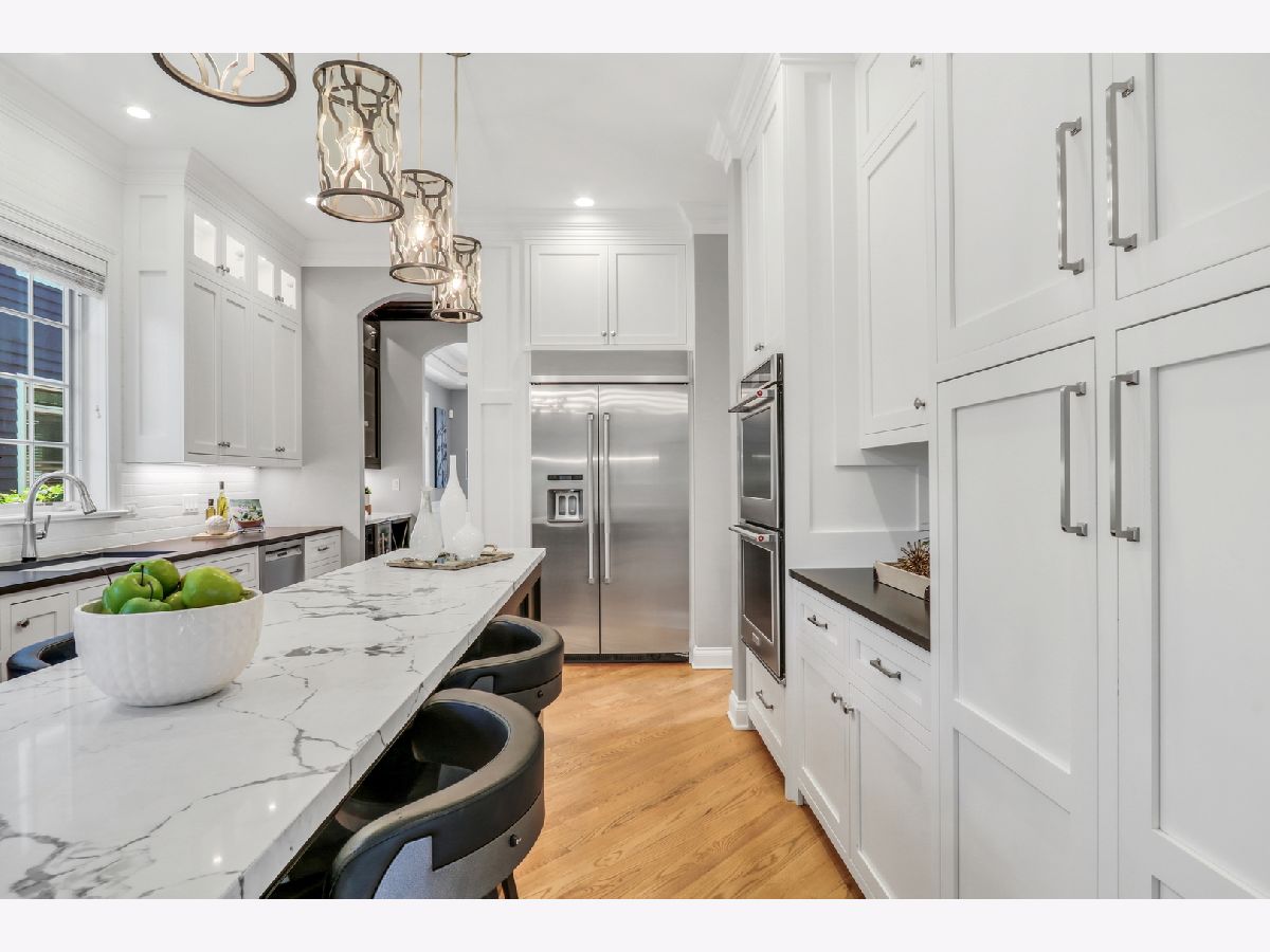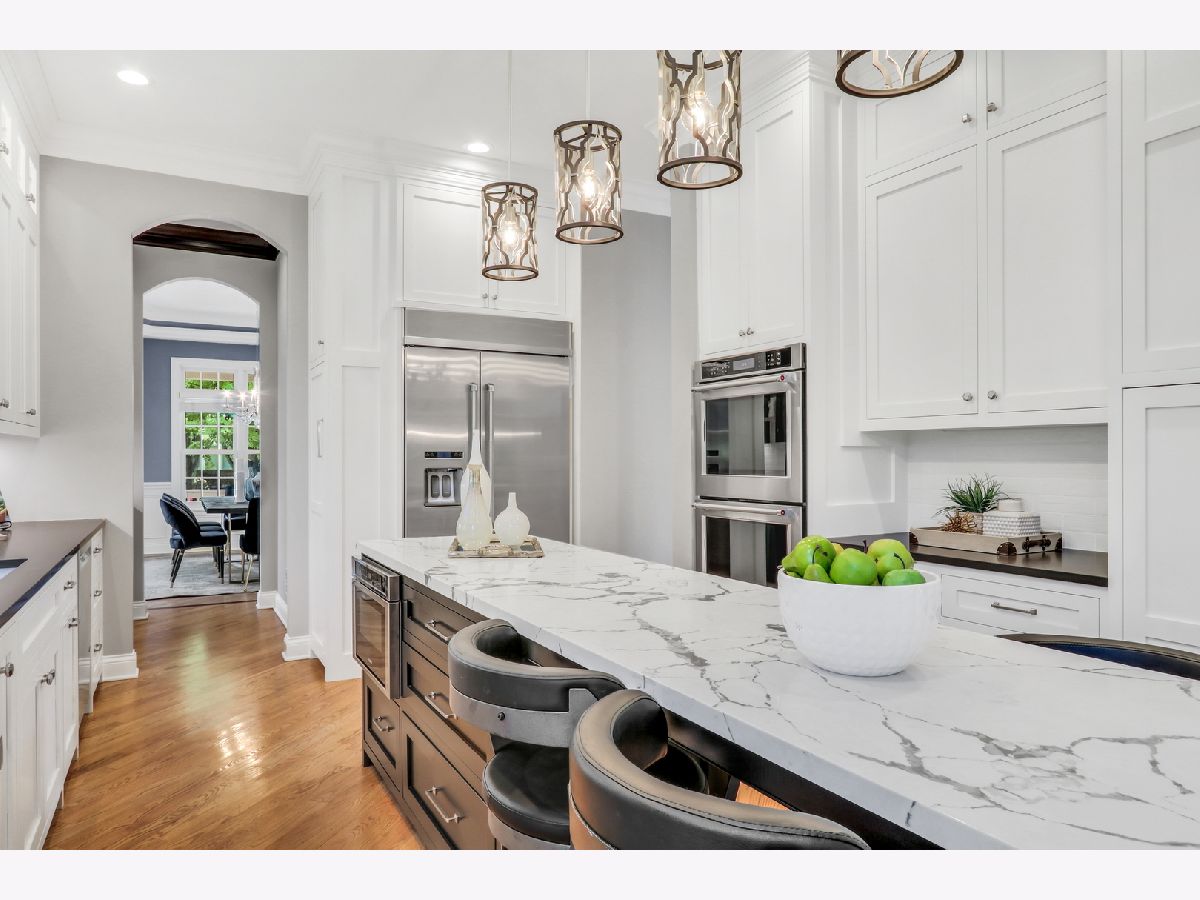WELCOME HOME to this Coveted Libertyville 5 Bedroom, 4.1 Bath Home. Luxury Living Meets Ideal Location Get ready to fall in love with this absolutely stunning 5-bedroom, 4.1-bath home, ideally located in one of Libertyville's most desirable neighborhoods. Tucked on a picturesque, tree-lined street just moments from award-winning schools, walking trails, downtown Libertyville, and I-94 access, this home is the perfect blend of sophistication, comfort, and convenience. From the moment you arrive, the home's exceptional curb appeal sets the tone-featuring a charming front porch, freshly painted exterior (2024), and professionally landscaped grounds (2024) that create an inviting first impression. Step inside to discover over 4,000+ sq ft of thoughtfully designed living space, where custom craftsmanship, upscale finishes, and light-filled interiors define every corner. Soaring 10-foot ceilings, rich hardwood floors, intricate millwork, and arched doorways elevate the main level, while a neutral, timeless palette enhances the home's elegant feel. The heart of the home is the kitchen (fully remodeled in 2022 by Lazzaretto Design)-a true chef's dream equipped with a 6-burner Thermador range, Bosch microwave drawer, JennAir refrigerator, quartz countertops, large center island with seating for four, and updated designer lighting (2024). A stylish butler's pantry with beverage fridge adds even more prep and serving space, seamlessly connecting the kitchen to a formal dining room with tray ceiling, crown molding, and wainscoting detail-perfect for hosting elegant gatherings. The open-concept breakfast room with coffered ceiling flows beautifully into a cozy family room featuring custom built-ins, recessed lighting, and a warm gas fireplace. For those who work remotely or need a quiet retreat, a main-floor office with French doors and transom windows offers privacy and elegance. Nearby, the generous mudroom/laundry area includes built-in cubbies, cabinetry, and a newer washer/dryer (2018) to keep your everyday organized and effortless. Upstairs, you'll find four spacious bedrooms and three full baths, all thoughtfully updated and beautifully appointed. The luxurious primary suite (renovated in 2023) is a true retreat, featuring a tray ceiling with ambient uplighting, his and her walk-in closets, and a spa-like en suite bathroom. Boasting heated floors, freestanding soaking tub, double vanities and a walk-in shower with bench. Bedroom #2 is a true princess suite boasting a private en suite bath, while bedrooms #3 and #4 are connected by a Jack-and-Jill bath. The fully finished basement (2020) is a multifunctional haven, offering expansive space for entertaining, relaxation, or productivity. Enjoy movie nights by the gas fireplace, stay active in the dedicated gym (treadmill can stay!), or make use of the built-in study/homework zone. A fifth bedroom, full bath, and separate storage room complete this versatile lower level. New carpet (2025) ensures the space feels fresh and inviting. Outdoor living is just as impressive-step outside to a large brick paver patio with built-in firepit, perfect for summer evenings or fall gatherings. The deep 3-car garage includes a refrigerator and plenty of storage space. Additional upgrades throughout the home include: HVAC system (2020), sump pump with backup, ADT security wiring, and ALL TVs included. For nature lovers, the neighborhood is just steps from scenic running paths that connect to the Des Plaines River Trail. For families, the area is full of children, and schools are top-rated. For commuters and entertainers, downtown Libertyville-with its charming shops, restaurants, festivals, and Metra station-is just minutes away. This isn't just a house-it's the one you've been waiting for. An impeccably maintained, move-in-ready home in a vibrant, connected community.