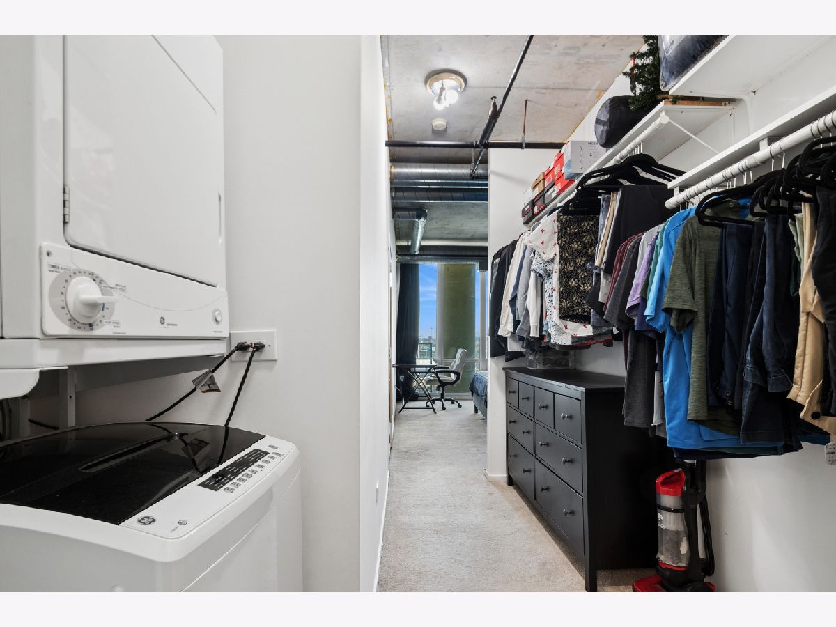 Well-maintained 1 bed + den/1.5 bath concrete loft at Platinum Tower. The unit features an open floor plan, guest powder room, tall ceilings, south-facing floor to ceiling windows in living area and bedroom, and a large private balcony. Bedroom features a walk-through closet with in-unit laundry leading to the ensuite bath. Assigned garage parking space included in price. Investor friendly building with no rental cap. Easy access to expressways, public transportation, H-Mart, Mariano's, Greektown, Little Italy, and all that West Loop has to offer.