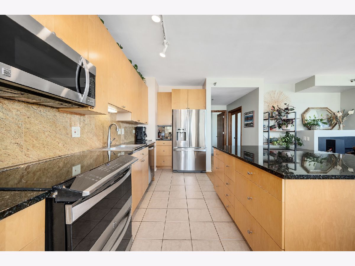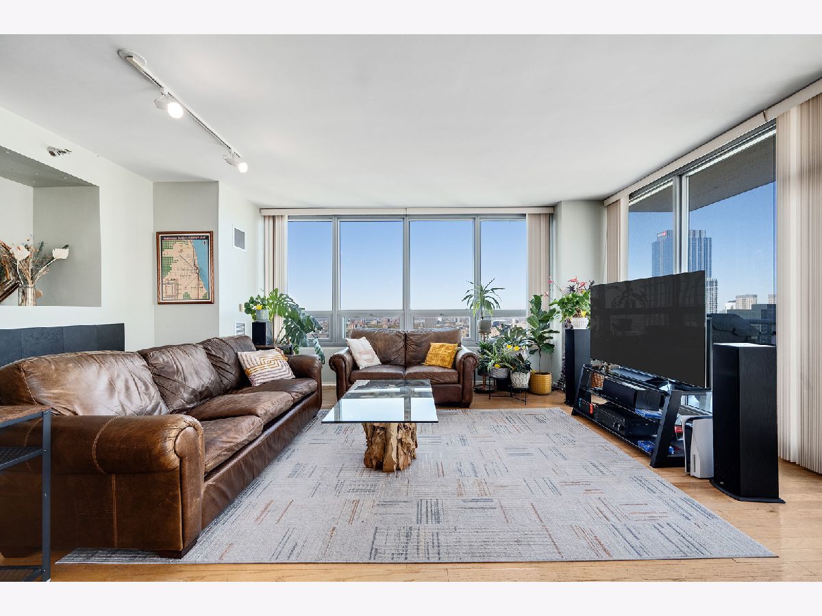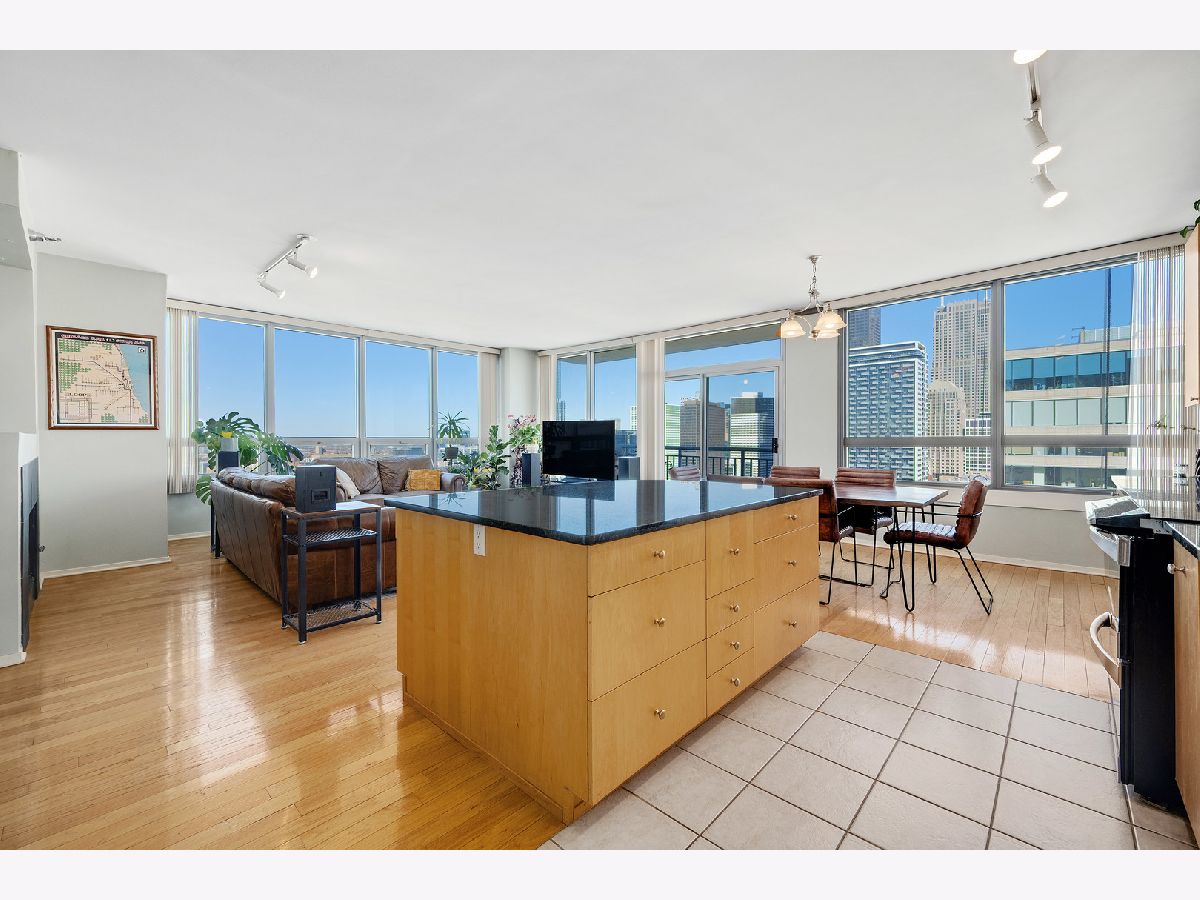 Stunning 30th-Floor corner condo with panoramic lake, river & skyline views. Perched high above the city, this sophisticated 30th-floor corner residence offers breathtaking, wraparound views of the lake, river, and iconic skyline. Walls of windows flood the space with natural light and frame the ever-changing beauty of Chicago's horizon-perfectly complemented by a cozy gas fireplace for relaxing evenings in. Designed with distinction, the layout features a true wall separating the kitchen from the hall and sleek, skim-coated ceilings-no exposed ductwork in sight. The stylish kitchen showcases an oversized island with a built-in wine rack, extended quartz counters, and abundant cabinetry for extra storage. Step onto the private balcony and savor one of the best vistas in the city. Enjoy the everyday luxury of a full-size washer and dryer (not stackable!) and the ease of an oversized prime deeded parking space included with the home. This pet-friendly building delivers resort-style amenities-on-site management, a 24-hour door staff, fitness and yoga rooms, a business center, and more. Monthly assessments conveniently include water, gas, heat, A/C, cable, and internet for a truly turn-key lifestyle. Located in a vibrant, walkable neighborhood, you're just steps from the train, the British International School, Willis Tower, world-class dining, shopping, and the sparkling shores of Lake Michigan. Welcome home to luxury, light, and skyline views that never get old.