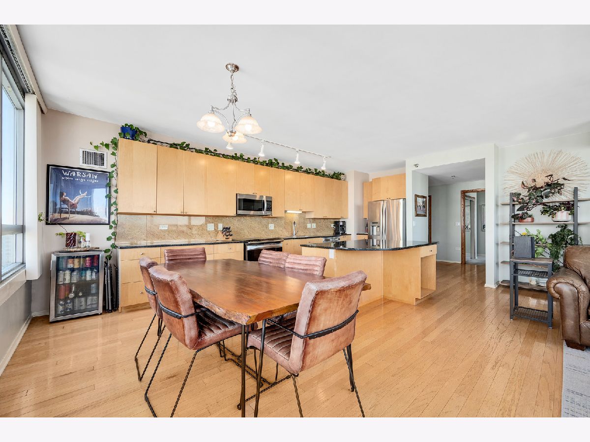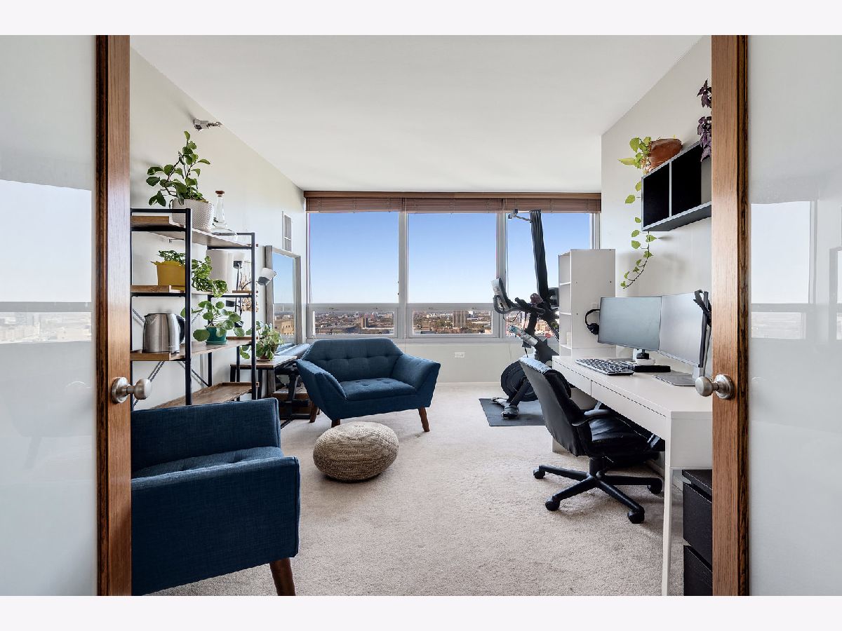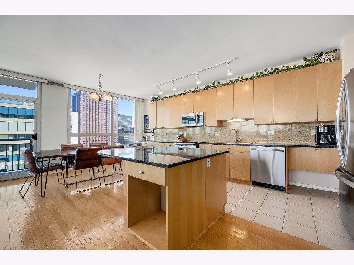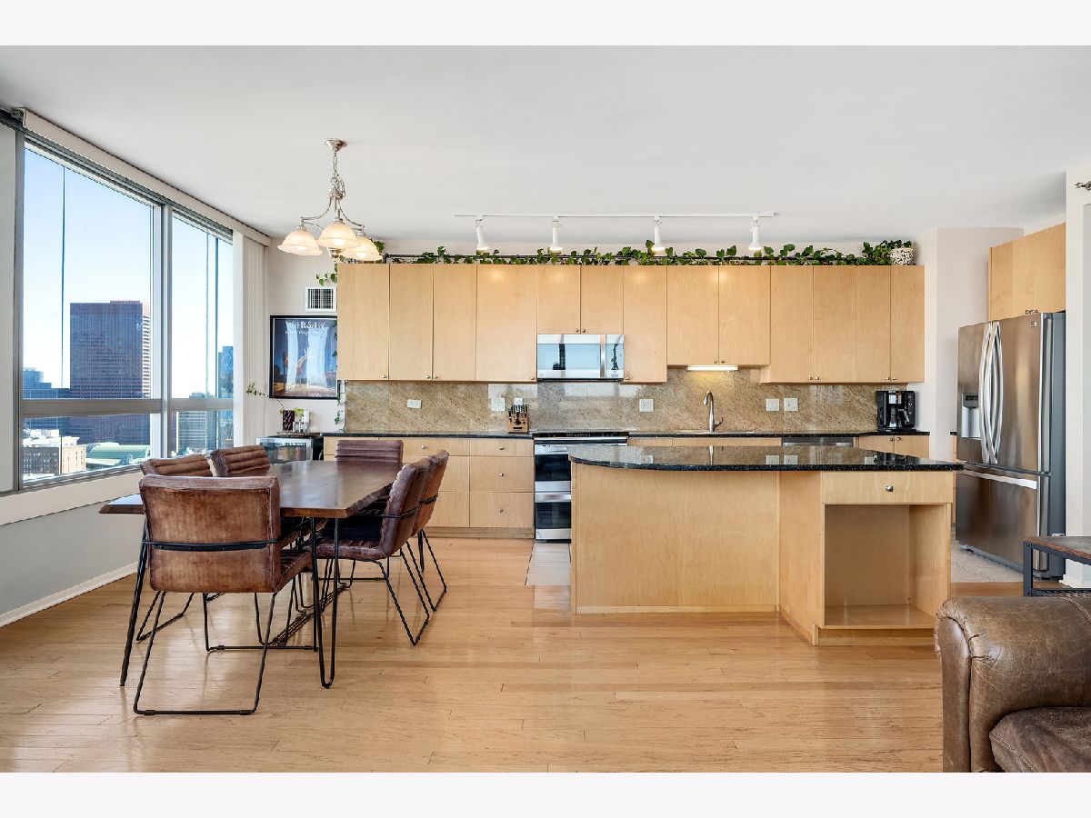 Stunning 30th-Floor corner condo with panoramic lake, river & skyline views. Perched high above the city, this sophisticated 30th-floor corner residence offers breathtaking, wraparound views of the lake, river, and iconic skyline. Walls of windows flood the space with natural light and frame the ever-changing beauty of Chicago's horizon-perfectly complemented by a cozy gas fireplace for relaxing evenings in. Designed with distinction, the layout features a true wall separating the kitchen from the hall and sleek, skim-coated ceilings-no exposed ductwork in sight. The stylish kitchen showcases an oversized island with a built-in wine rack, extended quartz counters, and abundant cabinetry for extra storage. Step onto the private balcony and savor one of the best vistas in the city. Enjoy the everyday luxury of a full-size washer and dryer (not stackable!) and the ease of an oversized prime deeded parking space included with the home. This pet-friendly building delivers resort-style amenities-on-site management, a 24-hour door staff, fitness and yoga rooms, a business center, and more. Monthly assessments conveniently include water, gas, heat, A/C, cable, and internet for a truly turn-key lifestyle. Located in a vibrant, walkable neighborhood, you're just steps from the train, the British International School, Willis Tower, world-class dining, shopping, and the sparkling shores of Lake Michigan. Welcome home to luxury, light, and skyline views that never get old.