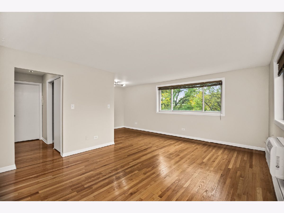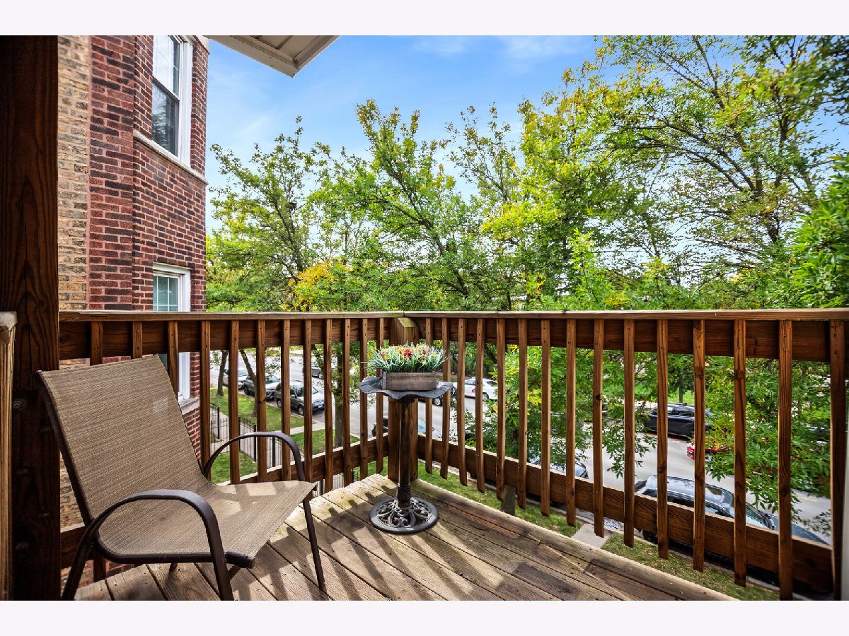 Welcome to this sunny, top-floor, one-bedroom end unit featuring a spacious living room with two walls of giant windows with tree-top and courtyard views, hardwood floors throughout, and a bright kitchen with maple cabinets adjacent to the L-shaped dining area. Enjoy generous closet space and a back deck. Additional amenities include coin laundry and a storage locker in the basement, plus assigned parking space #3. The building sits back from Ridge on a large landscaped lawn. Ideally located just 2.5 blocks to the Metra, six blocks to the Morse Red Line and neighborhood restaurants, and less than a mile from Loyola Beach. It's a win-win all around!