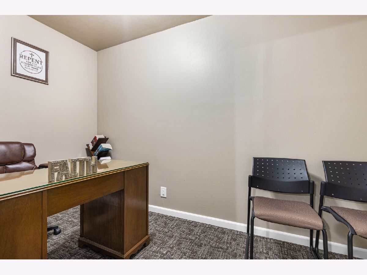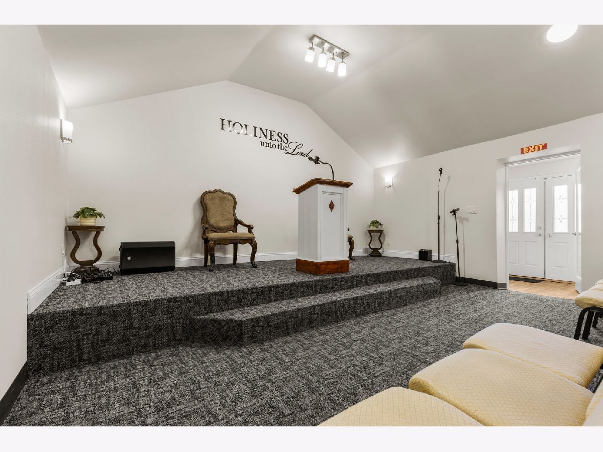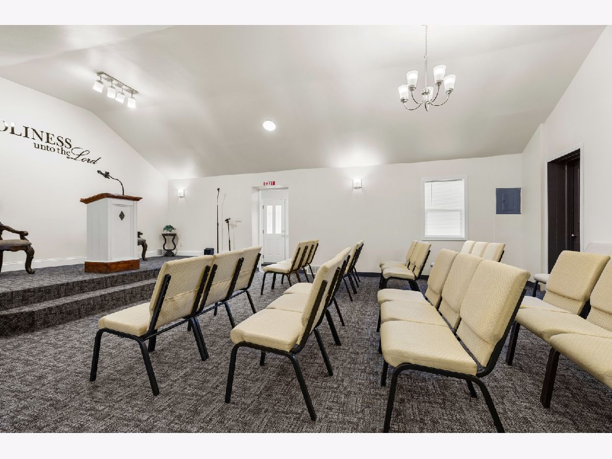 This unique property is zoned R-1 and was most recently used as a church, though it was originally a residence. Conversion back to a single-family home is possible with required city permits. Beautifully remodeled throughout, the building features a spacious gathering room with a stage, vaulted ceiling, and brand-new carpet, comfortably seating approximately 30 people. All chairs are included. Additional features include a galley-style kitchen equipped with a refrigerator, gas stove, and microwave, as well as two office rooms ideal for administrative use. The property offers two half bathrooms and is equipped with a brand-new furnace and water heater. Situated on a large corner lot spanning two parcels, the property also includes central air conditioning, 100-amp electrical service, a Nest thermostat, new front doors, and a Ring security system-all of which will stay with the property. Freshly painted throughout. A truly distinctive opportunity with flexibility for future use.