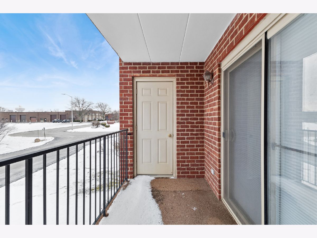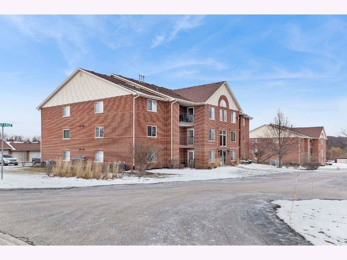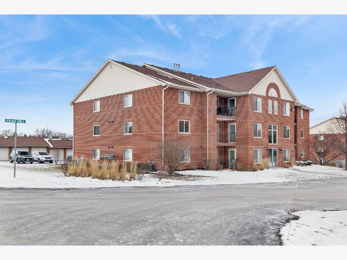 Welcome home to this well-maintained 2-bedroom, 2-bath condo in the desirable Heritage Circle community. This second-floor unit offers approximately 1,200 square feet of comfortable living space with an open layout, wood laminate flooring, and abundant natural light. The spacious kitchen features table-space dining and ample cabinetry, opening to a large living room ideal for entertaining. The primary bedroom includes a full en-suite bath, while the second bedroom is generously sized with easy access to the hall full bath. Enjoy the convenience of in-unit laundry, a private balcony, storage and a detached garage space included in the price. Solid brick construction, low monthly assessments that cover water, exterior maintenance, lawn care, snow removal, and insurance make this an easy, low-maintenance option. Pet friendly (dogs and cats welcome, 25-lb limit).