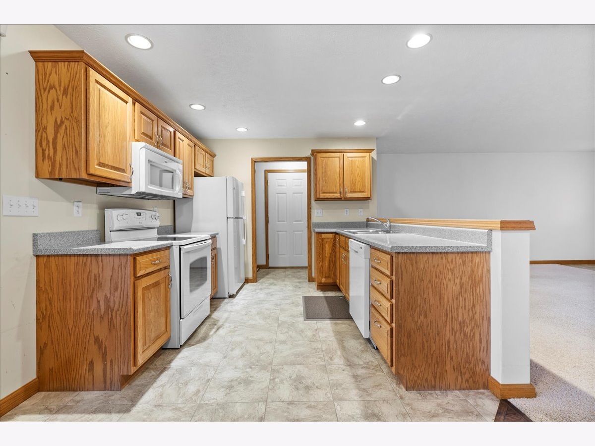 Well-Maintained Ranch-Style Zero-Lot Home in Kingwood Subdivision! Step inside to an open floor plan featuring a spacious, carpeted living room that flows into a large kitchen. The kitchen offers oak cabinets, Formica countertops, an island, a full appliance package (oven/stove, microwave, dishwasher, refrigerator), recessed lighting, and a convenient pantry closet. The dining area sits just off the kitchen with a ceiling fan and sliding door leading to the covered back patio. Throughout the home, you'll find oak trim, 6-panel doors, and casement windows. The primary suite features cozy carpeting, double closets, and an attached full bath with a tub/shower combination. A generous second bedroom-also carpeted-includes its own set of double closets. The main hall bath features a low-step walk-in shower and a linen closet for extra storage. Additional features include a hallway with Berber carpet and handrails, a laundry room with upper cabinets and a new washer and dryer (2025), plus several extra storage closets for utility items and more. Enjoy beautiful sunrises and sunsets from both the covered front porch and the covered back patio. The home sits on a nicely landscaped lot with attractive front and backyard plantings. Rounding out the property is an extra-deep 1-car attached garage with a walking ramp and metal storage shelving. A generator (2012) is also included for peace of mind. This comfortable, easy-living home is ready for its next owner!