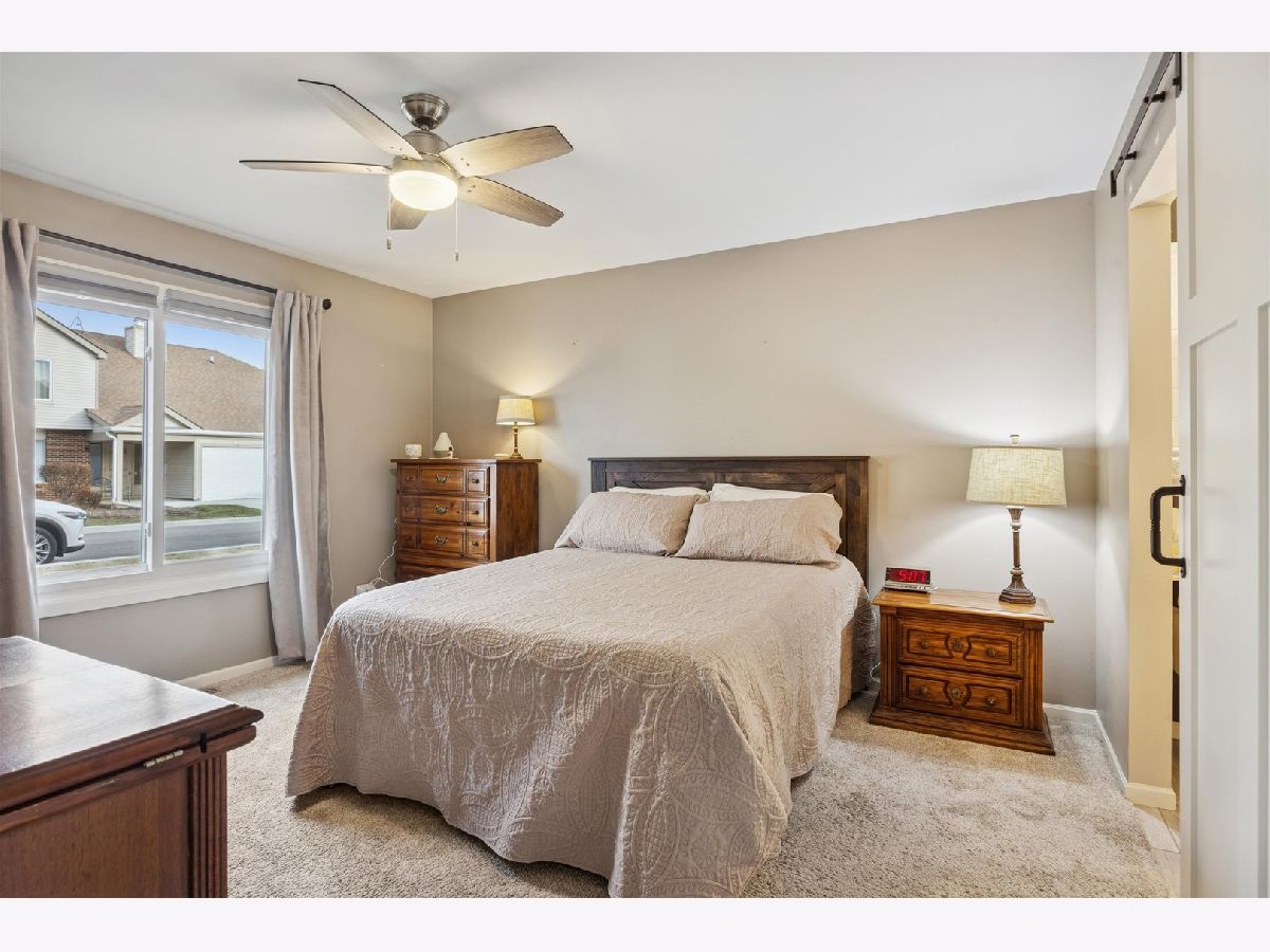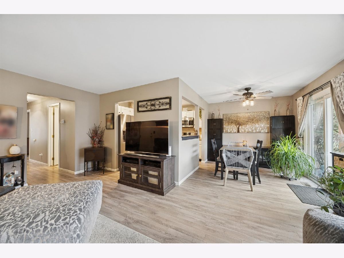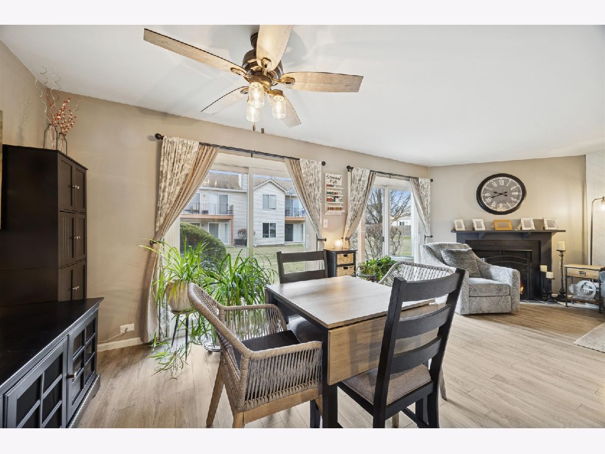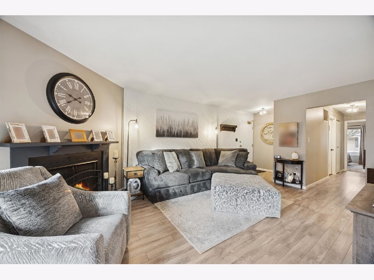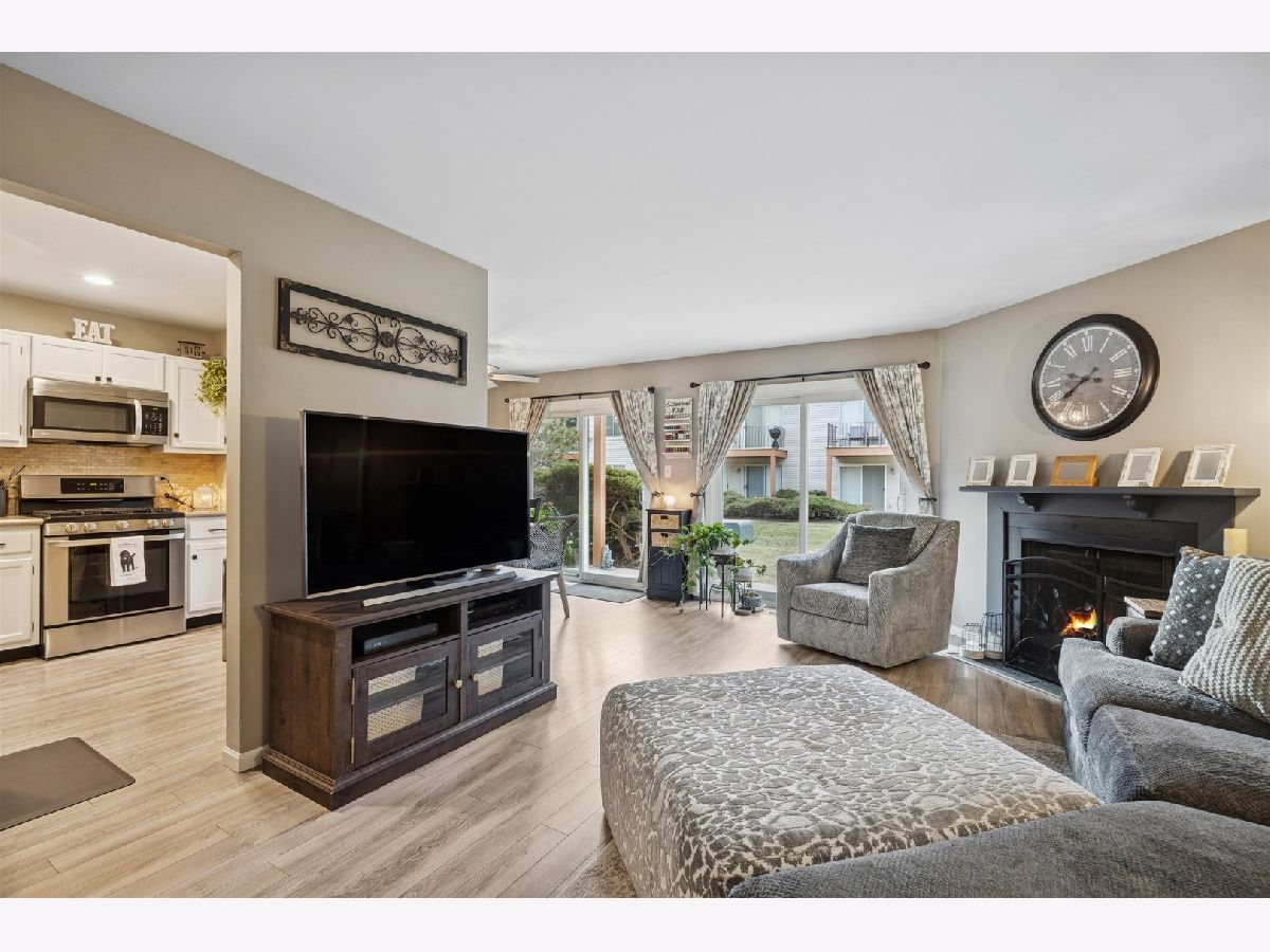 Great location for this beautifully renovated first-floor condo in the desirable Park Lane Subdivision. The living and dining areas are filled with natural light from sliding glass doors and centered around a cozy gas fireplace. The sunny kitchen features newer stainless steel appliances and solid surface countertops. The primary bedroom is generously sized and includes a barn door, a private vanity with direct access to the full bath. You'll appreciate the recent updates, including kitchen appliances, a newer furnace, air conditioner, water heater, washer and dryer, and windows. Step outside to your patio overlooking a peaceful open common area. The attached, private one-car garage is ideally located, and true first-floor living adds everyday convenience. The building is pet-friendly and investor-friendly. Set in the heart of Woodridge, this home is just minutes from parks, walking trails, shopping, dining, and major expressways, making daily life and commuting simple. Rentals are allowed with no rental cap. A comfortable, low-maintenance home in a great location. Immaculate condition and truly move-in ready!