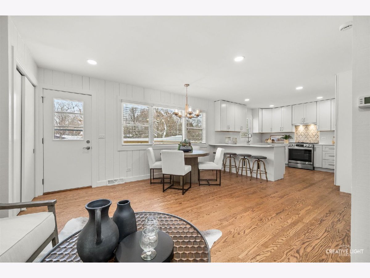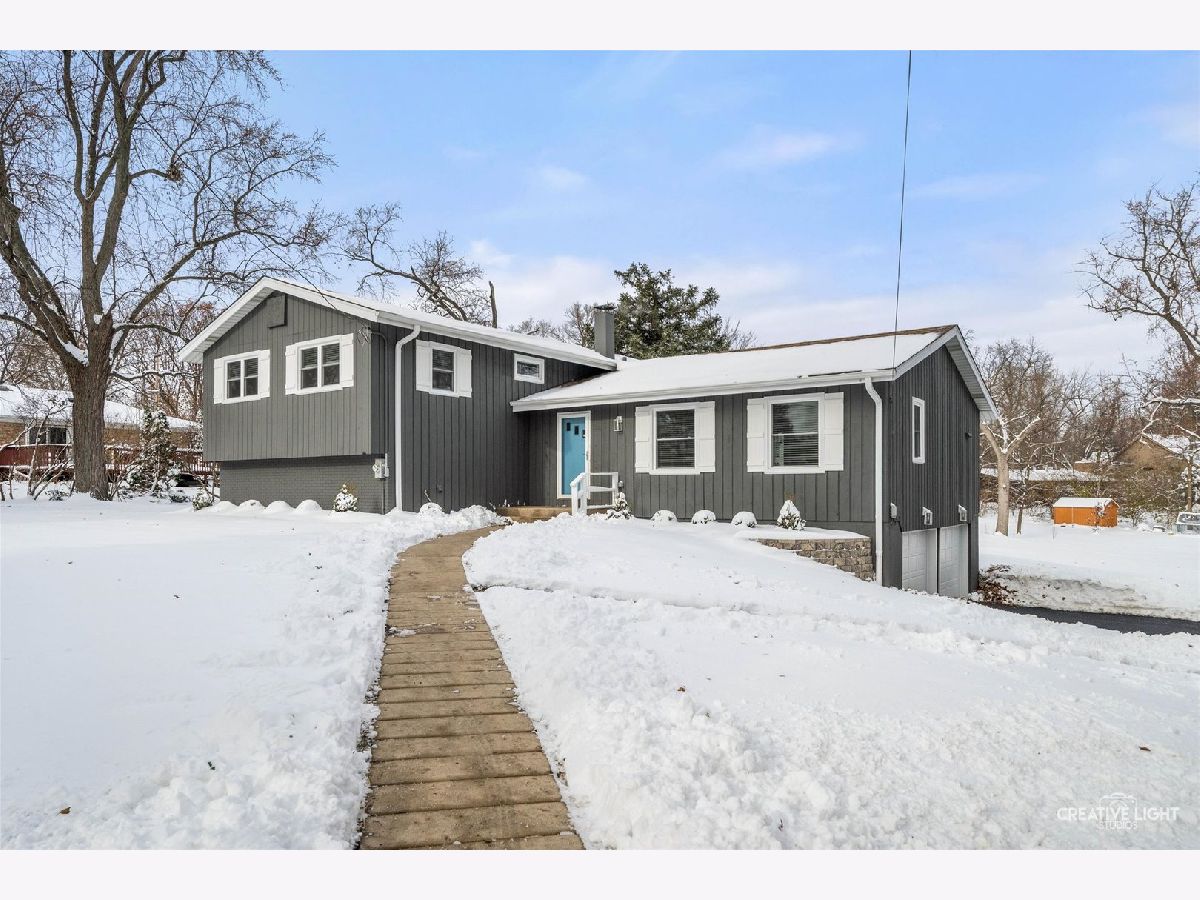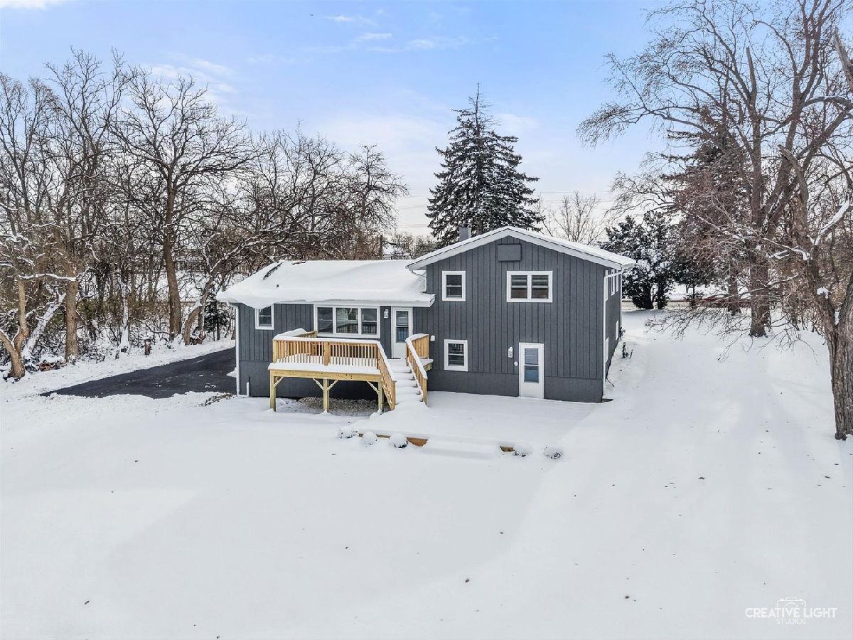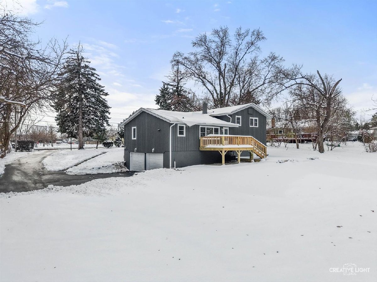 Freshly renovated and move-in ready, this Bruce Lake split level sits on a deep 0.71 acre lot in unincorporated Downers Grove with a two tier deck, and oversized 28 x 25 attached garage. The freshly stained charcoal gray exterior, new landscaping, foundation plantings, and new driveway set the stage for the 2025 interior renovation. Inside, the main level offers a bright living room and sitting area, refinished and seamlessly matched hardwood floors, and a dining area that overlooks the expansive yard. The light and bright kitchen is a chef's dream, featuring 42 inch Shaker cabinetry with pantry and pullout storage and a peninsula with seating for four. Quartz counters and a full height quartz backsplash with mosaic accent create a polished look, paired with stainless LG French door refrigerator, LG dishwasher, 5 burner gas range with vent hood, and Sharp microwave drawer. A double bowl sink with Insinkerator disposal and recessed lighting complete this well-designed workspace. Upstairs you will find four generous bedrooms with refinished hardwoods, new trim, 2025 windows with blinds, and remote controlled ceiling fandeliers. The spa-style primary bath features all new finishes, including a step-in shower with glass door and a private water closet. The stylish hall bath is fully updated with a new tub/shower, tile, and fixtures, while the lower-level bath offers new fixtures and the original step-in shower. The finished walkout lower level adds a comfortable family room and flex space, luxury vinyl plank flooring, and a finished laundry room. From this level you step directly out to the lower deck, approximately 25 x 24, which connects by stairs to an upper deck of approximately 20 x 12 off the kitchen sitting area, creating a true extension of the living space for outdoor dining, relaxing, and enjoying the yard. Recent mechanical and system updates include all new windows in 2025, a newer asphalt shingle roof with updated soffits and buried downspouts, 2024 air conditioner, brand new 2025 water heater, new water softener, and an updated 100 amp electric panel. Additional features include a Carrier furnace, whole house fan, and private well and septic with a newly installed riser for improved access. The sump pump is located in the oversized garage, which also offers abundant storage and potential workspace. Set on a generous lot, this home enjoys a large tree buffer along the east side that provides excellent privacy and a peaceful natural backdrop. The property is only partially in a flood zone, limited to a portion of the back yard. In the Bruce Lake subdivision, residents enjoy Bruce Lake amenities including a residents-only beach, sand volleyball, fishing, seasonal ice skating when conditions allow, and neighborhood social activities. The location is very convenient, with Prairieview Elementary and Lakeview Junior High just across Plainfield Road, as well as easy access to McCollum Park, downtown Downers Grove, and the Metra. Nearby amenities include Route 83 into Oak Brook for shopping and dining, the Promenade Bolingbrook, and 75th Street conveniences such as Dunkin Donuts for morning coffee and a variety of nearby dining options. A video tour and detailed floor plans are available in the MLS listing so you can see how well this home lives before you visit in person.