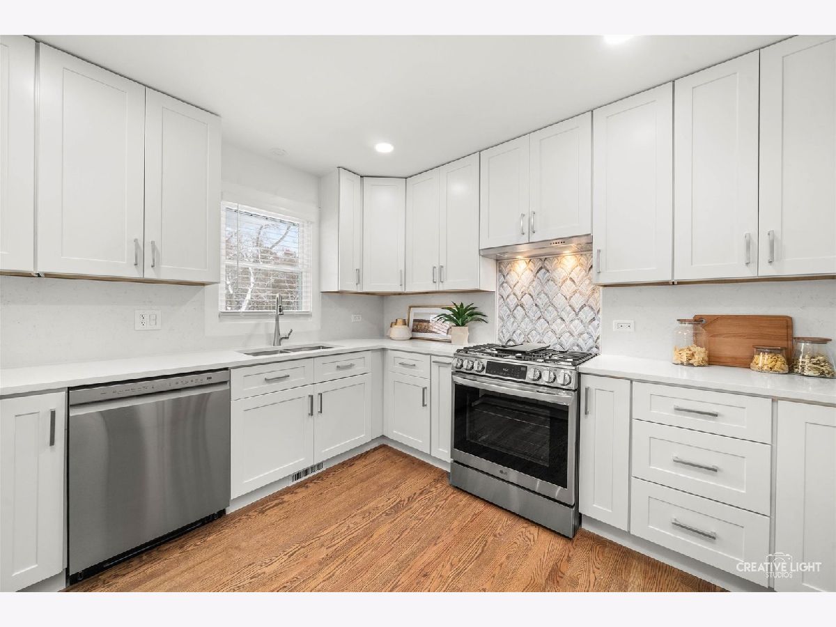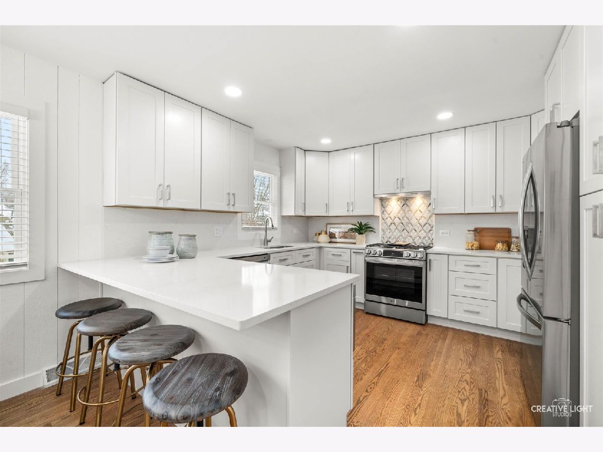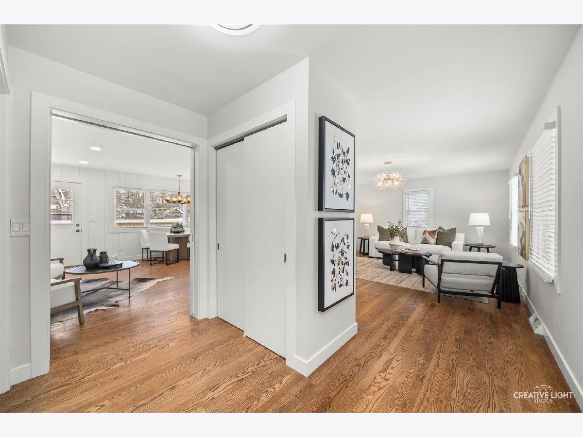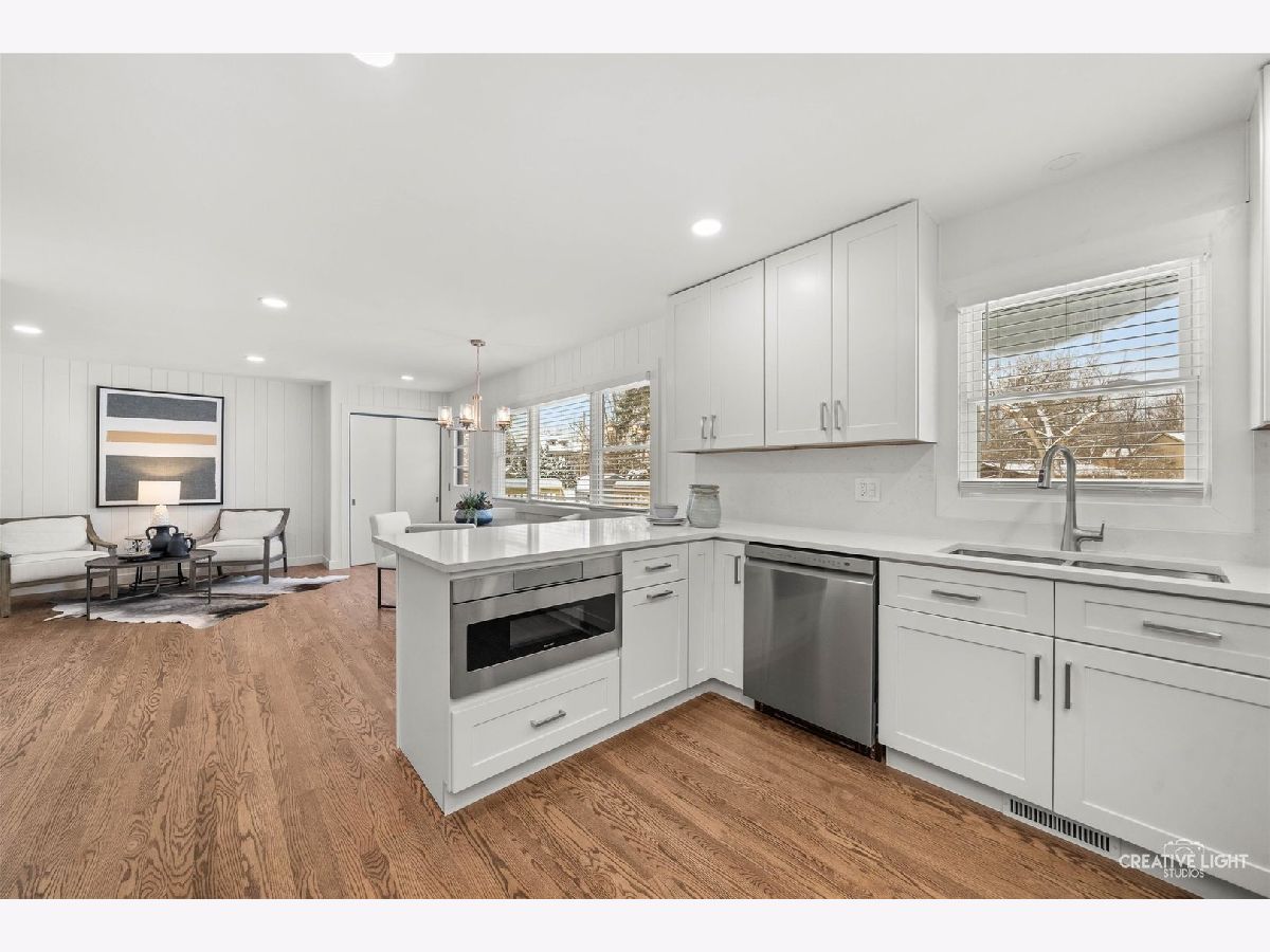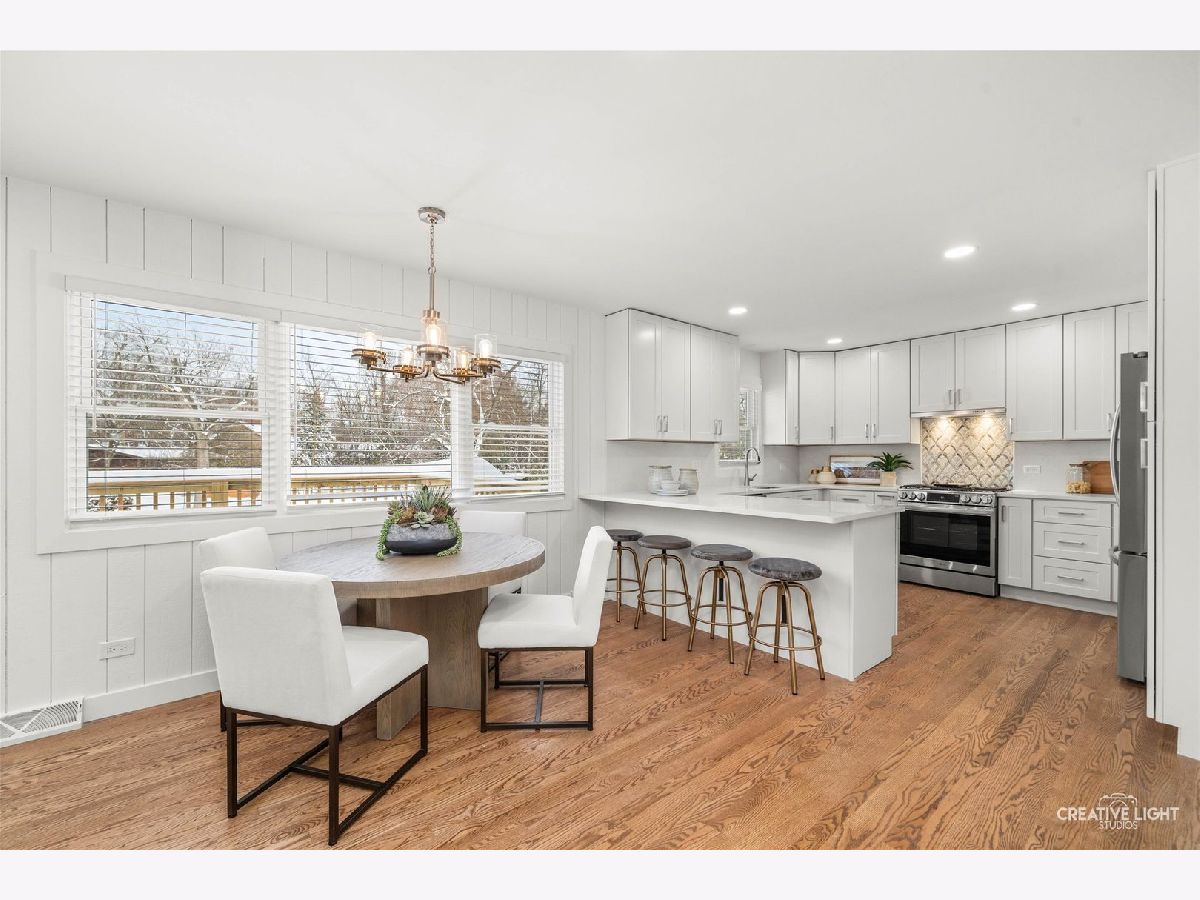 Freshly renovated and move-in ready, this Bruce Lake split level sits on a deep 0.71 acre lot in unincorporated Downers Grove with a two tier deck, and oversized 28 x 25 attached garage. The freshly stained charcoal gray exterior, new landscaping, foundation plantings, and new driveway set the stage for the 2025 interior renovation. Inside, the main level offers a bright living room and sitting area, refinished and seamlessly matched hardwood floors, and a dining area that overlooks the expansive yard. The light and bright kitchen is a chef's dream, featuring 42 inch Shaker cabinetry with pantry and pullout storage and a peninsula with seating for four. Quartz counters and a full height quartz backsplash with mosaic accent create a polished look, paired with stainless LG French door refrigerator, LG dishwasher, 5 burner gas range with vent hood, and Sharp microwave drawer. A double bowl sink with Insinkerator disposal and recessed lighting complete this well-designed workspace. Upstairs you will find four generous bedrooms with refinished hardwoods, new trim, 2025 windows with blinds, and remote controlled ceiling fandeliers. The spa-style primary bath features all new finishes, including a step-in shower with glass door and a private water closet. The stylish hall bath is fully updated with a new tub/shower, tile, and fixtures, while the lower-level bath offers new fixtures and the original step-in shower. The finished walkout lower level adds a comfortable family room and flex space, luxury vinyl plank flooring, and a finished laundry room. From this level you step directly out to the lower deck, approximately 25 x 24, which connects by stairs to an upper deck of approximately 20 x 12 off the kitchen sitting area, creating a true extension of the living space for outdoor dining, relaxing, and enjoying the yard. Recent mechanical and system updates include all new windows in 2025, a newer asphalt shingle roof with updated soffits and buried downspouts, 2024 air conditioner, brand new 2025 water heater, new water softener, and an updated 100 amp electric panel. Additional features include a Carrier furnace, whole house fan, and private well and septic with a newly installed riser for improved access. The sump pump is located in the oversized garage, which also offers abundant storage and potential workspace. Set on a generous lot, this home enjoys a large tree buffer along the east side that provides excellent privacy and a peaceful natural backdrop. The property is only partially in a flood zone, limited to a portion of the back yard. In the Bruce Lake subdivision, residents enjoy Bruce Lake amenities including a residents-only beach, sand volleyball, fishing, seasonal ice skating when conditions allow, and neighborhood social activities. The location is very convenient, with Prairieview Elementary and Lakeview Junior High just across Plainfield Road, as well as easy access to McCollum Park, downtown Downers Grove, and the Metra. Nearby amenities include Route 83 into Oak Brook for shopping and dining, the Promenade Bolingbrook, and 75th Street conveniences such as Dunkin Donuts for morning coffee and a variety of nearby dining options. A video tour and detailed floor plans are available in the MLS listing so you can see how well this home lives before you visit in person.