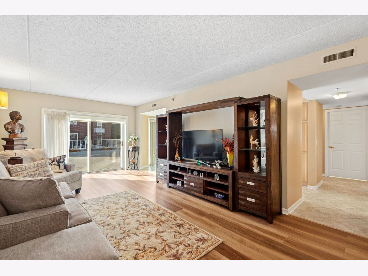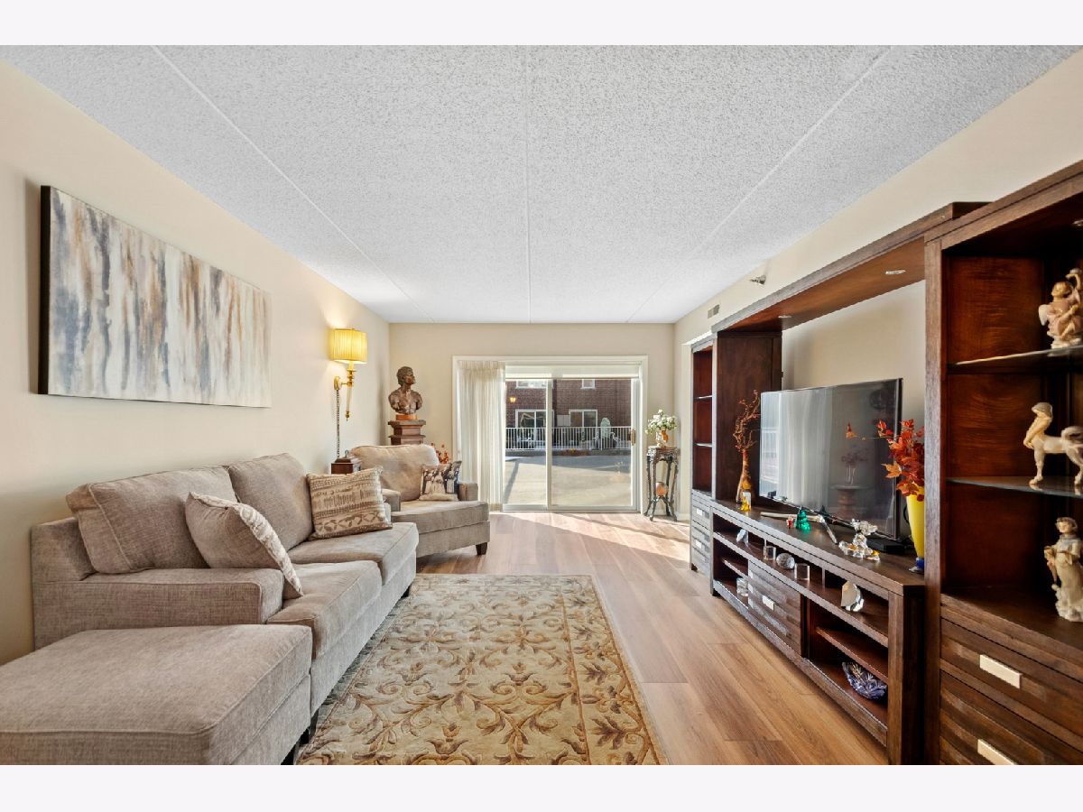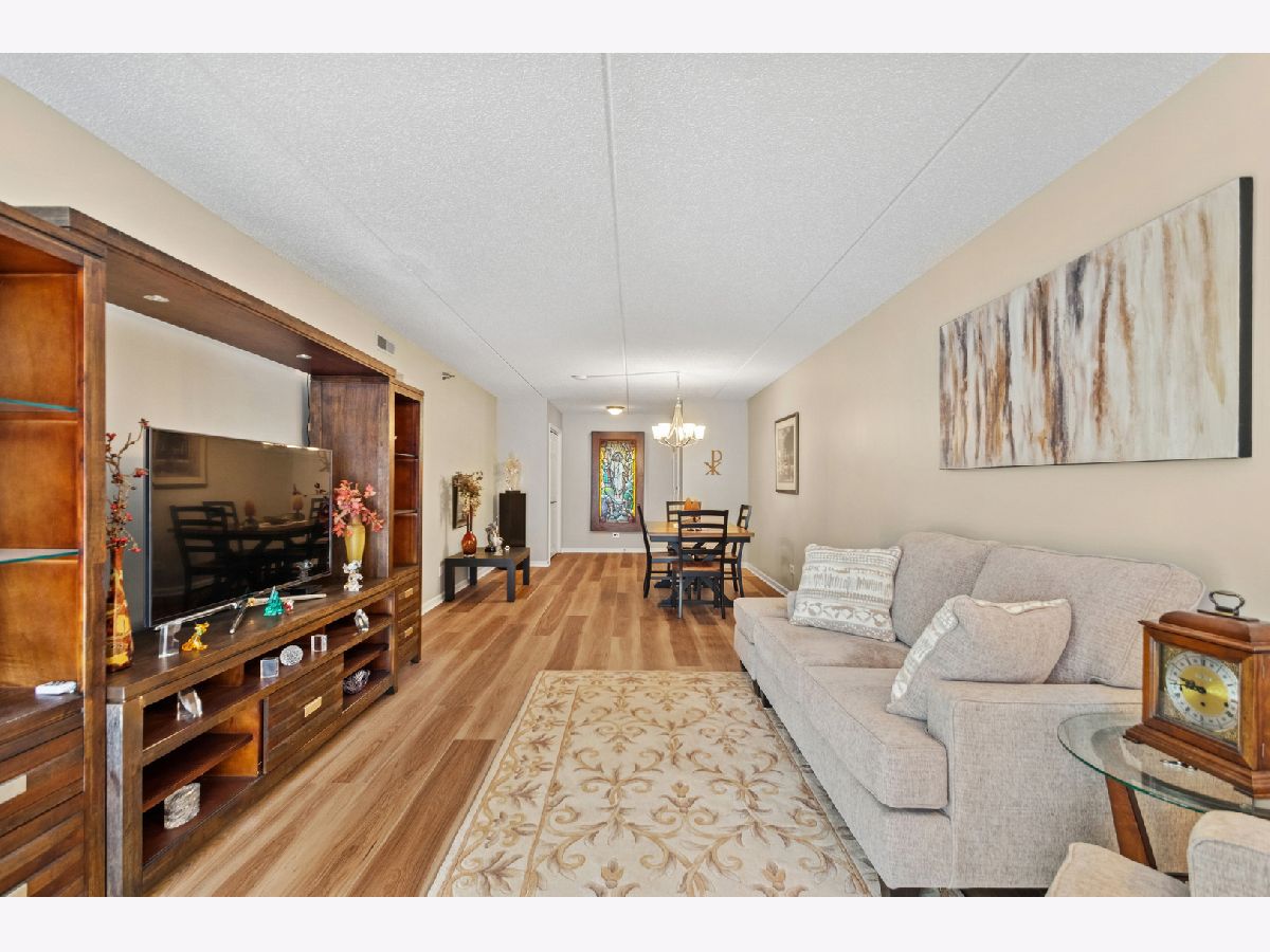Spacious 2 bedroom, 2 bath corner unit is just what you have been looking for! These large terrace units are rarely available Only two per building .It includes two outside balconies. Main balcony is 1452 sq ft, (which is over the parking garage) and the second balcony is 108 sq ft.! (See floor plan.) Plenty of room to entertain, party and grow your potted plants ! Come take a look for yourself ! Beautiful new Matrix Golden Wheat flooring in the large open 12'X31' living/dining area.Freshly painted thru-out entire unit. In unit laundry with full size washer & dryer. Nothing to do but move in and enjoy! Heated garage parking spot #85 is very close to the elevator. There is a large secure storage locker adjacent. This unit faces south and west so there is plenty of sunshine and views of the professionally landscaped grounds and water fountains! Schedule an appointment today! Easy to see!