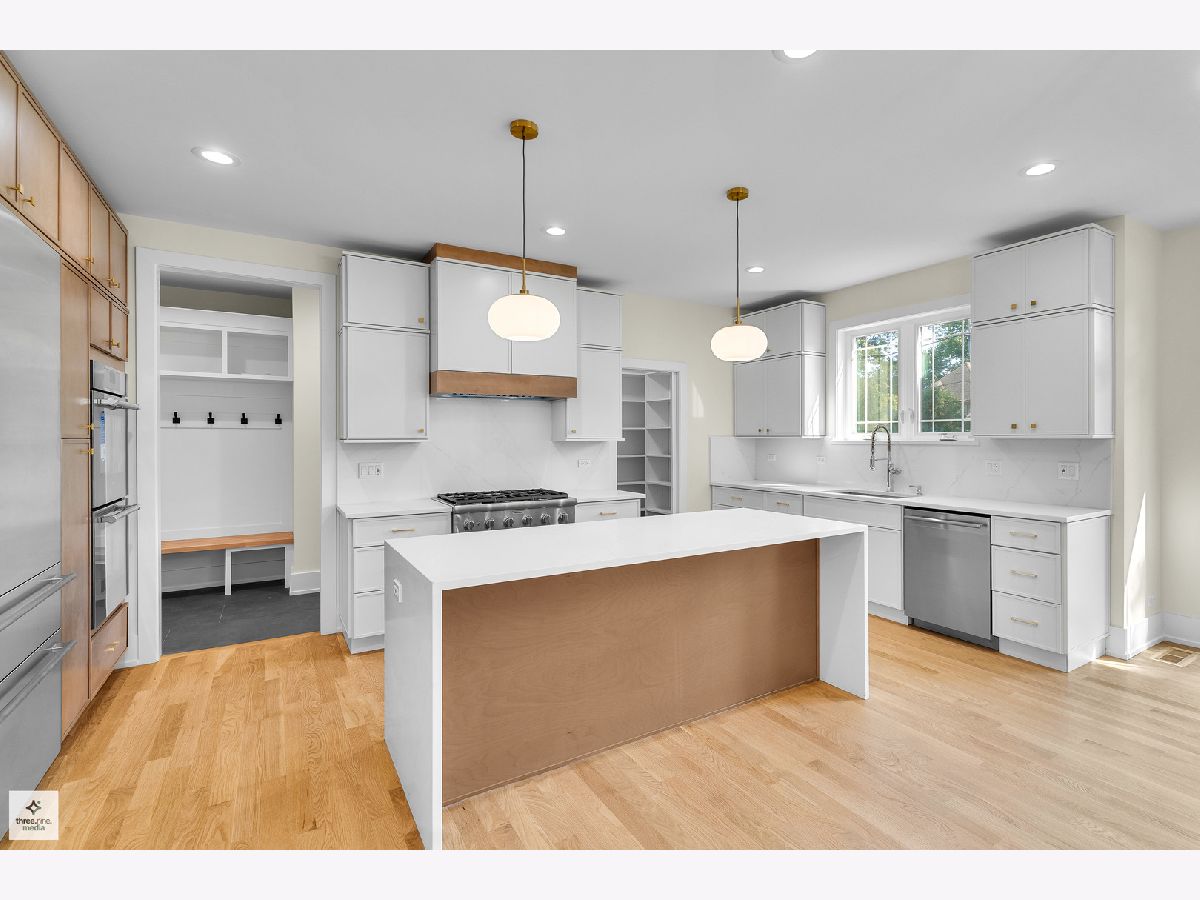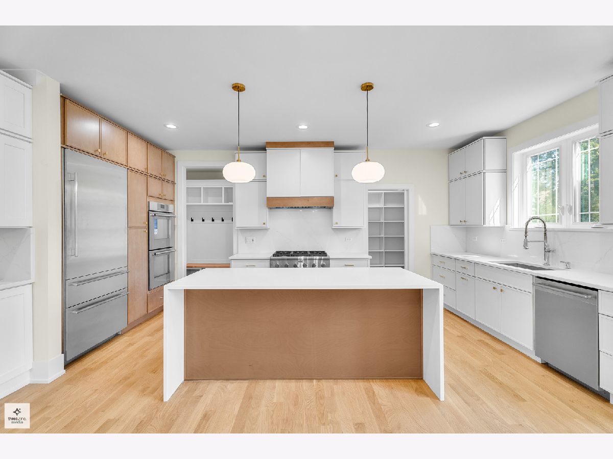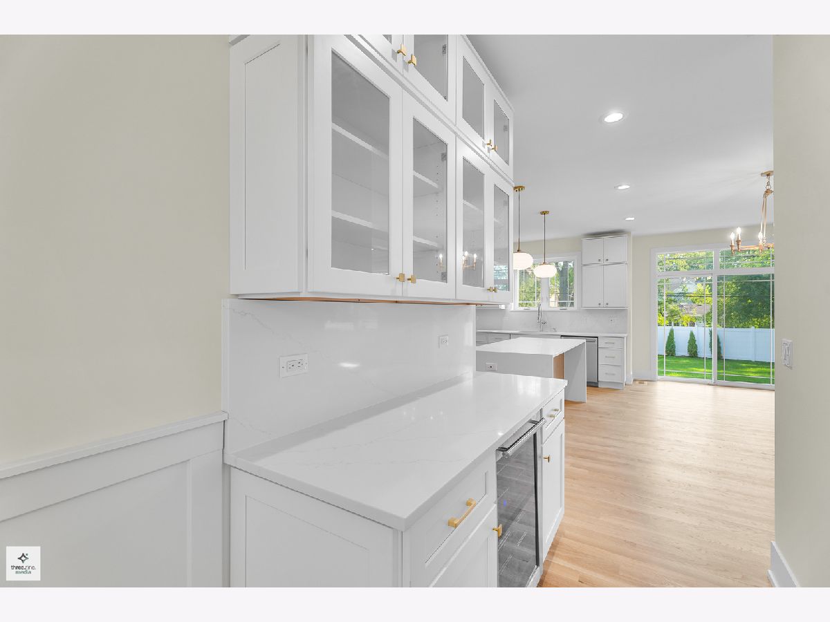 Welcome home! Step into sophistication with this stunning 5-bedroom, 4.5-bath residence, thoughtfully designed to combine modern elegance with everyday comfort. From the moment you enter, you'll be impressed by the open, airy layout enhanced by white oak hardwood flooring throughout the main level. To your left, a formal dining area with an eye-catching chandelier connects seamlessly to the gourmet kitchen through a stylish butler's pantry, complete with a wine refrigerator. The chef's kitchen is outfitted with custom cabinetry, quartz waterfall island, and top-of-the-line Thermador appliances, including a range-top, double ovens, and more. A large walk-in pantry sits just behind the kitchen. The kitchen flows effortlessly into a bright family room centered around a sleek gas fireplace. Sliding glass doors extend the living space outdoors to a beautifully landscaped and fenced backyard, perfect for relaxing or entertaining. An office is conveniently located near the front entrance. The second floor offers four bedrooms, including a luxurious primary suite with vaulted ceilings, spa-like bath with dual vanities, freestanding tub, and a nice size shower. A huge walk-in closet is conveniently accessible from the bathroom. The second bedroom includes a private bath, while bedrooms three and four are joined by a Jack-and-Jill bathroom. A laundry room is also located on the second floor for added convenience. The fully finished basement expands the living space with a stylish wet bar, an additional bedroom, a full bathroom, and a flexible bonus room ideal for a gym or office. This home combines thoughtful design, high-end finishes, and exceptional craftsmanship, offering the perfect blend of comfort and elegance. Situated only minutes from highly regarded Glenview schools, neighborhood parks such as Crowley and Flick, several golf courses, shopping, dining, and convenient expressway access, this home offers the perfect balance of style, practicality, and location. Discover the finest of Glenview living!