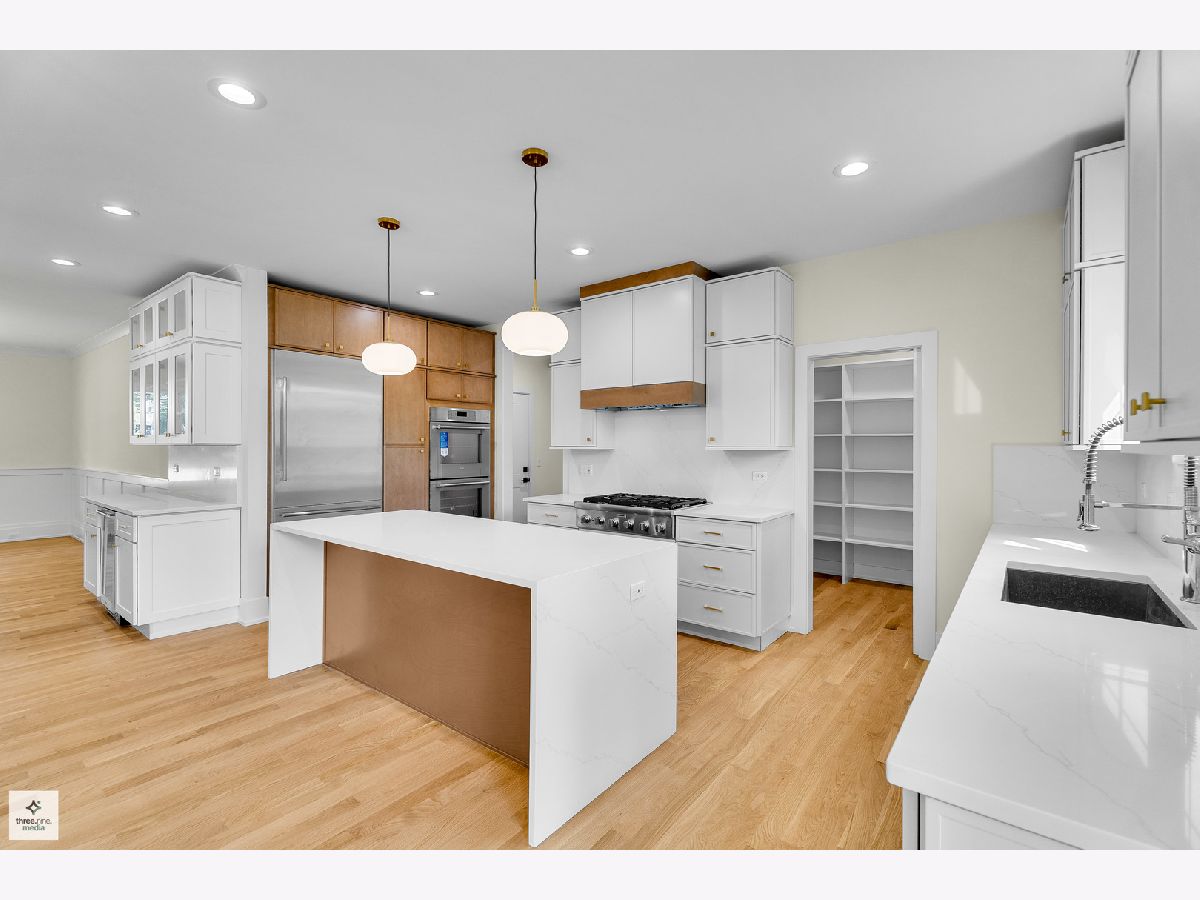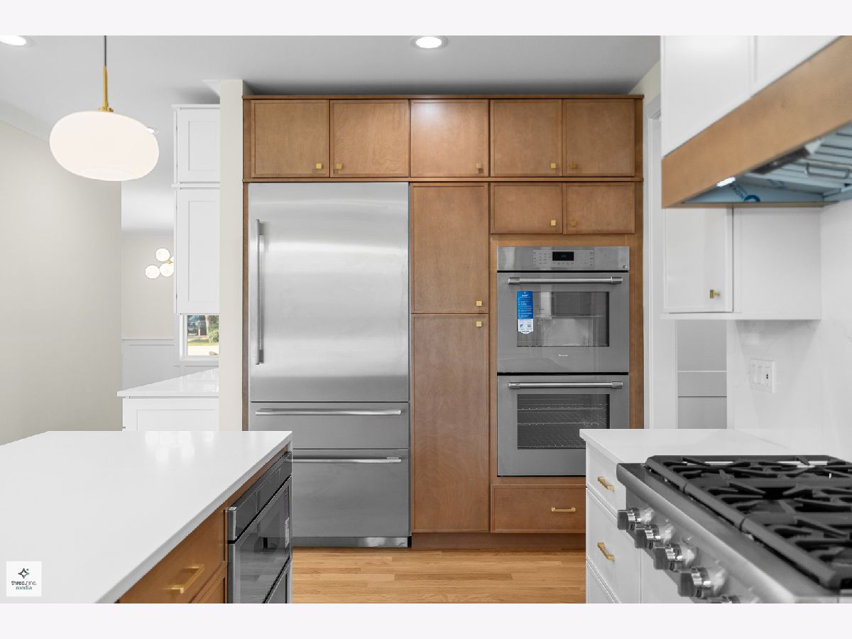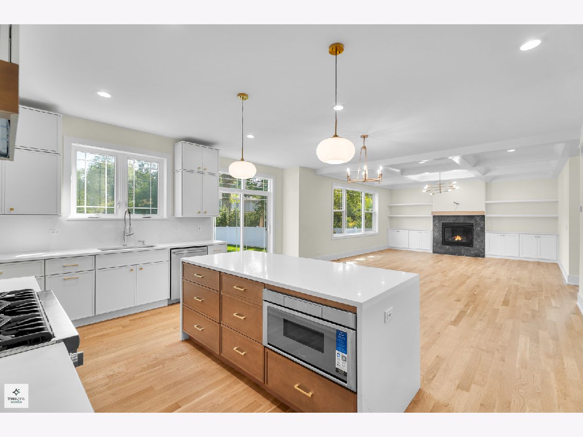 Welcome home! Step into sophistication with this stunning 5-bedroom, 4.5-bath residence, thoughtfully designed to combine modern elegance with everyday comfort. From the moment you enter, you'll be impressed by the open, airy layout enhanced by white oak hardwood flooring throughout the main level. To your left, a formal dining area with an eye-catching chandelier connects seamlessly to the gourmet kitchen through a stylish butler's pantry, complete with a wine refrigerator. The chef's kitchen is outfitted with custom cabinetry, quartz waterfall island, and top-of-the-line Thermador appliances, including a range-top, double ovens, and more. A large walk-in pantry sits just behind the kitchen. The kitchen flows effortlessly into a bright family room centered around a sleek gas fireplace. Sliding glass doors extend the living space outdoors to a beautifully landscaped and fenced backyard, perfect for relaxing or entertaining. An office is conveniently located near the front entrance. The second floor offers four bedrooms, including a luxurious primary suite with vaulted ceilings, spa-like bath with dual vanities, freestanding tub, and a nice size shower. A huge walk-in closet is conveniently accessible from the bathroom. The second bedroom includes a private bath, while bedrooms three and four are joined by a Jack-and-Jill bathroom. A laundry room is also located on the second floor for added convenience. The fully finished basement expands the living space with a stylish wet bar, an additional bedroom, a full bathroom, and a flexible bonus room ideal for a gym or office. This home combines thoughtful design, high-end finishes, and exceptional craftsmanship, offering the perfect blend of comfort and elegance. Situated only minutes from highly regarded Glenview schools, neighborhood parks such as Crowley and Flick, several golf courses, shopping, dining, and convenient expressway access, this home offers the perfect balance of style, practicality, and location. Discover the finest of Glenview living!
