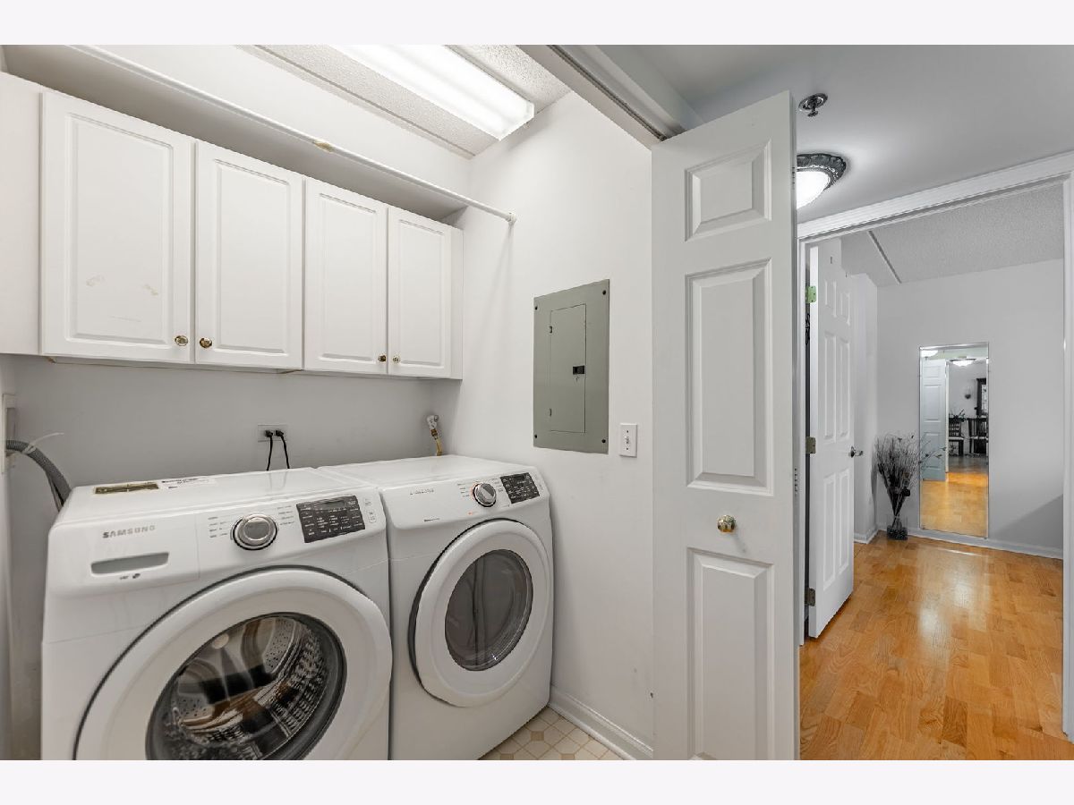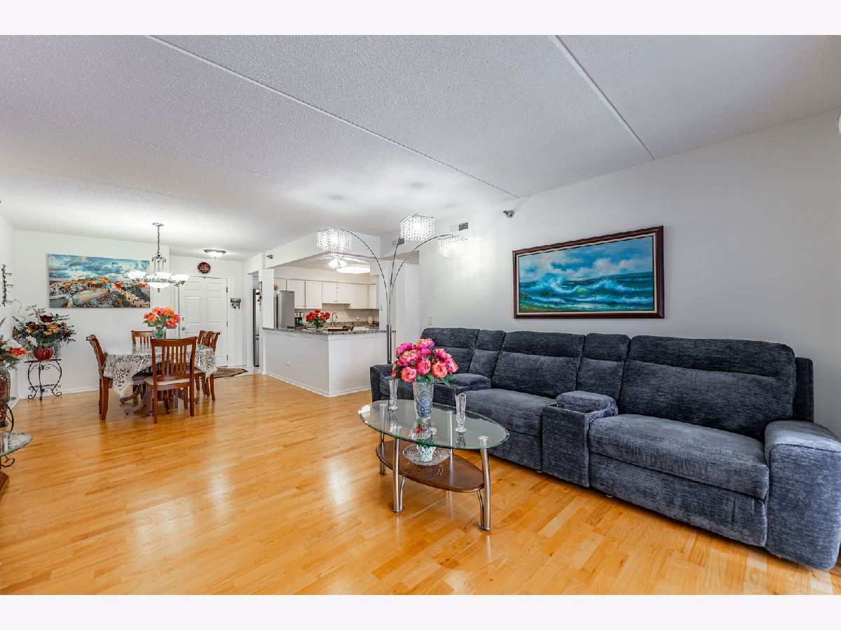 Welcome to Renaissance living at its finest! This stunning 2-bedroom, 2-bathroom condo offers the perfect blend of modern updates and thoughtful design in one of the area's most sought-after communities. Step inside to discover beautiful wood laminate flooring throughout, leading you into a bright and open floor plan where the full-size dining room seamlessly flows into the spacious living room. The fully updated eat-in kitchen is a chef's dream, featuring newer stainless steel appliances, elegant granite countertops, freshly painted cabinets, and abundant storage including a full walk-in pantry. Your private retreat awaits on the large balcony, recently refinished and perfect for morning coffee, grilling your favorite meals, or entertaining friends and family while overlooking professionally landscaped grounds and picturesque views. The generous primary suite offers a private oasis complete with two large closets and ensuite bath, while the second bedroom provides versatility as a guest room, home office, or whatever suits your lifestyle. In-unit laundry adds everyday convenience, while heated 1-car garage parking with storage ensures year-round comfort and plenty of space for your belongings. Ideally located near public transportation, expressways, shopping, fitness centers, and schools, this an owner-occupied building (no rentals allowed) provides both lifestyle convenience and exceptional long-term investment value. Don't miss this opportunity to call Renaissance home-schedule your showing today!