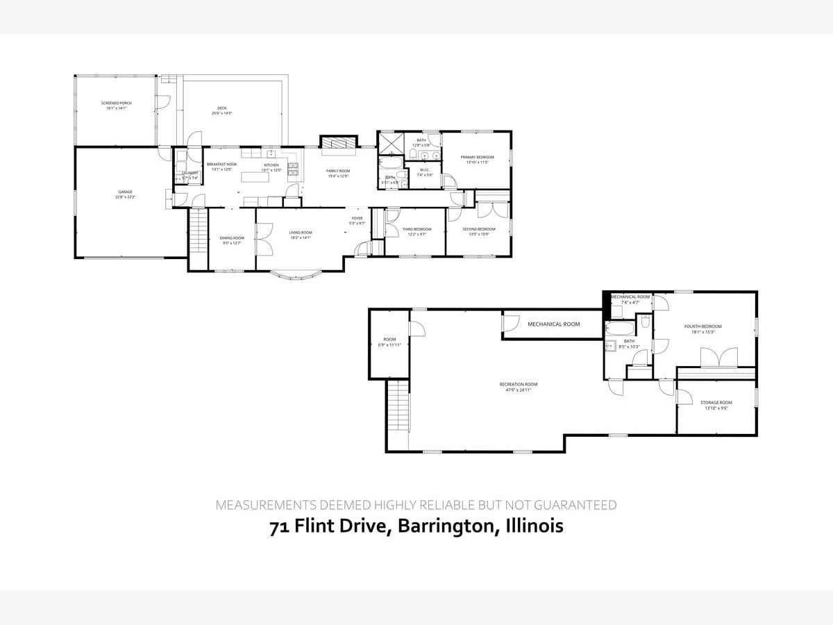 Welcome to this beautifully updated all-brick ranch in the highly sought-after Flint Lake Estates community of Lake Barrington. Completely reimagined down to the studs in 2015, this turn-key 4-bedroom, 3-bath home combines timeless design with modern comfort. Step inside and discover an inviting layout featuring a bright living room flooded with natural light opening to a quaint dining room, making it the perfect setting for entertaining. The stunning kitchen shows off white 42" shaker cabinets, granite countertops, SS appliances and a peaceful view from the kitchen sink. The cozy fireplace just off the kitchen creates the ideal gathering spot for family and friends or relaxing after a long day. The primary suite offers a full ensuite with a generous walk-in closet while two additional bedrooms and a second full bath complete the main level. The finished lower level boasts brand-new carpeting in a spacious recreation area perfect for another family room, generous storage closet plus a fourth bedroom with full a ensuite. Enjoy the outdoors and retreat to the screened-in porch or the large deck overlooking a serene backyard filled with majestic mature trees. Situated at the end of a quiet cul-de-sac, this home offers added privacy and a tranquil setting. Additional features include a 2.5-car garage and meticulous updates throughout. The combination of being perfectly located near award-winning schools, great restaurants, shopping and minutes from the Village of Barrington make this a wonderful opportunity to move right in and start enjoying everything this desirable community has to offer.