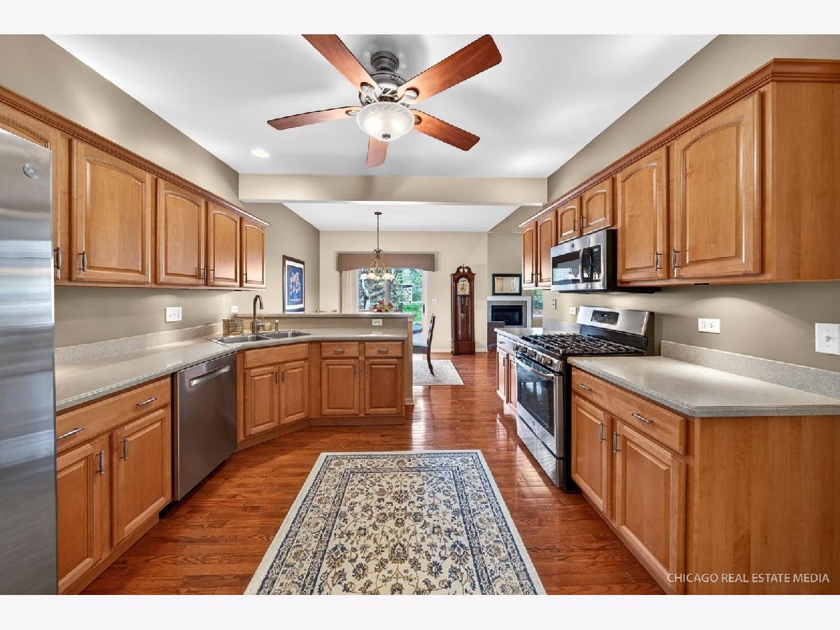 Sophisticated, low-maintenance living meets meticulous care at this beautifully maintained luxury townhome in the coveted Villas of Boulder Ridge. This beautifully cared-for one-owner home offers the perfect blend of refined style, low-maintenance living, and everyday comfort in a premier location near Boulder Ridge Country Club. The main level features hardwood floors completed in 2022, soaring ceilings, abundant natural light, and an inviting living and dining area anchored by a fireplace. The kitchen offers timeless maple cabinetry, solid surface countertops, a breakfast bar, newer appliances, a new faucet and garbage disposal, and a functional layout ideal for both everyday living and easy entertaining. Upstairs, the spacious primary suite provides a peaceful retreat with vaulted ceilings, generous closet space, and a private bath. A second bedroom and versatile loft offer excellent flexibility for guests, a home office, reading space, or additional lounge area. The finished basement expands the home beautifully with a third bedroom and additional living space, creating room for guests, recreation, fitness, media, or work-from-home needs. Outdoor living is just as easy with a private deck overlooking the well-kept surroundings. The most recent updates include NEW carpet in 2023, two loft windows and two living room windows in 2025, A/C in 2021, Furnace in 2018, Dishwasher in 2021, refrigerator and microwave in 2019, Washer and Dryer in 2018, plus a new kitchen faucet and garbage disposal in 2025. Clean, meticulous, and truly move-in ready, this home offers an elevated lifestyle with optional Boulder Ridge Country Club membership nearby, including golf, dining, pool, fitness, pickleball, and social amenities. Ideally located near Randall Road shopping, dining, everyday conveniences, I-90, Metra access, and within highly regarded Crystal Lake school boundaries.
