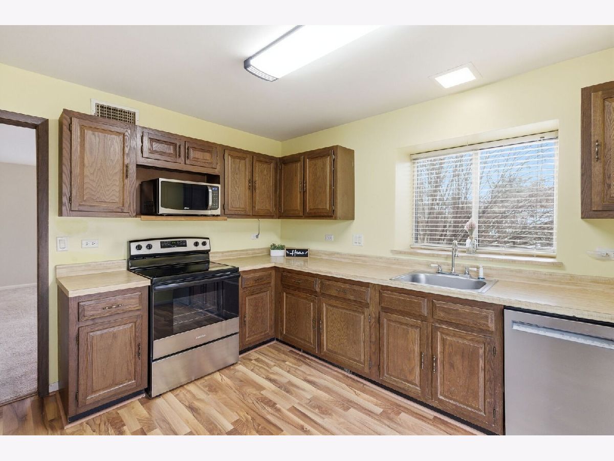 This desirable end-unit offers comfortable single-level living space with 2 bedrooms, a spacious kitchen, and a bright living room highlighted by a charming bay window. Numerous updates provide peace of mind, including newer kitchen windows, newer patio doors, newer laminate flooring in the kitchen, a newer washing machine, and updated kitchen appliances (refrigerator, stove, and dishwasher). Enjoy the convenience of an attached one-car garage and a private back patio - perfect for morning coffee or evening relaxation. The heat and A/C have been recently serviced, and the home also features a newer garage door and opener. Leisure Village is a beautiful gated 55+ active adult community designed for easy living and connection. Here, every day offers something to enjoy - tee off on the golf course, relax by the heated outdoor pool, or stay active with tennis, pickleball, shuffleboard, bocce ball, and a fully equipped fitness center. The vibrant clubhouse is the heart of the community, featuring planned social events, a game room with pool and ping pong, a library, lounge (card games anyone?), meeting room, billiard room, sewing, art, woodworking rooms, and even garden plots & a greenhouse for starting those seedlings! All of this in a prime location just minutes from shopping, dining, and the scenic Chain O' Lakes. Well-maintained, thoughtfully updated, and attractively priced, this is an opportunity you won't want to miss.