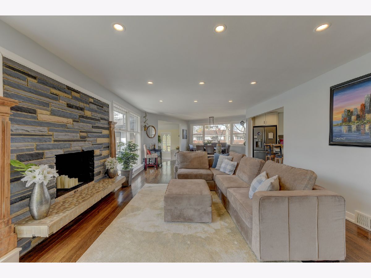 Live in PRESTIGIOUS FLOSSMOOR PARK! This 5 Bdr. 3.5 Bath Brick/frame TWO STORY HOME features an AMAZING BRIGHT & AIRY MAIN LEVEL with GLEAMING HARDWOOD FLOORS through-out. The MASSIVE LIVING ROOM w/LED can lighting and BRICK FIREPLACE is surrounded by a WALL of WINDOWS which extends to the DINING ROOM. Two steps down is an adjacent FORMAL MUD ROOM w/STAINED GLASS WINDOWS on one side and LARGE PICTURE WINDOW on the other with a PATIO VIEW. The TRAVERTINE COUNTER Kitchen has a BREAKFAST BAR w/PENDANT LIGHTS, WHITE CABINETS & ALL STAINLESS APPLIANCES including a RANGE HOOD. Front Foyer 1/2 Bath. Upstairs you'll find a 2ND LEVEL MASTER SUITE W/MASTER BATH, Two Big Closets and SLIDERS to a BALCONY ROOF DECK. The PARTIALLY FINISHED WALKOUT BASEMENT has a FAMILY ROOM with 2nd FPL, 5th BEDROOM & FULL BATH. It sits on a LARGE .42 Acre Corner Lot w/PRIVATE REAR YARD perfect for entertaining. Just blocks for commuter train station.