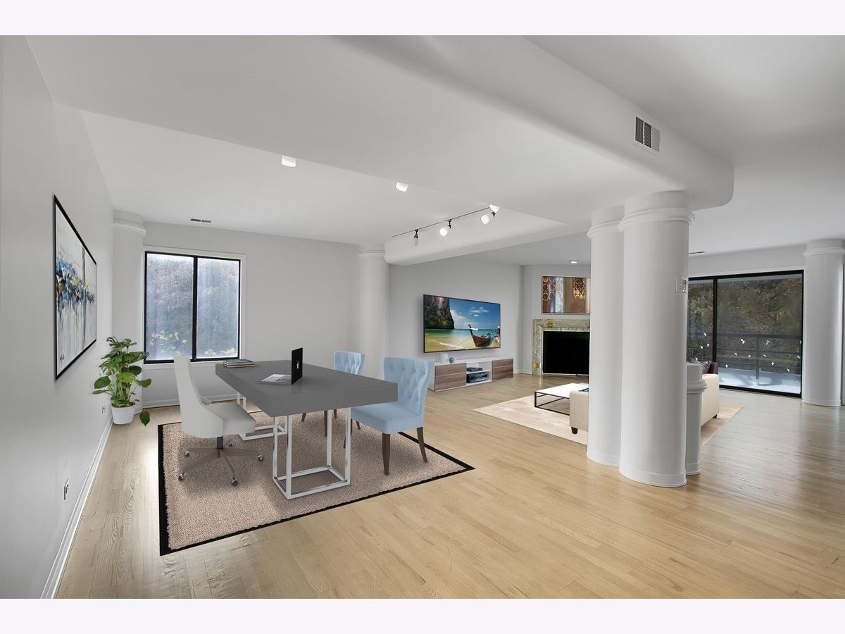 Welcome to luxury living in one of Chicago's most desirable boutique buildings! This spacious 4th-floor residence offers nearly 1,900 sq ft of open-concept living space, designed for both comfort and sophistication. Originally a 3-bedroom layout, the third bedroom was opened up to create a bright, expansive living area -perfect for entertaining or relaxing in style. The large eat-in kitchen is a showstopper, featuring tons of cabinet and counter space, a generous center island with JennAir cooktop, and a high-end Sub-Zero refrigerator/freezer -the ideal setup for anyone who loves hosting friends and family. The kitchen opens seamlessly to the sun-filled living room, showcasing hardwood floors, a cozy wood-burning fireplace, and sliding doors leading to a huge private balcony overlooking a forest of nature's beauty -perfect for morning coffee or evening sunsets. The former third bedroom now offers a versatile flex living space, ideal for an open office plan, expanded entertaining area, or a dedicated game/billiards room -imagine the possibilities! The expansive primary suite is your personal retreat, offering plush carpeted comfort, a massive walk-in closet with custom organizers, and a spa-inspired bath with granite countertops, a walk-in shower, and a vanity with a built-in makeup station. The second bedroom, also carpeted, provides flexibility for guests, a home office, or creative space, with a huge closet, and an additional full bath and second walk-in closet in the hall. Additional highlights include an in-unit full-size washer & dryer, extra storage locker, heated indoor garage parking, and abundant guest parking. The entire home has been freshly painted and meticulously maintained. This building is special and unique, with only two units per floor, so you'll enjoy exceptional privacy and an exclusive lifestyle. A suburb in the city, the Wildwood neighborhood is located close to shopping, dining, forest preserve parks, and public transportation. This home offers the perfect balance of space, style, and convenience. If you've been searching for a truly special condo on Chicago's North Side -this one is a must-see!