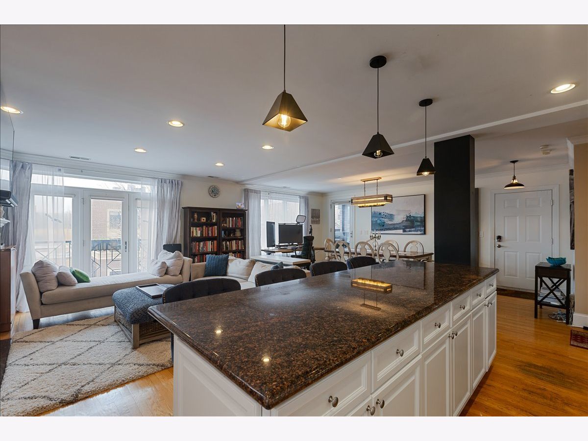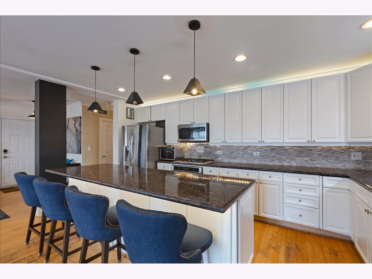 Experience elevated living at 714 W Melrose #4E, an extra-wide penthouse residence in East Lakeview offering an exceptional blend of scale, light, and refined design. Boasting an impressive 28-foot-wide floor plan, this 3-bedroom, 2-bathroom home is flooded with natural light and thoughtfully designed for both everyday living and sophisticated entertaining. The expansive kitchen is a true focal point, featuring 42-inch cabinetry, granite countertops, stainless steel appliances, and a striking 9-foot island with breakfast bar seating-perfect for gathering and hosting. A separate dining area flows seamlessly into the oversized living room, where a fireplace anchors the space and adds warmth and character. The primary suite offers a serene retreat, complete with a spacious walk-in closet and a spa-inspired ensuite bath featuring a Jacuzzi soaking tub, separate glass-enclosed shower, dual vanity, and linen storage. Two additional bedrooms provide flexibility for guests, a home office, or personalized use. Outdoor living is unmatched, with a large private rear terrace, an additional front-facing deck, and access to a shared rooftop deck showcasing sweeping city views. Additional highlights include hardwood flooring throughout, updated appliances, a beautifully appointed second bathroom with slate and marble finishes, and garage parking included for ultimate convenience. A rare opportunity to own a truly expansive penthouse with multiple outdoor spaces in one of Chicago's most vibrant neighborhoods.