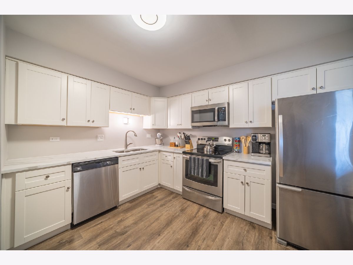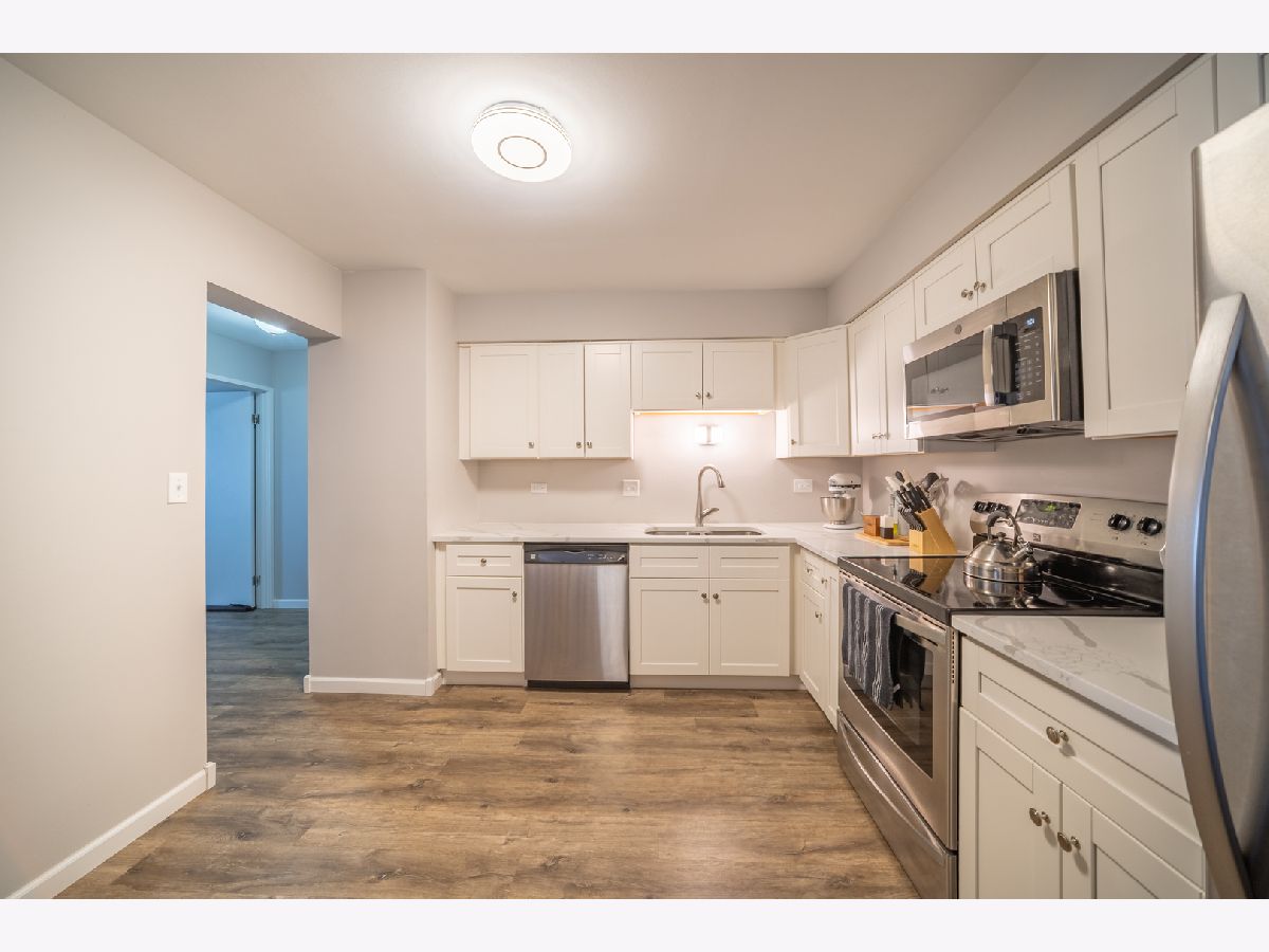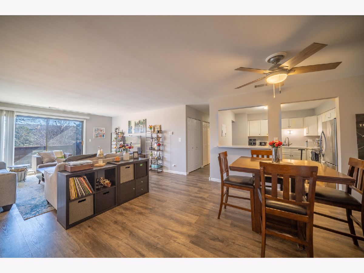 Rarely available second-floor condo in popular Farmingdale Terrace featuring 2 bedrooms and 2 full baths. Beautifully updated with all-new flooring, new windows, and an HVAC system that is a little over one year old. Updated eat-in kitchen offers new countertops, new cabinetry, and stainless steel appliances, opening to the dining and living area with access to a private balcony. Spacious primary bedroom includes a full ensuite bath and walk-in closet, plus a second generously sized bedroom and full hall bath. Brand-new in-unit washer and dryer combo. Secure entry to the building with heated underground garage parking. Additionally, there is a storage, bike room, extra laundry facilities, and outdoor pool. Convenient location near schools, parks, shopping, dining, and expressways. Truly move-in ready.
