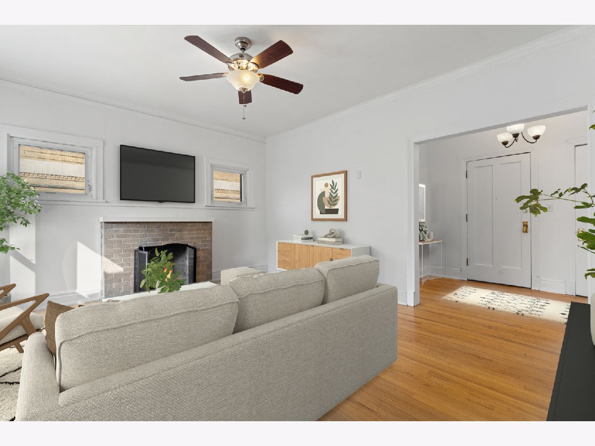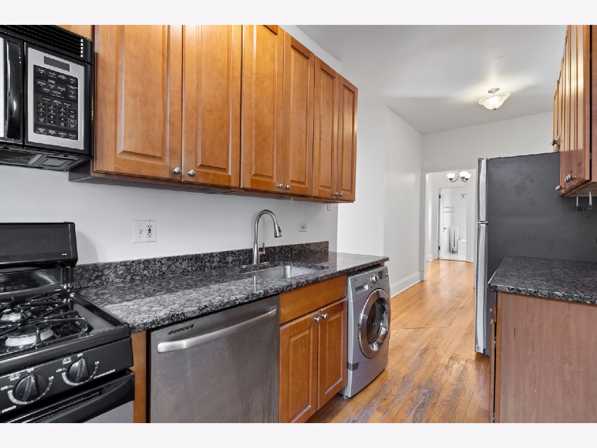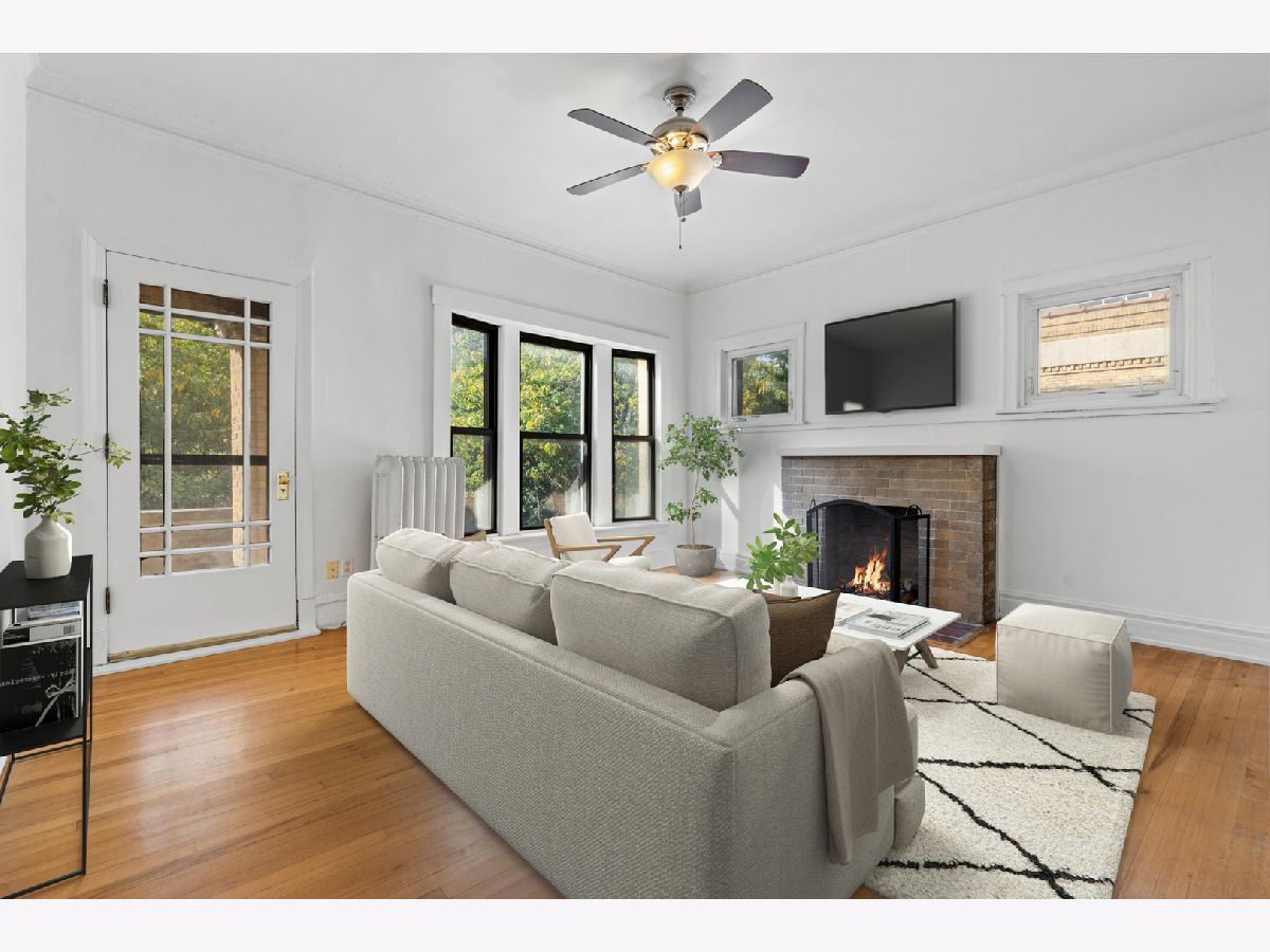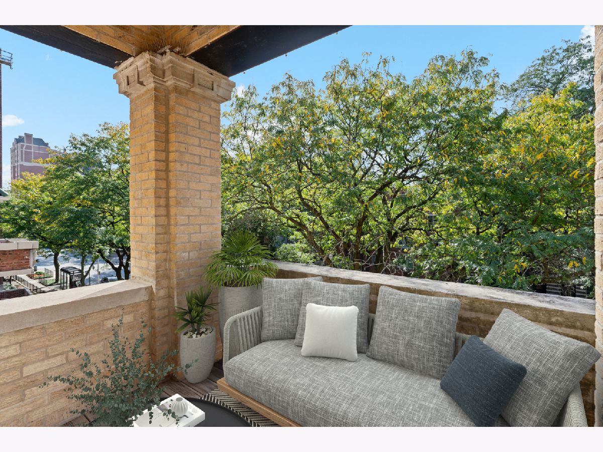 Located on the top floor of a classic 1920s courtyard building in Lakeview, this sun-soaked and inviting 2-bedroom, 1-bathroom corner home offers timeless charm. As you step into the welcoming foyer, you will begin to notice the myriad of delightful vintage details: gleaming hardwood floors, tall ceilings, and elegant millwork. The foyer opens to a spacious living room. In here, sunlight pours in through corner windows. A cozy fireplace anchors the room. Don't miss the door to the covered private terrace - this is an ideal space for a dining set, sofa, and lots of plants. Next, explore the kitchen. Take note of the stainless steel appliances (including an in-unit washer/dryer combo) granite countertops, and abundant cabinetry. There is also a convenient dining nook that comfortably fits a table and chairs. Another outdoor space is right outside the kitchen - this one is perfect for grilling. Both bedrooms are generously sized and filled with natural light. Each offers excellent closet space. The bathroom feels crisp and fresh, thanks to neutral white tile, modern lighting, and a large window. 718 West Sheridan is a beautifully maintained vintage building in a sought-after pocket of Lakeview. It is a short walk away from the lake, transportation, bars and restaurants, and Wrigley Field. Welcome home!