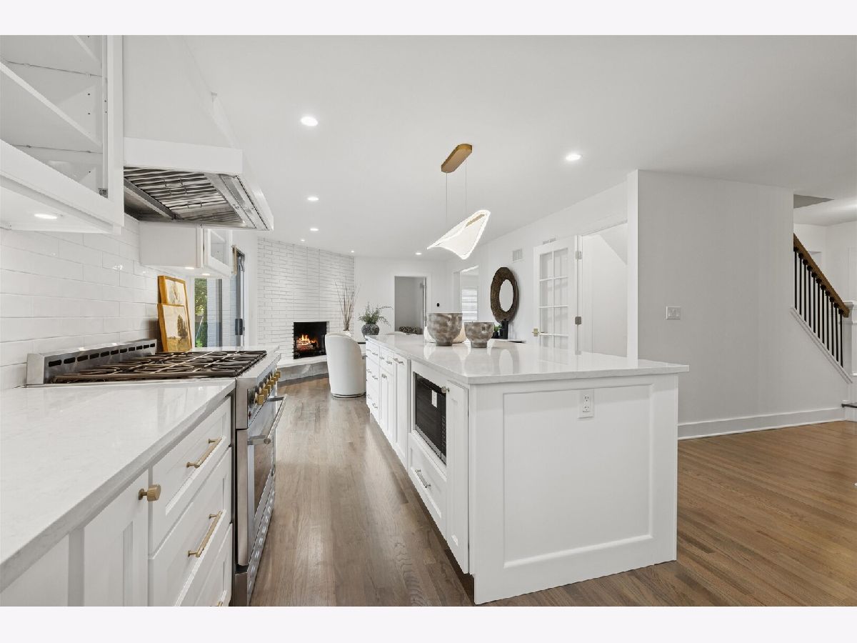 Every detail has been reimagined in this 4 bedroom + bonus room, 4 bath Hinsdale masterpiece, set on an extra wide 66' lot just steps from The Lane elementary. A full 2025 renovation includes a brand new floor plan, elevated design and modern finishes throughout. Step inside to discover a reimagined interior, with new hardwood floors sweeping across the first and second levels, complimented by fresh paint, flawless new drywall and insulation, and sophisticated modern lighting that illuminates every space with warmth. The heart of the home is the new chef's kitchen, anchored by a striking 10' quartz island with seating for five, custom cabinetry and open shelving, tile backsplash, sculptural chandelier and all new appliances. A hidden walk-in coffee station/pantry adds everyday convenience, opening seamlessly to the sunlit breakfast area, complete with a brick wood burning fireplace. Designed for modern living, the first floor features a private office with custom built in shelves and desk, which can optionally be converted to an additional first floor bedroom. The first floor showcases a dining room adorned with elegant picture frame molding and a statement chandelier, a light filled family room designed for gathering, a thoughtfully crafted oversized mudroom with custom built in bench, and a sleek new contemporary bathroom with shower. Upstairs, the primary suite is a true retreat, offering a walk out balcony, custom walk-in closet with new front loading smart washer and dryer, hardwood floors and a completely renovated spa inspired bathroom with a soaking tub, double vanity, Carrara marble tile, contemporary lighting and a shower featuring 6 body sprayers. Three additional oversized bedrooms are located on the second level with hardwood floors and a new updated shared bath with double vanity and modern lighting. The lower level features a spacious recreation room with wine storage area, an additional bonus room that can be used as a bedroom with an en suite renovated full bath, abundant storage and durable new hard surface flooring. Dual laundry centers on both the second and lower levels - both with brand new washer and dryers - deliver everyday convenience. Outdoors, enjoy a professionally landscaped yard with abundant green space, new paver patio and freshly painted exterior. A 2.5 car detached garage, Google nest thermostat and front door camera complete this turn-key home.