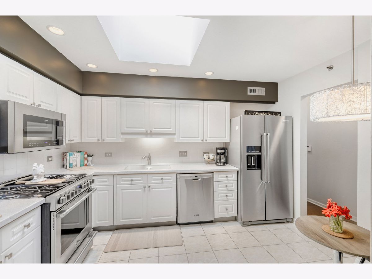 FORE!! Gorgeous top floor unit overlooking the 9th fairway of the Old Orchard Country Golf Course! Meticulously maintained and is waiting your arrival. This two bedroom, two bath unit is quite versatile. Living room and dining room combination is perfect for entertaining or relaxing after a long hard day. A skylight in the kitchen exudes cheerfulness, brightness and warmth. Top of the line appliances, ceramic flooring and gobs of cabinets are ideal for storage. The master suite is quite ample and offers a walk in closet and a separate tub and shower for your convenience. The second bedroom is being used as a den/office area, just right for those who crave quiet reflection. Enjoy the oversized balcony during warm weather months or check out the swings of the golfers below. I don't want to omit the in-unit washer/dryer and many amenities which include a clubhouse and an outdoor pool. Convenient garage parking, number 31, make entering and exiting easy. A storage closet is also located by the parking space. Come over and take a peek, you will love what you see!