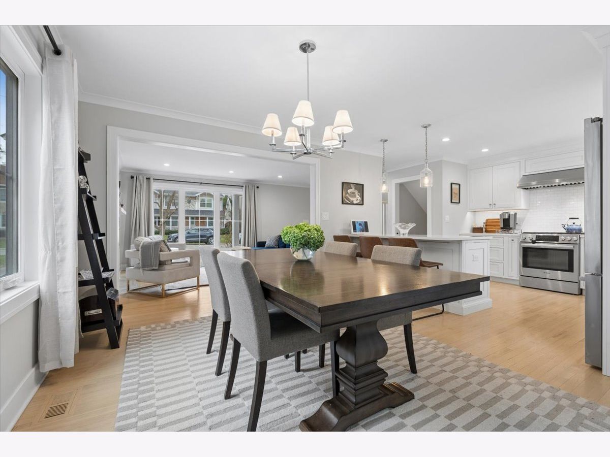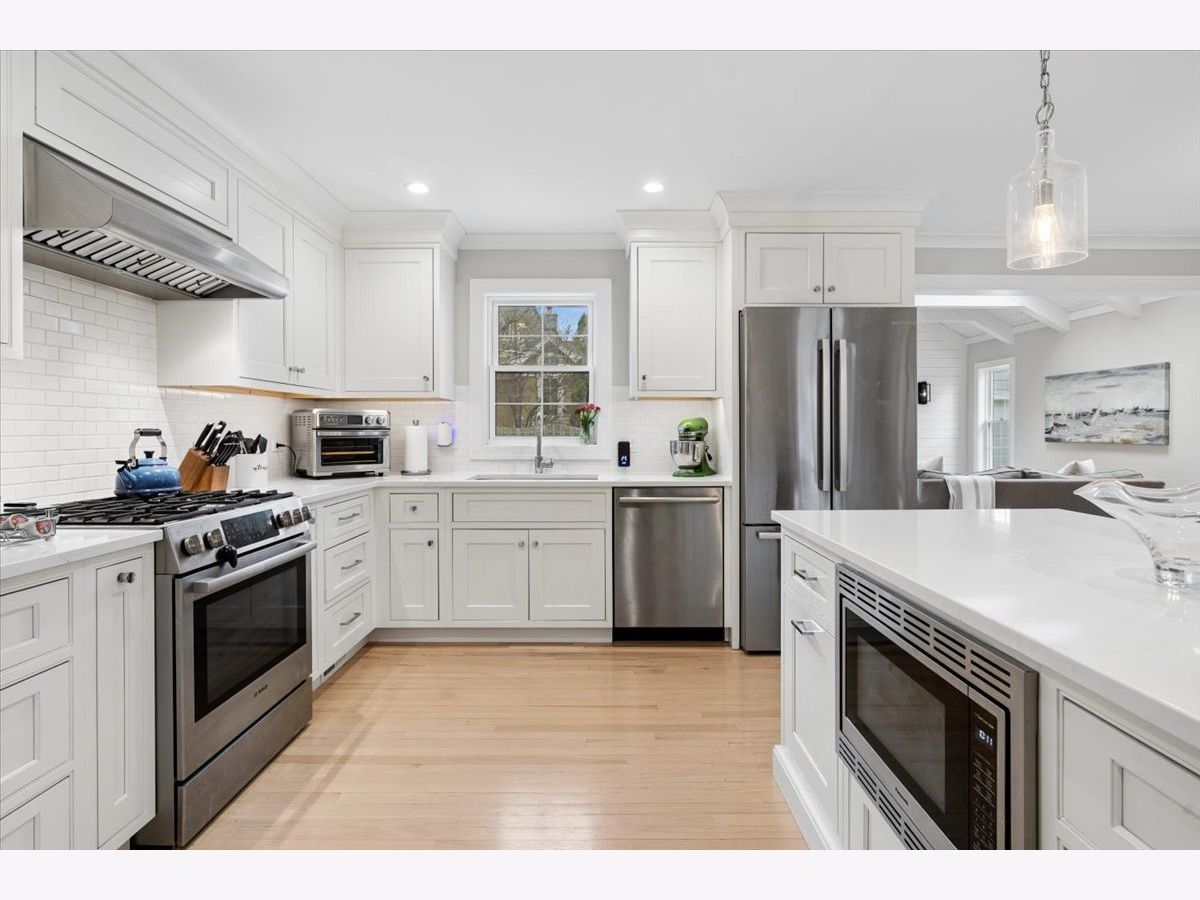Discover impeccable style and high-end design in this expanded home, meticulously renovated down to the studs in 2020. From the light and airy hardwood floors to the designer fixtures, no detail was overlooked. An amazing open-concept layout connects the living room, with its custom built-ins and fireplace, to the elegant dining space. The heart of the home is the chef's kitchen, boasting quartz countertops and premium appliances. It opens to a spectacular family room crowned with a vaulted, shiplap ceiling, skylights and perfectly sized for entertaining. Retreat to the luxurious primary suite, which features a massive walk-in closet and a spa-like marble bathroom with a custom double vanity. Two generously-sized bedrooms share a fresh and stylish second bath. Downstairs, the versatile lower level provides great space for recreation or work, plus a powder room and separate laundry room. There is an extensive crawl space for storage. The exterior is just as impressive, with durable Hardie Board siding, an oversized one-car garage, and a private fenced yard with a paver patio. This is a unique opportunity to own a turnkey home where all the work has been done for you, just steps from the best of Wilmette-Harper, WJHS, Centennial Park, and the train.