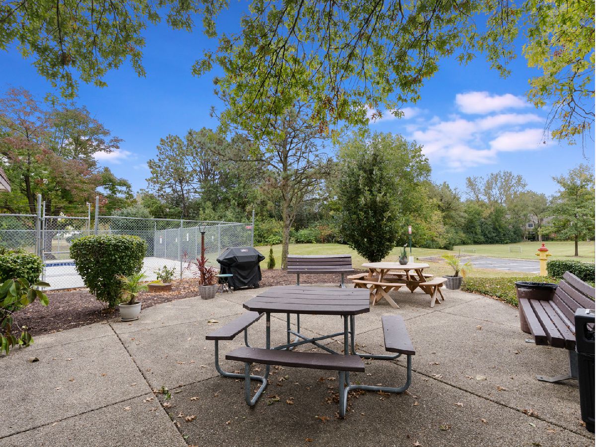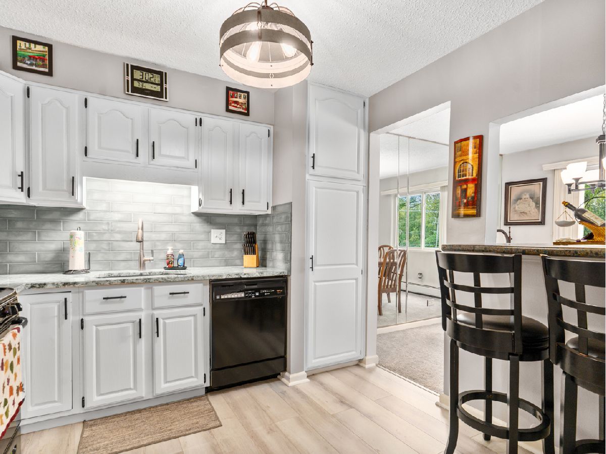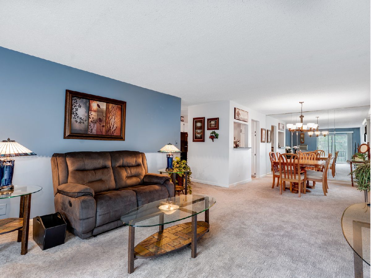 2 bedroom, 2 bathroom 3rd floor condo located in Flagg Creek Condo complex is ready for new owners. Brick exterior, elevator building also comes with 2 parking spaces. Wonderful community includes open fields and clubhouse with community pool. The unit is 1,250sf with a traditional layout. End unit northwest facing offers tons of privacy and offers outdoor space with a concrete balcony. Large 18x12 living room with warm & soothing colors mix well with the natural light that comes thru the sliding glass door. Adjacent is the formal dining room that offers additional added lighting with a window (this is rare as middle units don't have a window in DR) & has a mirrored wall which makes the room larger than it is. Modern, cute kitchen has been refreshed with white cabinetry/granite countertops & fridge (each new in 2024)/new LPV flooring and lighting. Patio door & DR window also replaced recently. Larger primary bedroom has a full wall of closets/wall AC unit/ceiling fan and it's own private bathroom with step-in shower. The hall bathroom has been updated with new faucet & mirror. Laundry room & storage is included with the unit and are each located on the same floor. A rare opportunity for a 2 bedroom, 2 bath condo in Indian Head Park.